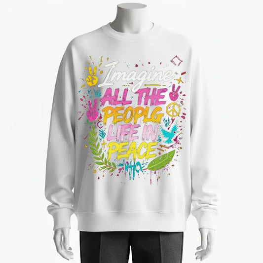 Inspirational Peace Hoodie – 'Imagine' Slogan with Colorful Art for Peace Enthusiasts