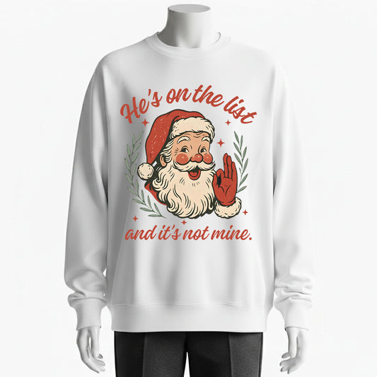 100% Cotton 'He's on the List (Not Mine)' Christmas Santa Graphic Sweatshirt