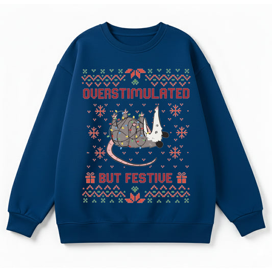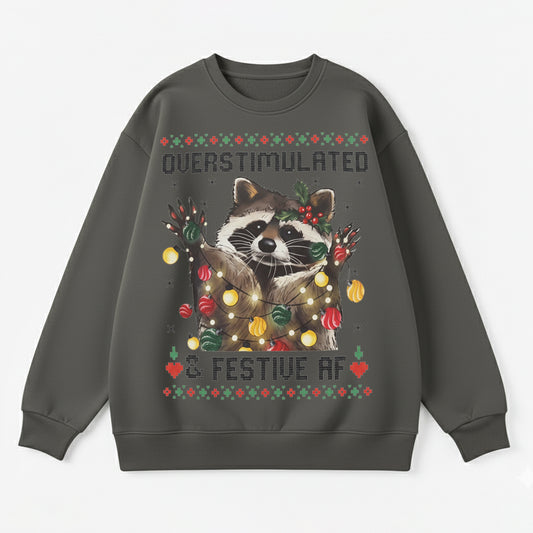 Raccoon Tangled in Christmas Lights Graphic Sweatshirt