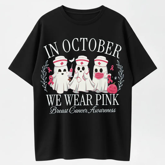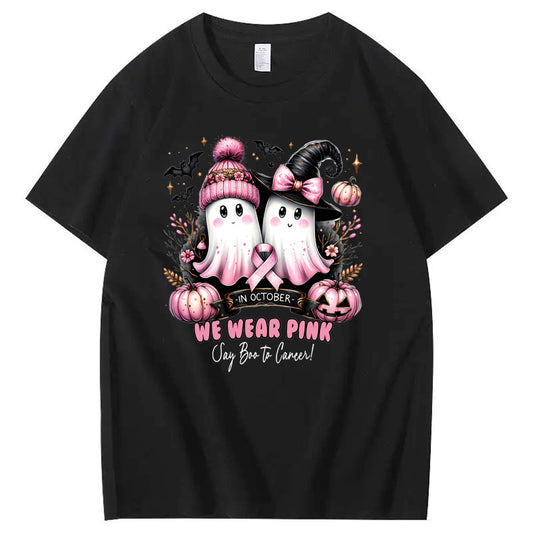 In October We Wear Pink Say Boo To Cancer Pattern100% Cotton T-Shirt
