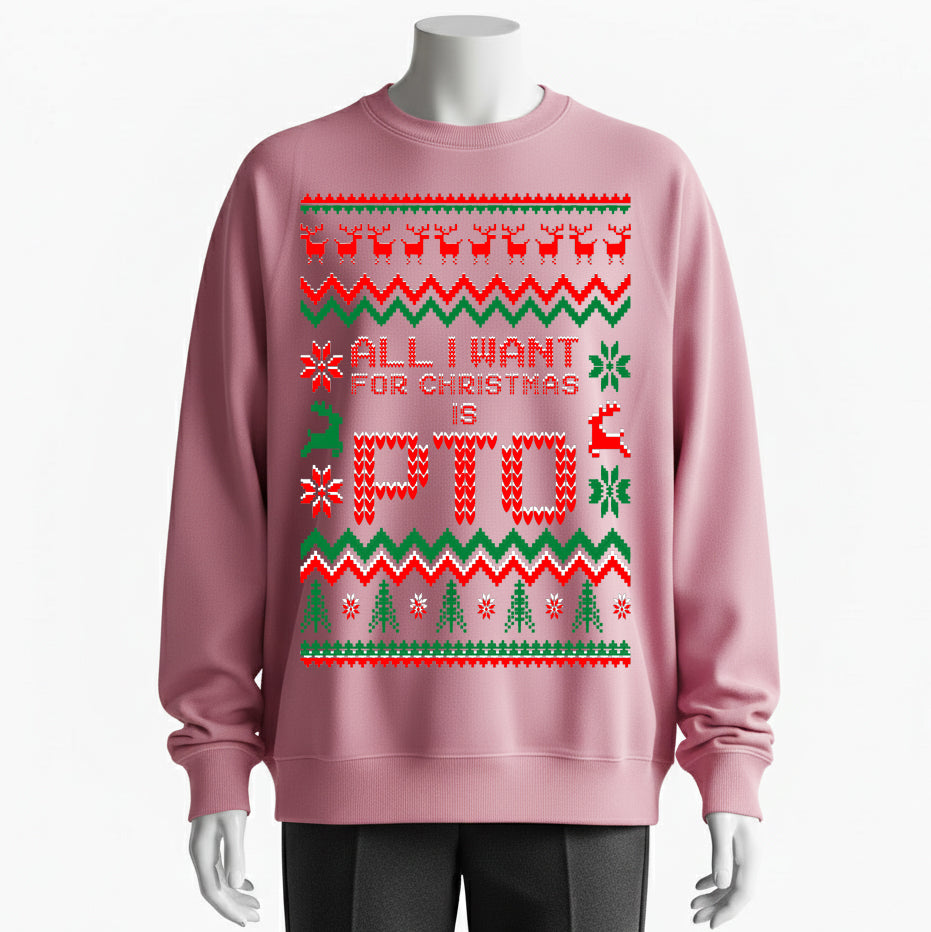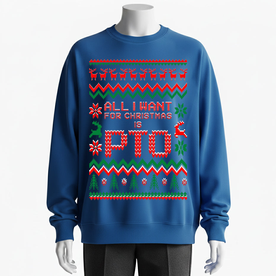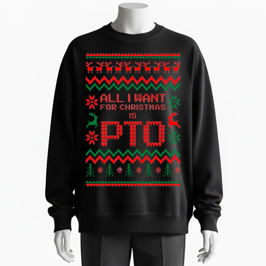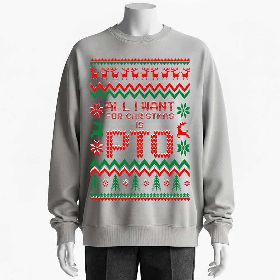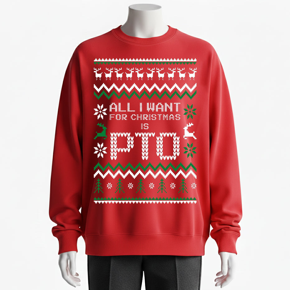 100% Cotton "All I Want for Christmas Is PTO" Holiday Sweater