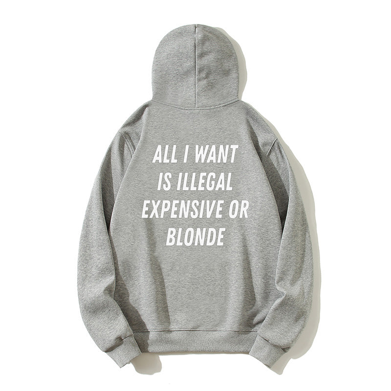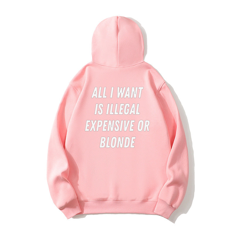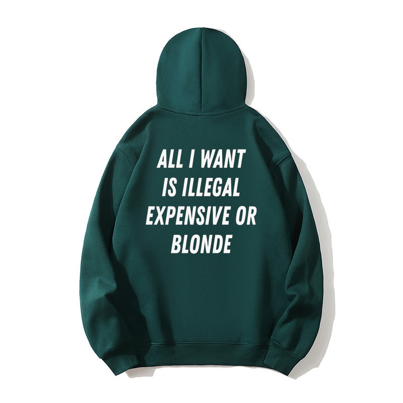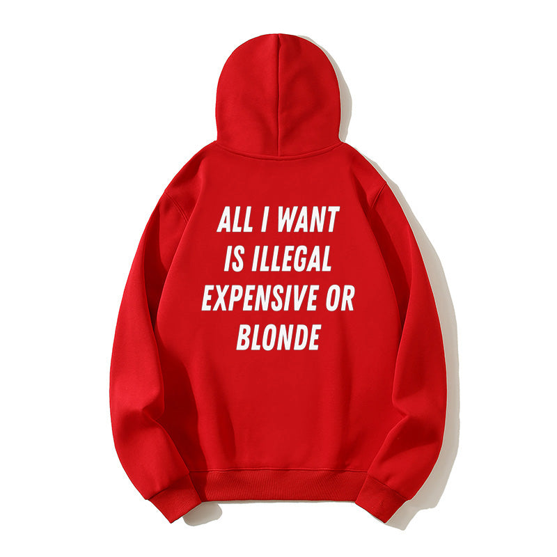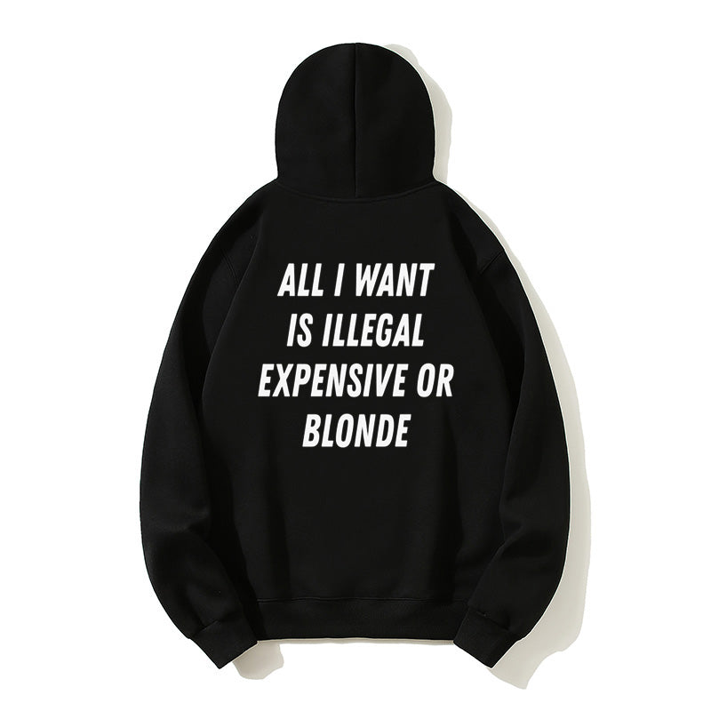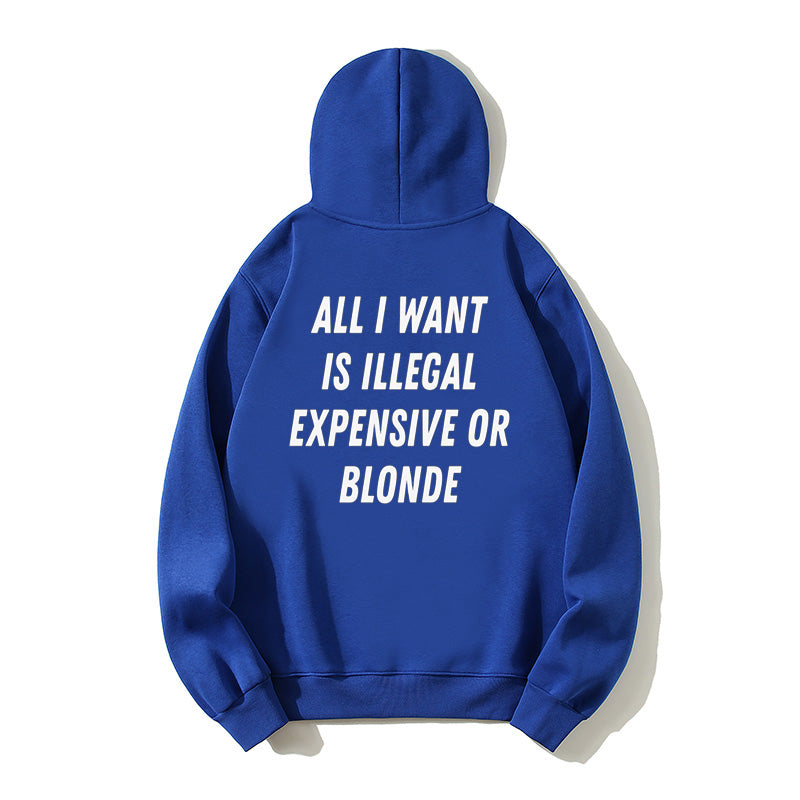 100% Cotton "All I Want Is Illegal, Expensive or Blonde" Funny Hoodie