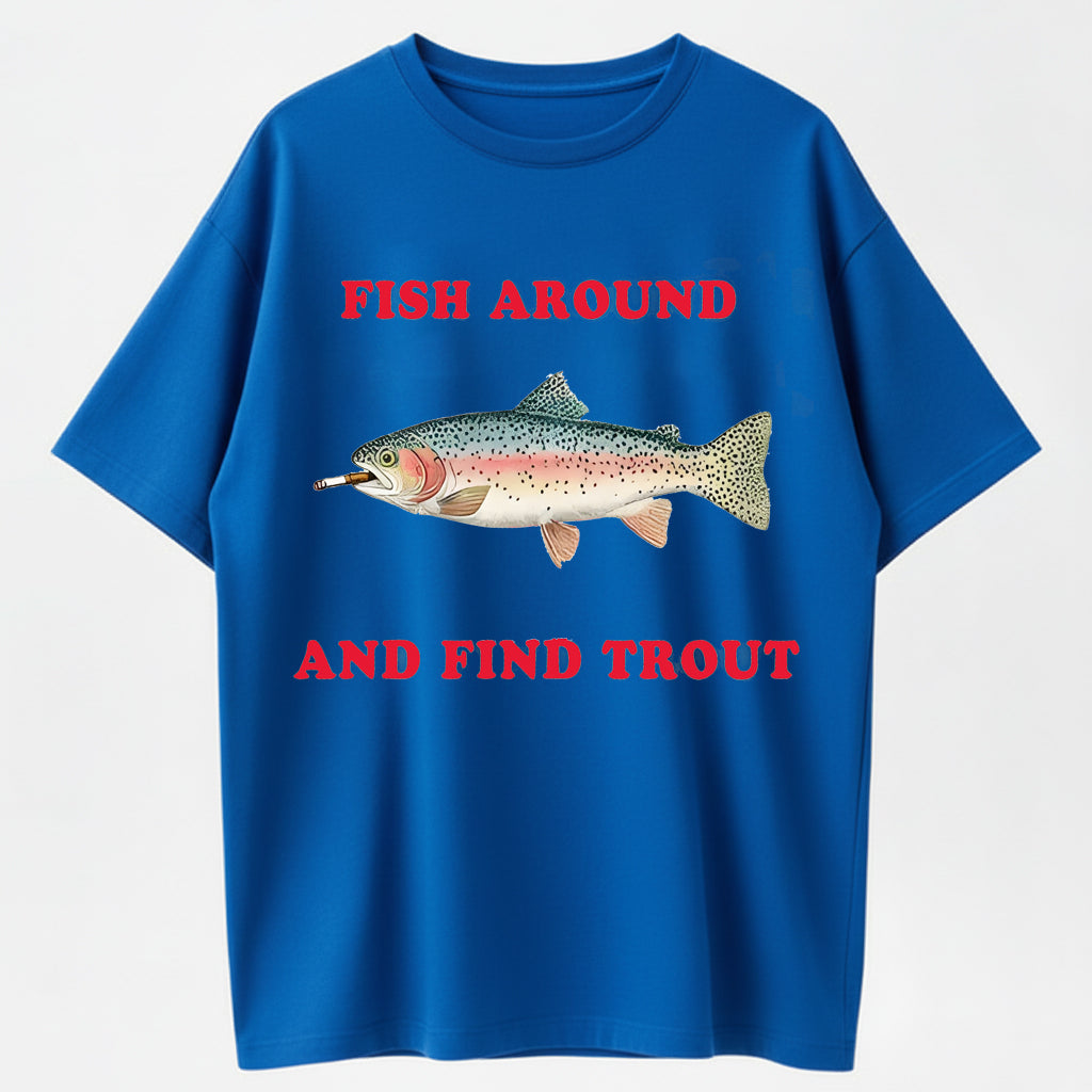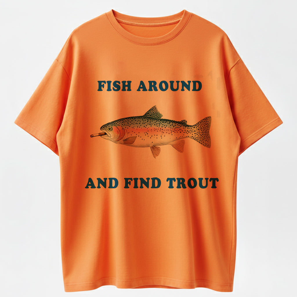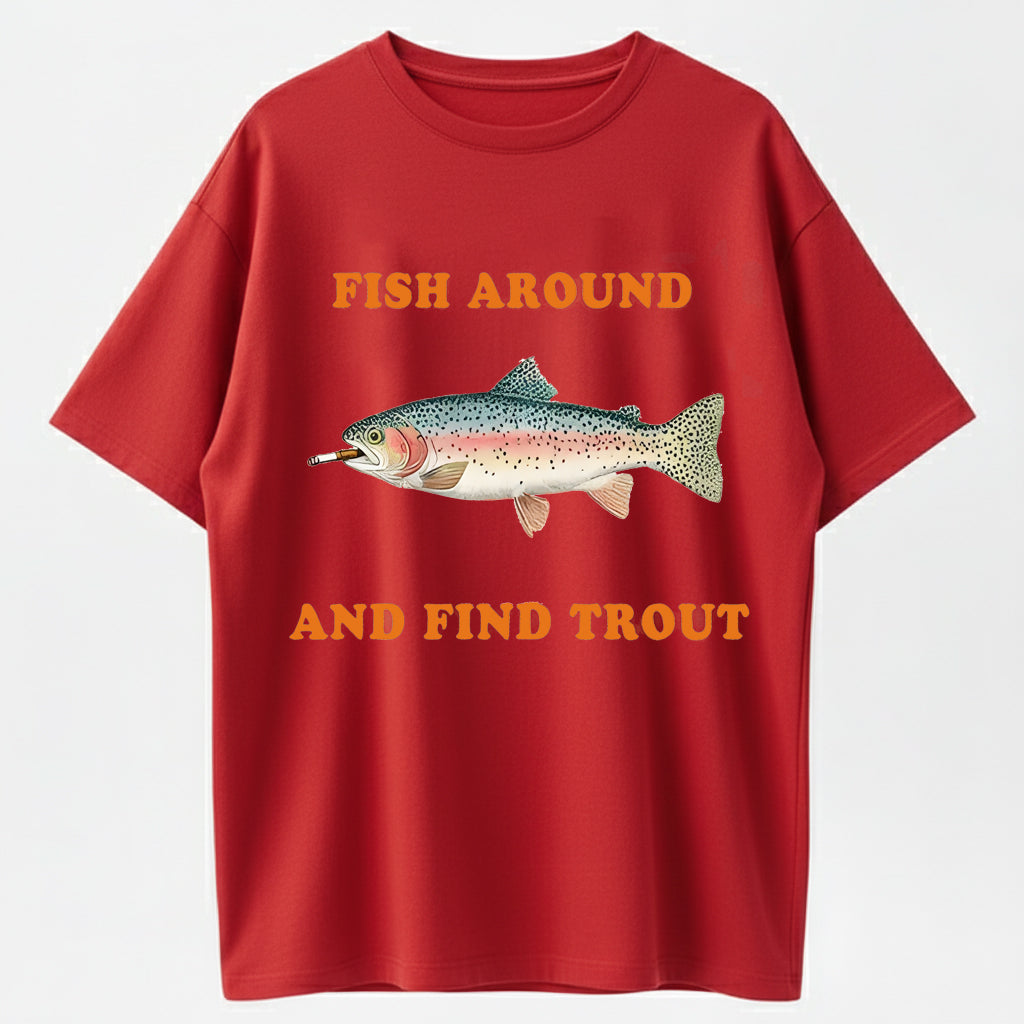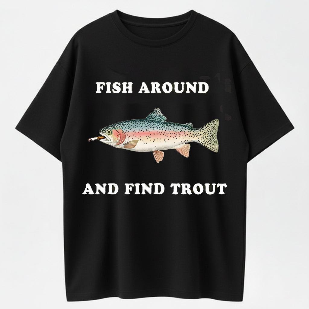 100% Cotton 'Fish Around And Find Trout' Fishing Humor Graphic T-Shirt
