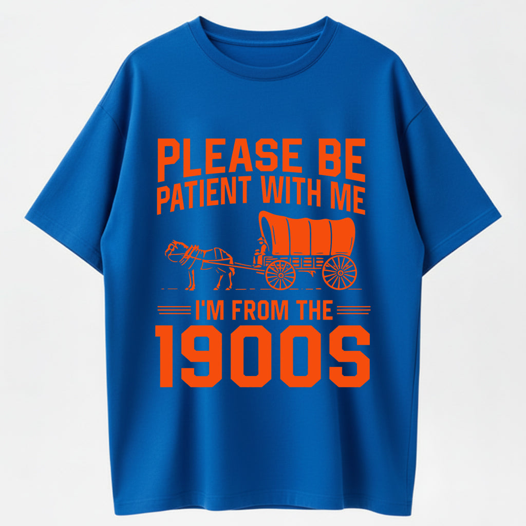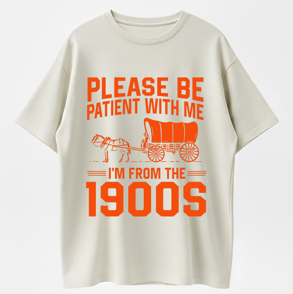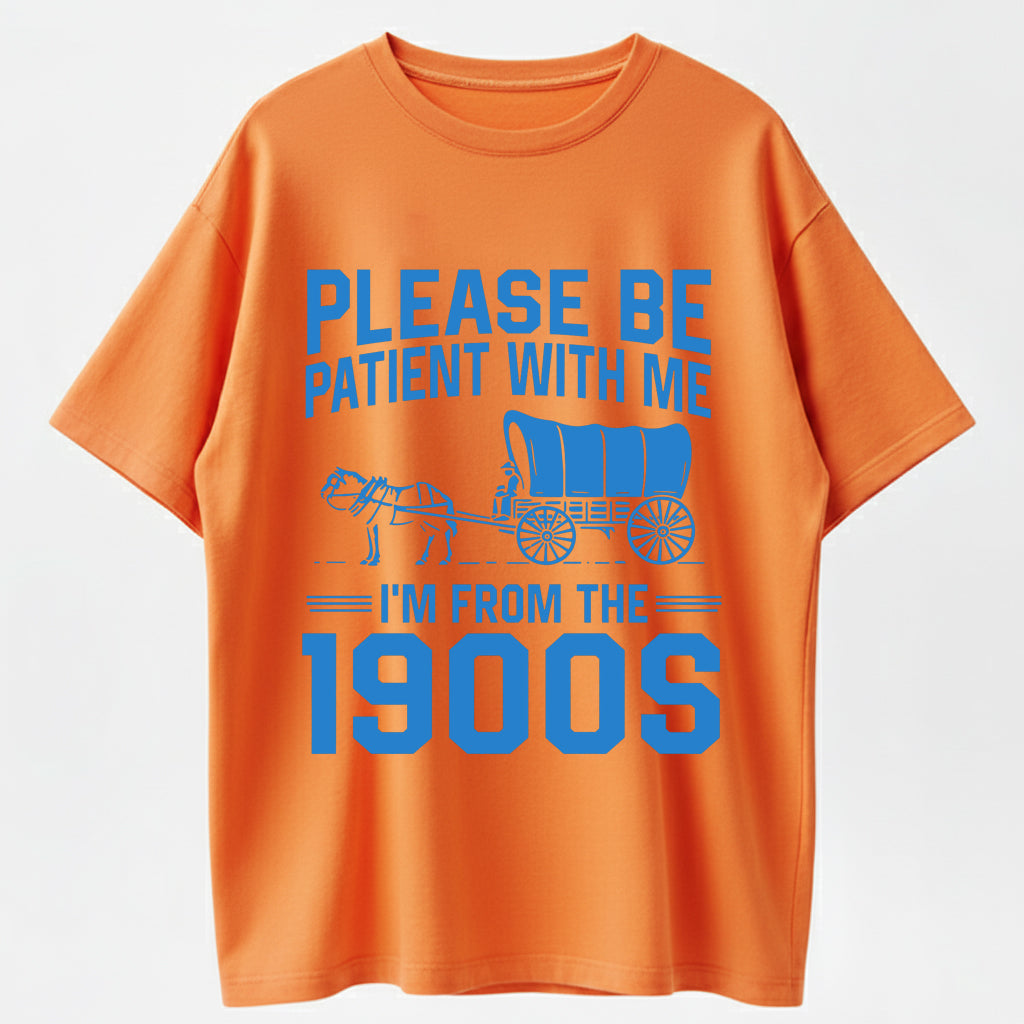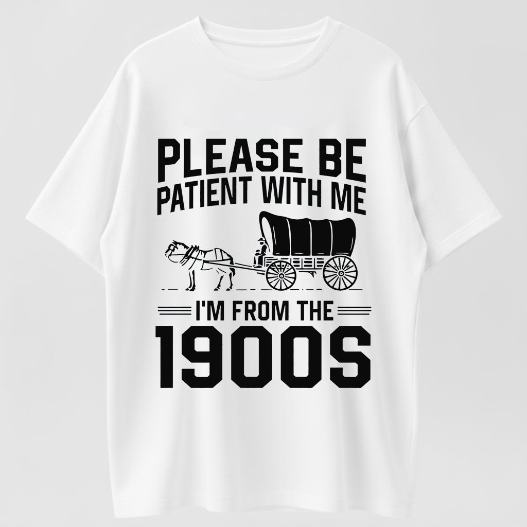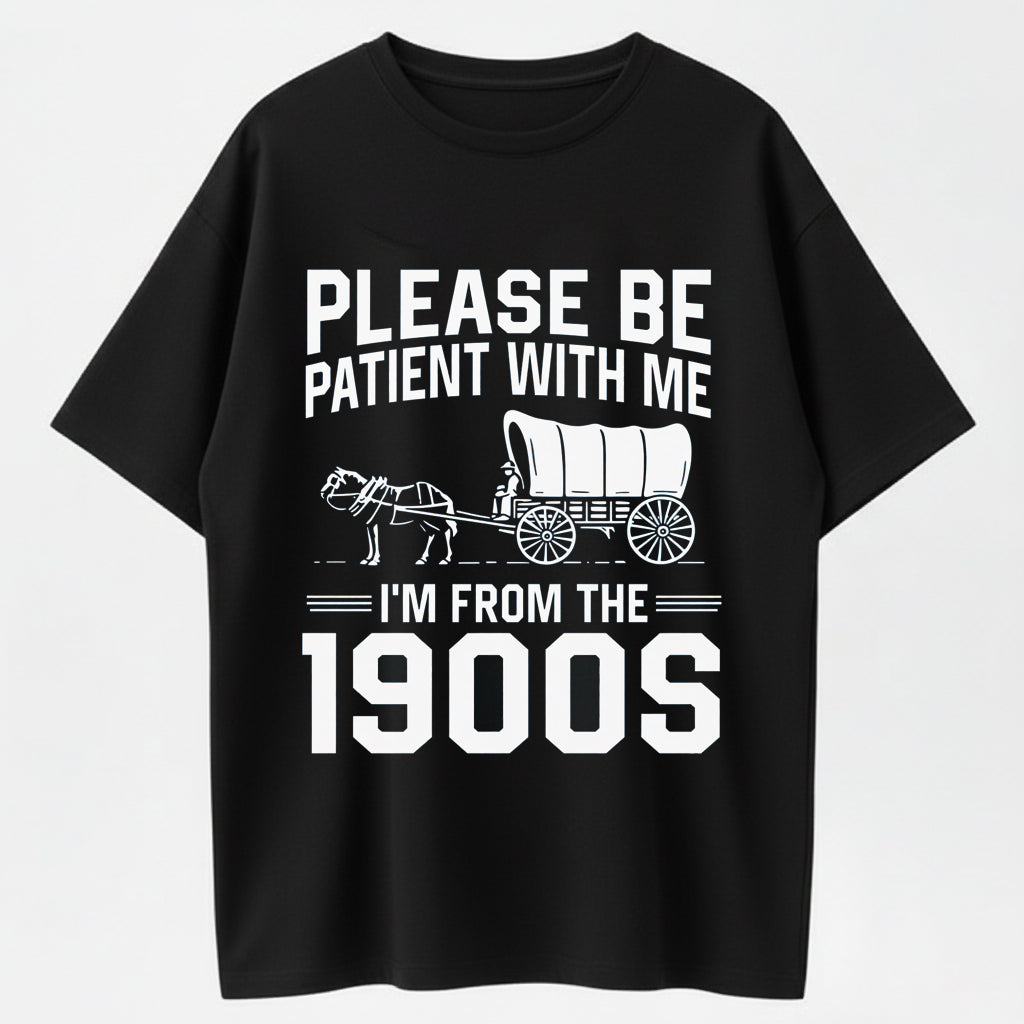 100% Cotton "Please Be Patient With Me, I'm From the 1900s" Vintage Wagon Graphic T-Shirt