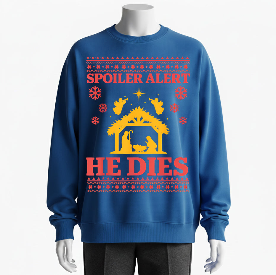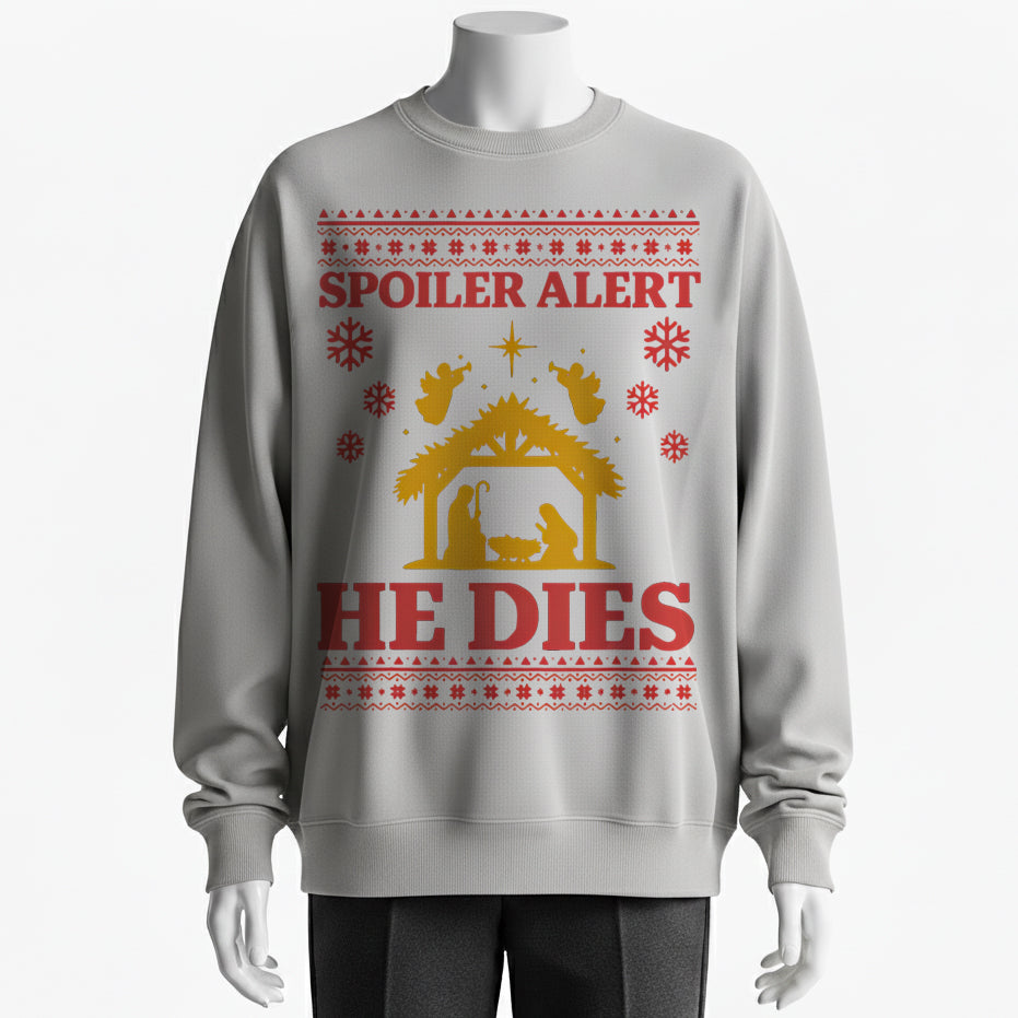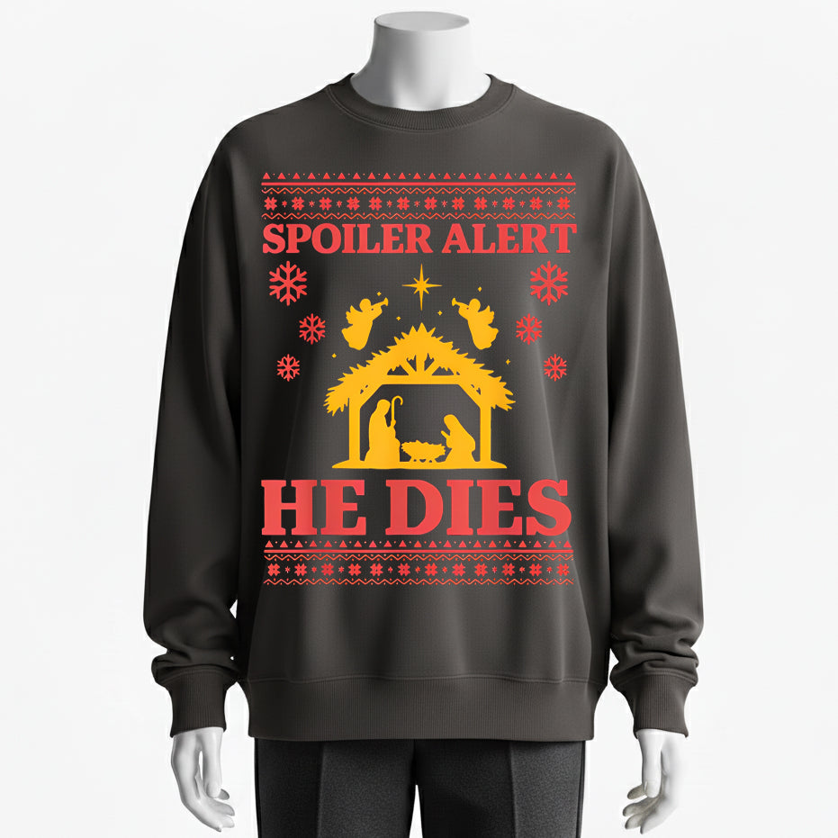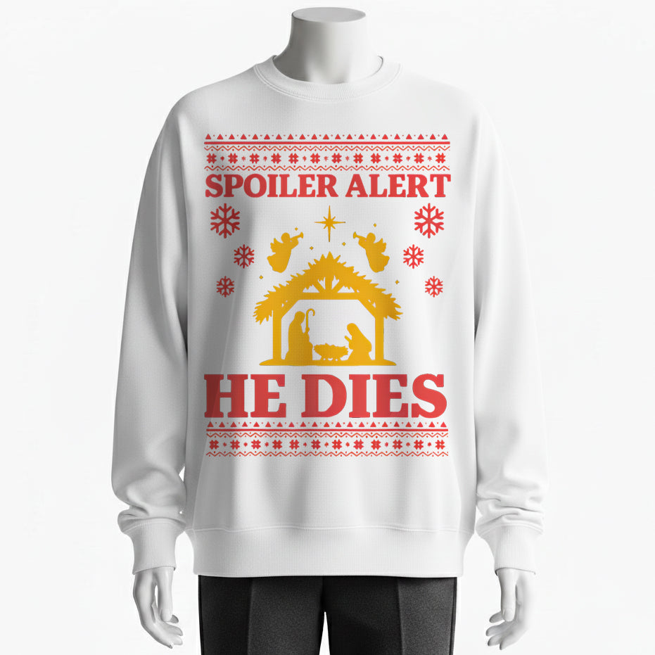 100% Cotton "Spoiler Alert: He Dies" Christmas Sweater