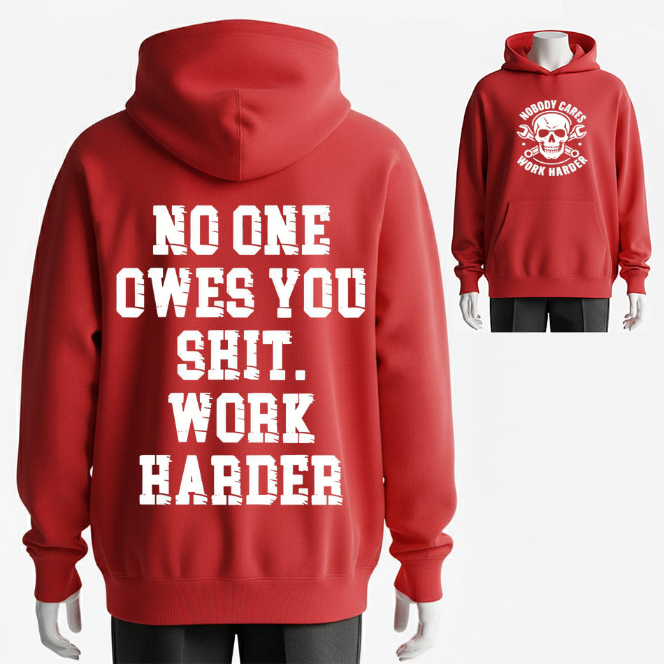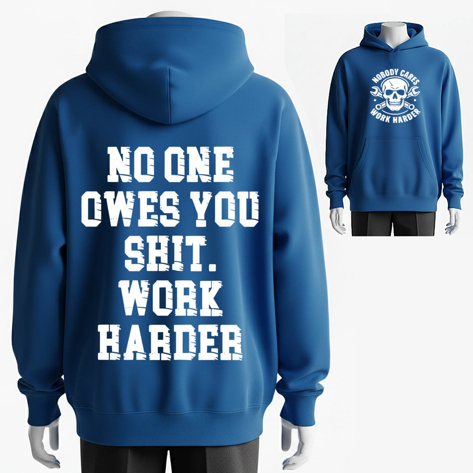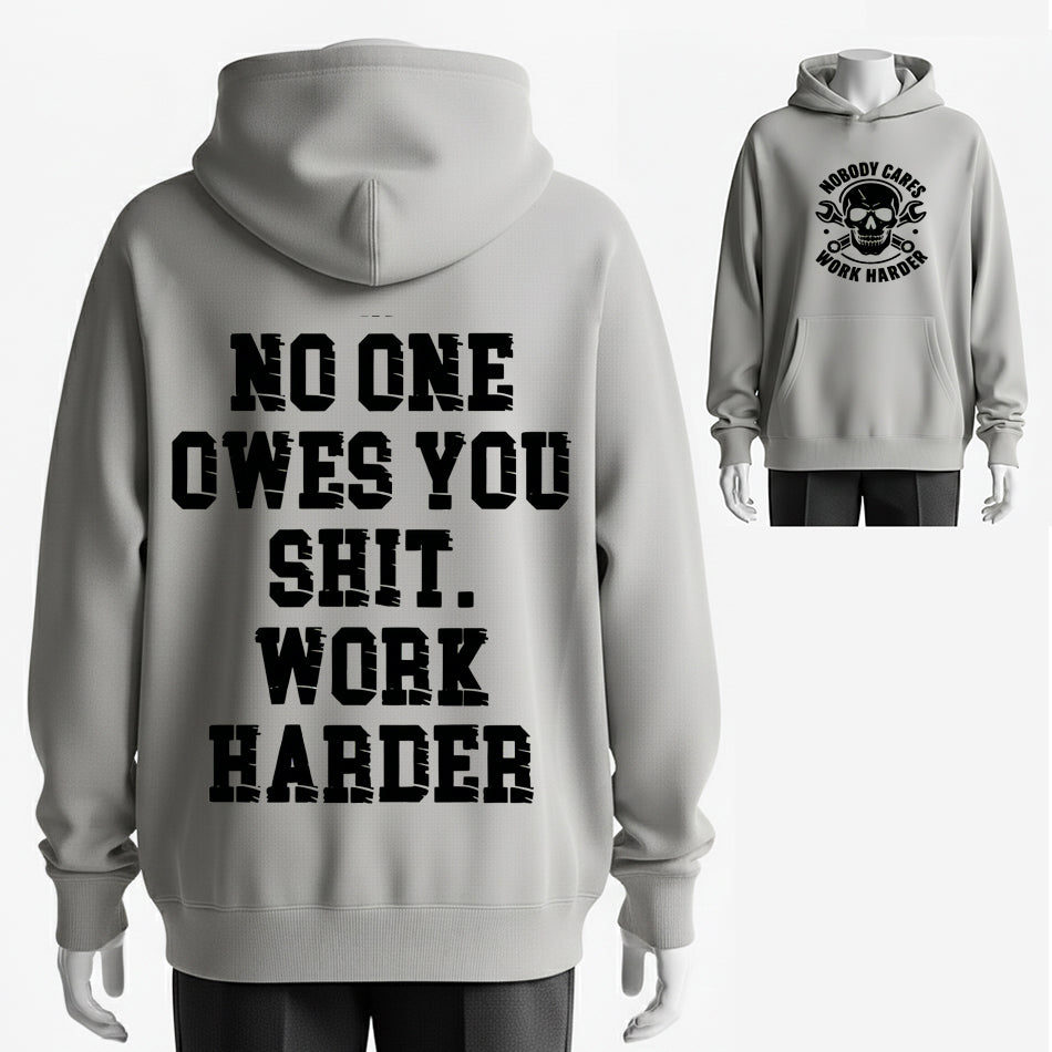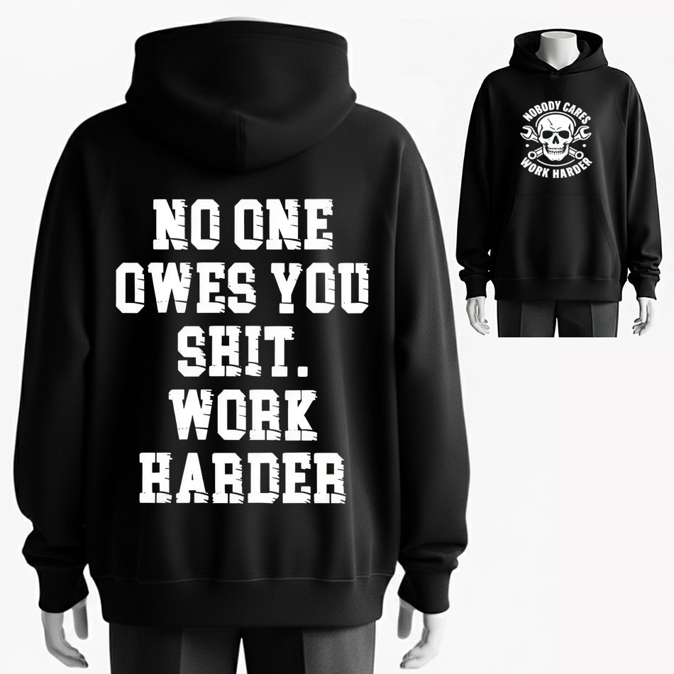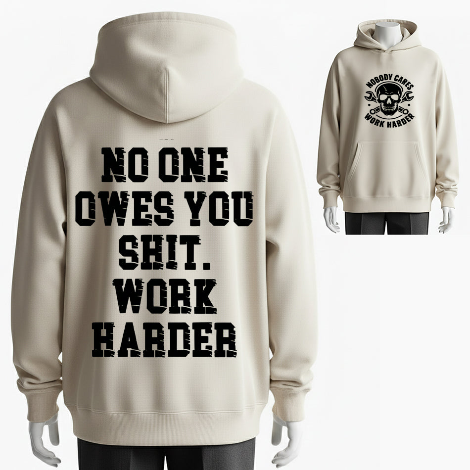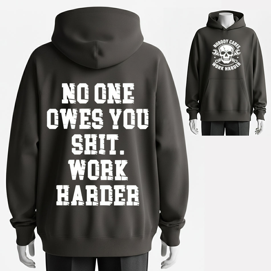 100% Cotton 'Work Harder' Skull & Wrench Graphic Hoodie