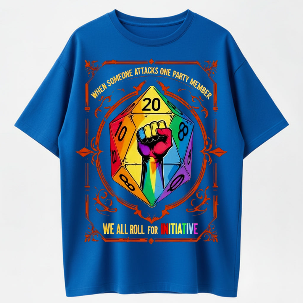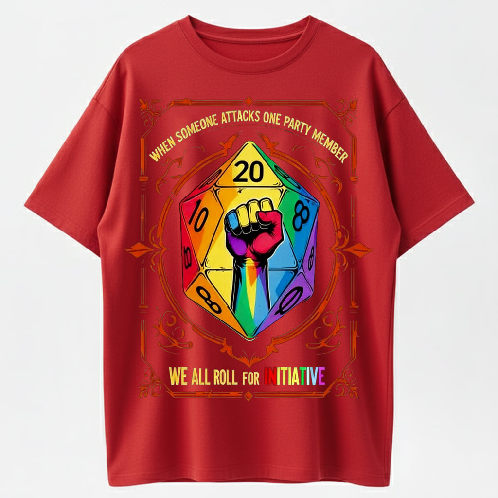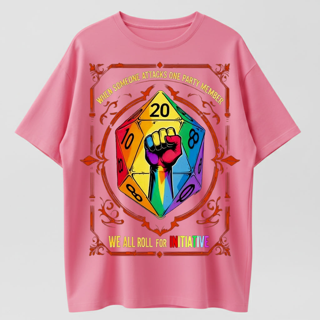 D&D Inspired Rainbow D20 T-Shirt – Unite & Roll for Initiative in Style
