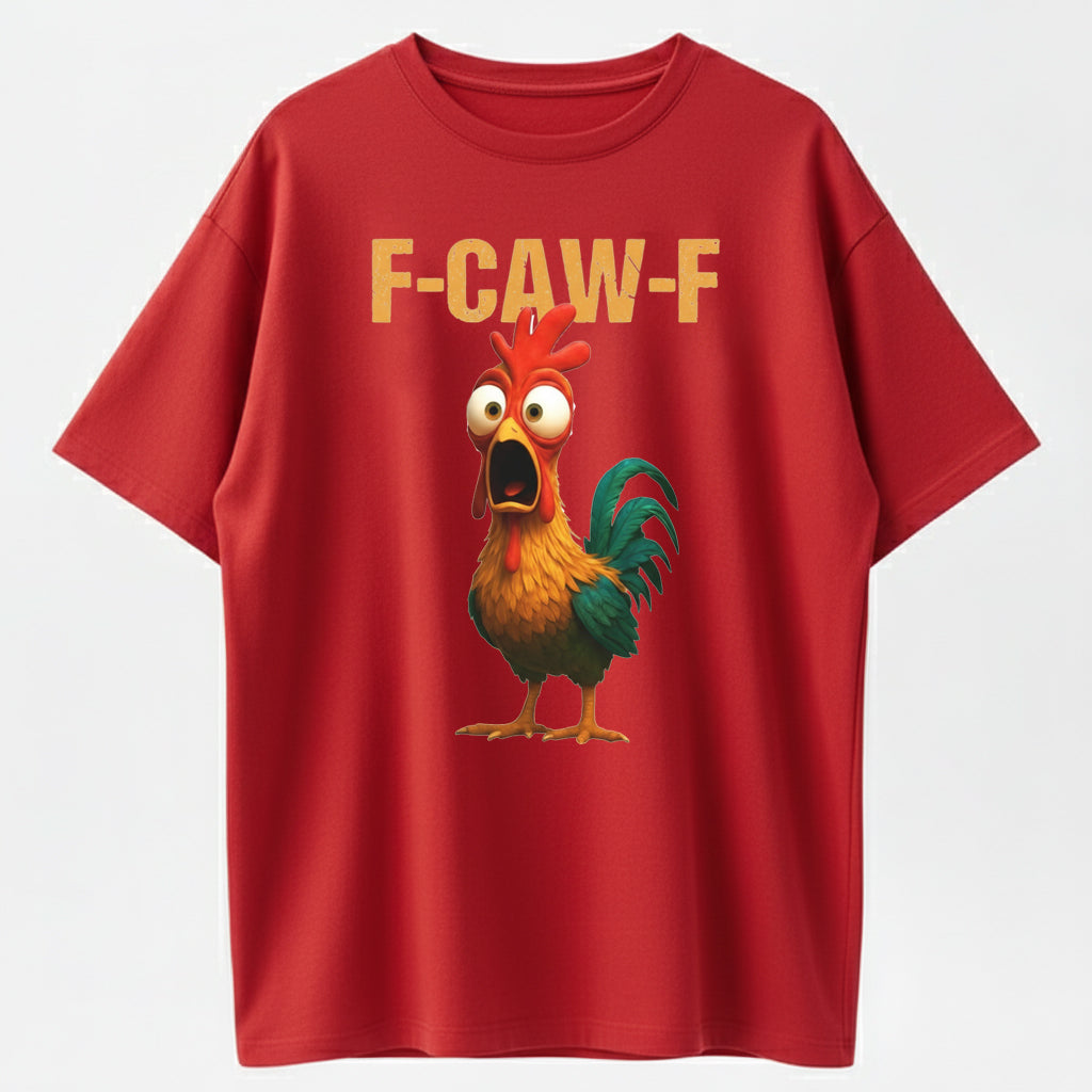 Funny Chicken F Caw F Graphic Tee: Rooster Meme Shirt