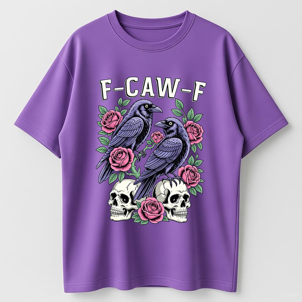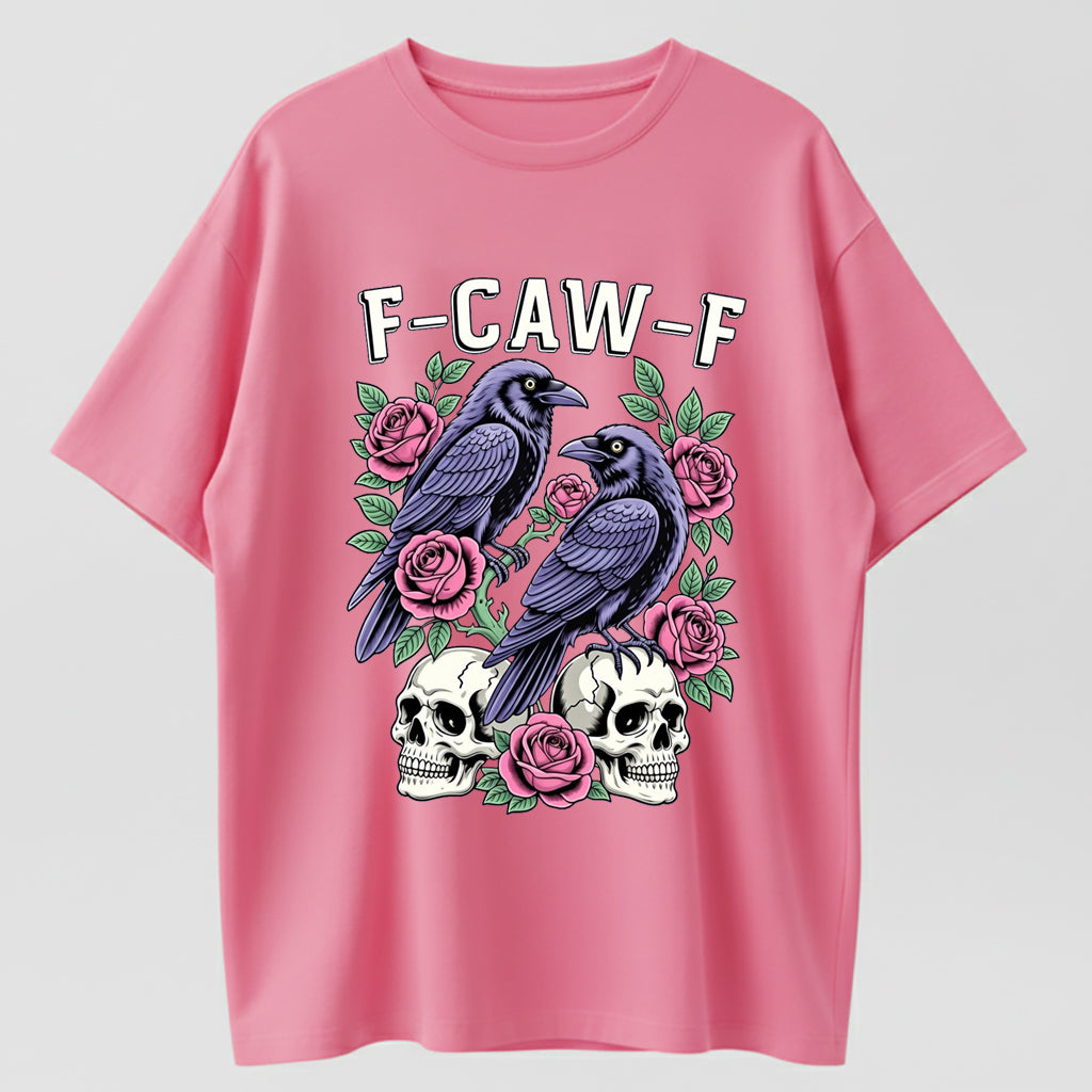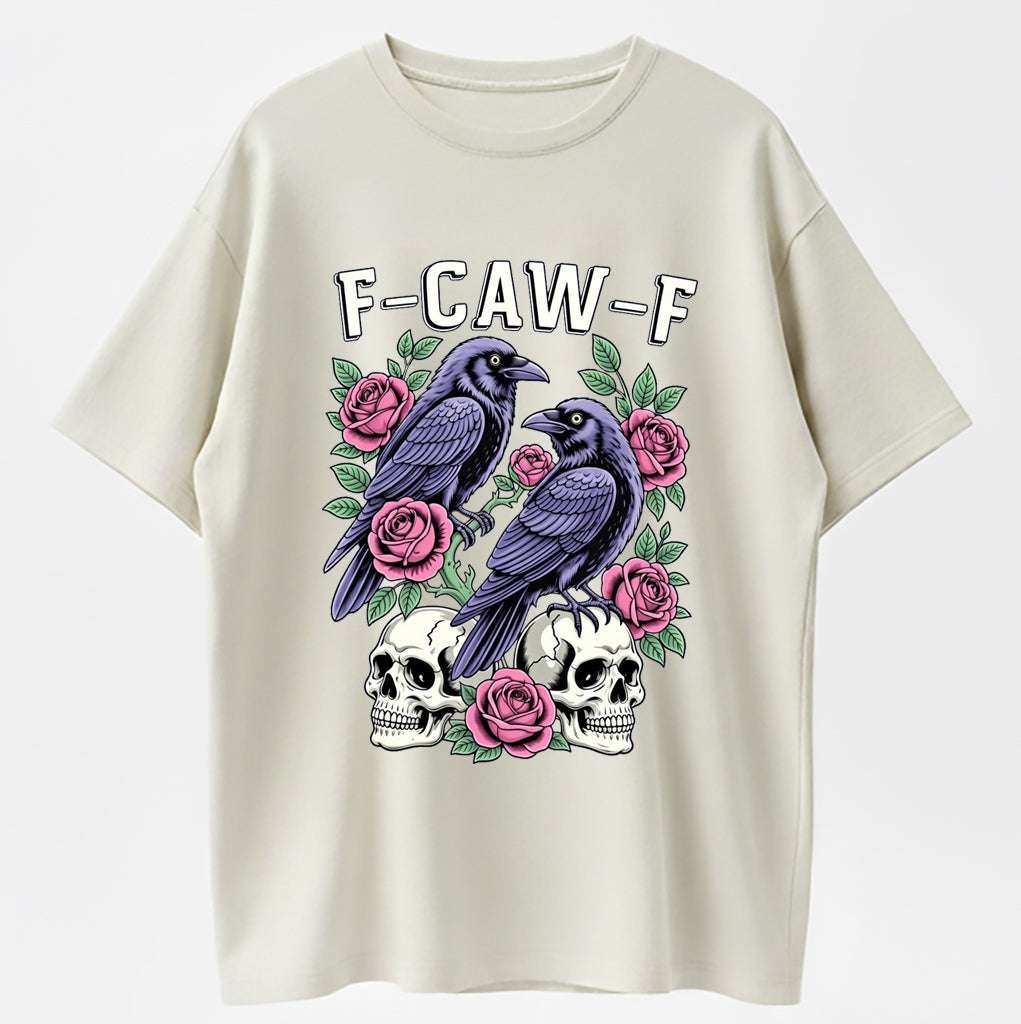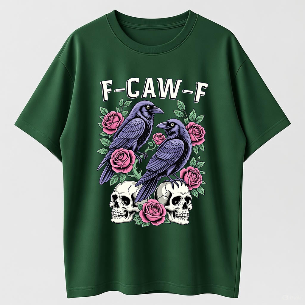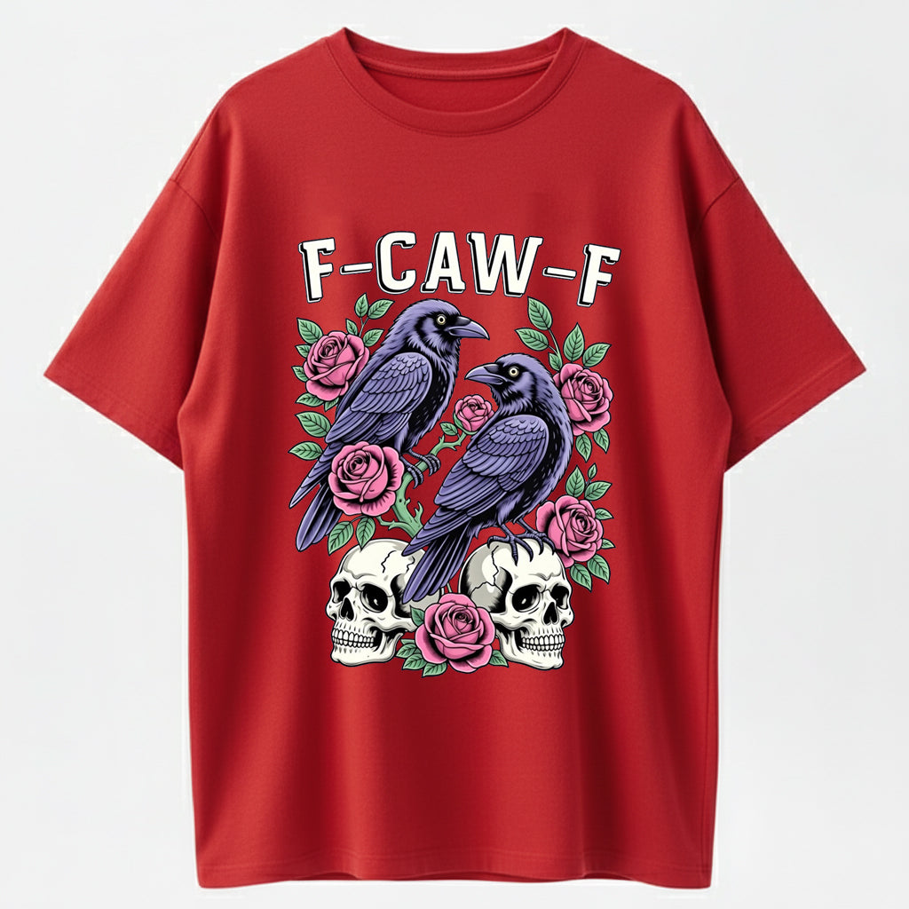 Gothic Black Crow F-Caw-F Graphic Tee Unisex Cotton T-Shirt for Men Women Loose Fit Soft Fabric Casual Streetwear Top