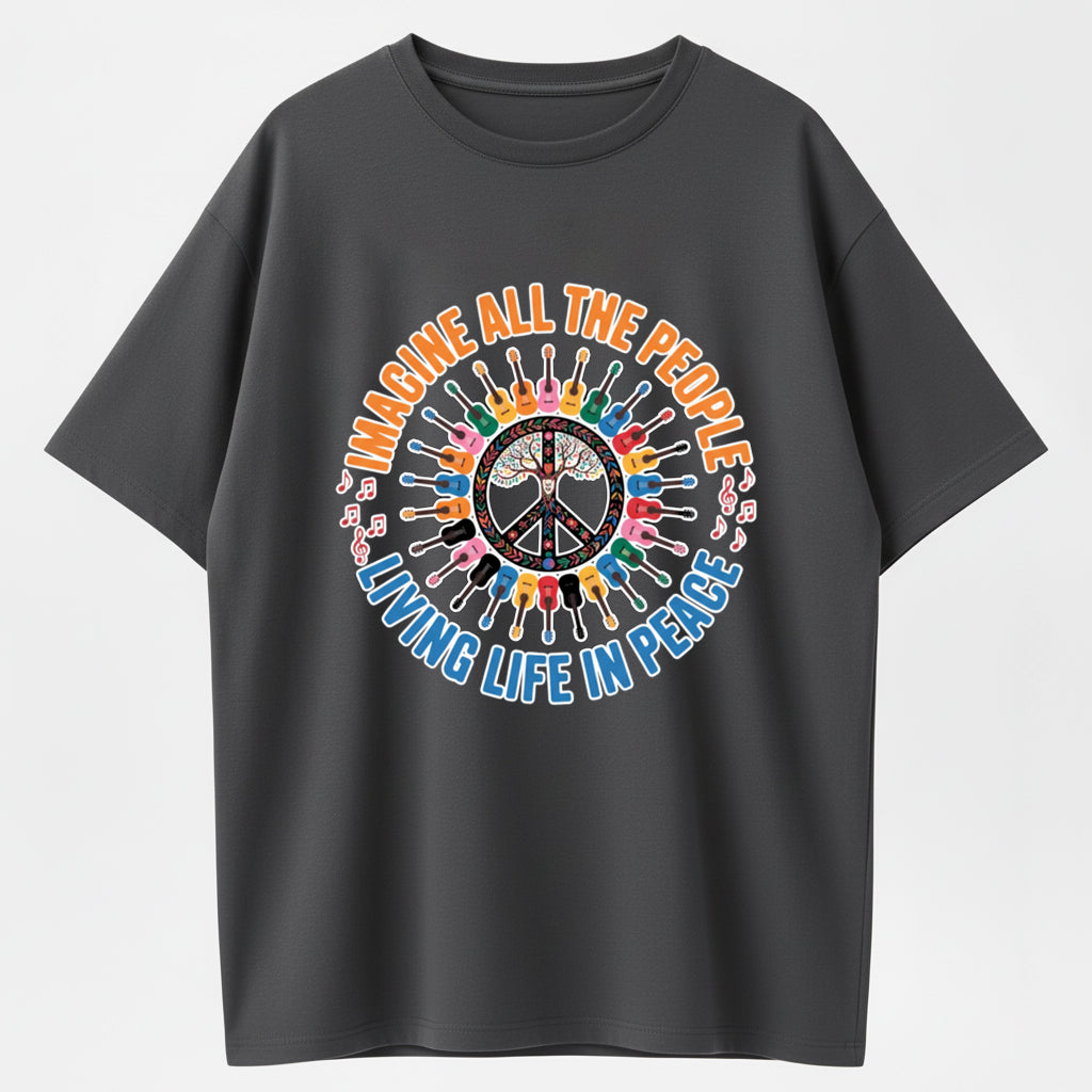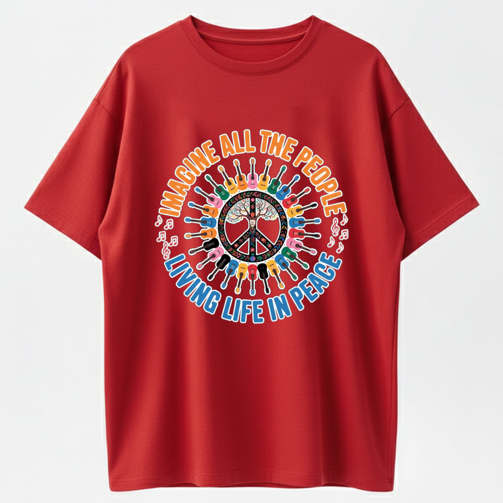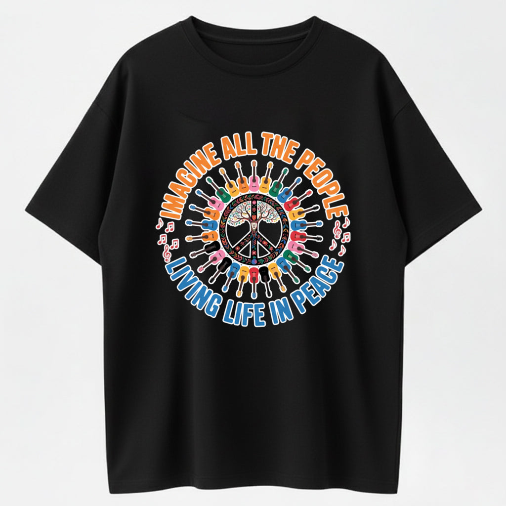 Guitar Peace Tree IMAGINE Lyrics Multicolor Guitar Print T-Shirt