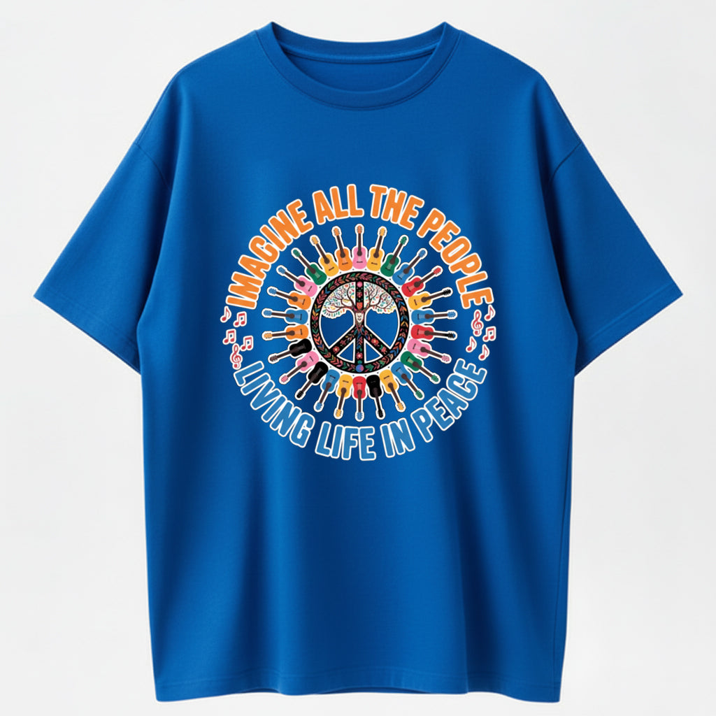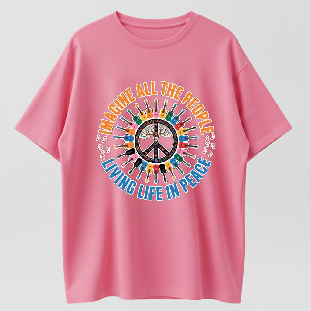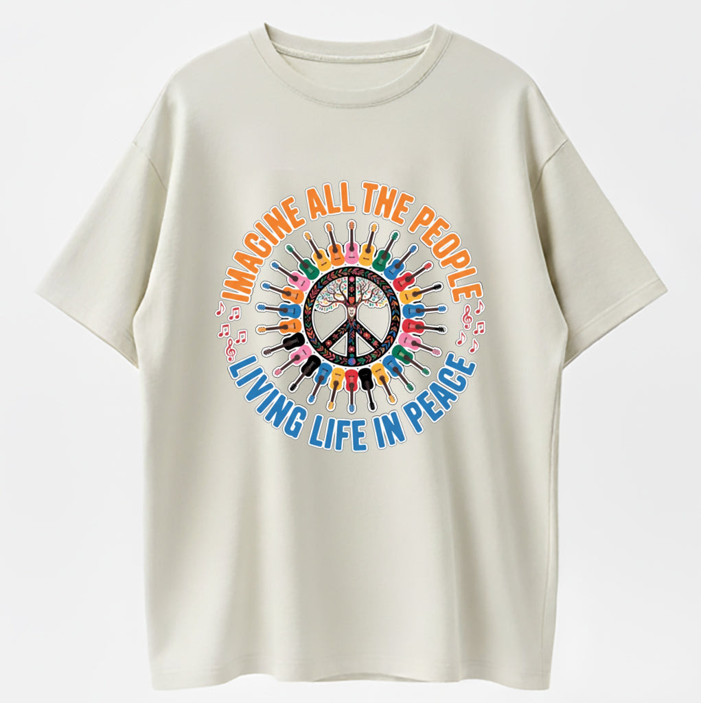 Guitar Peace Tree IMAGINE Lyrics Multicolor Guitar Print T-Shirt