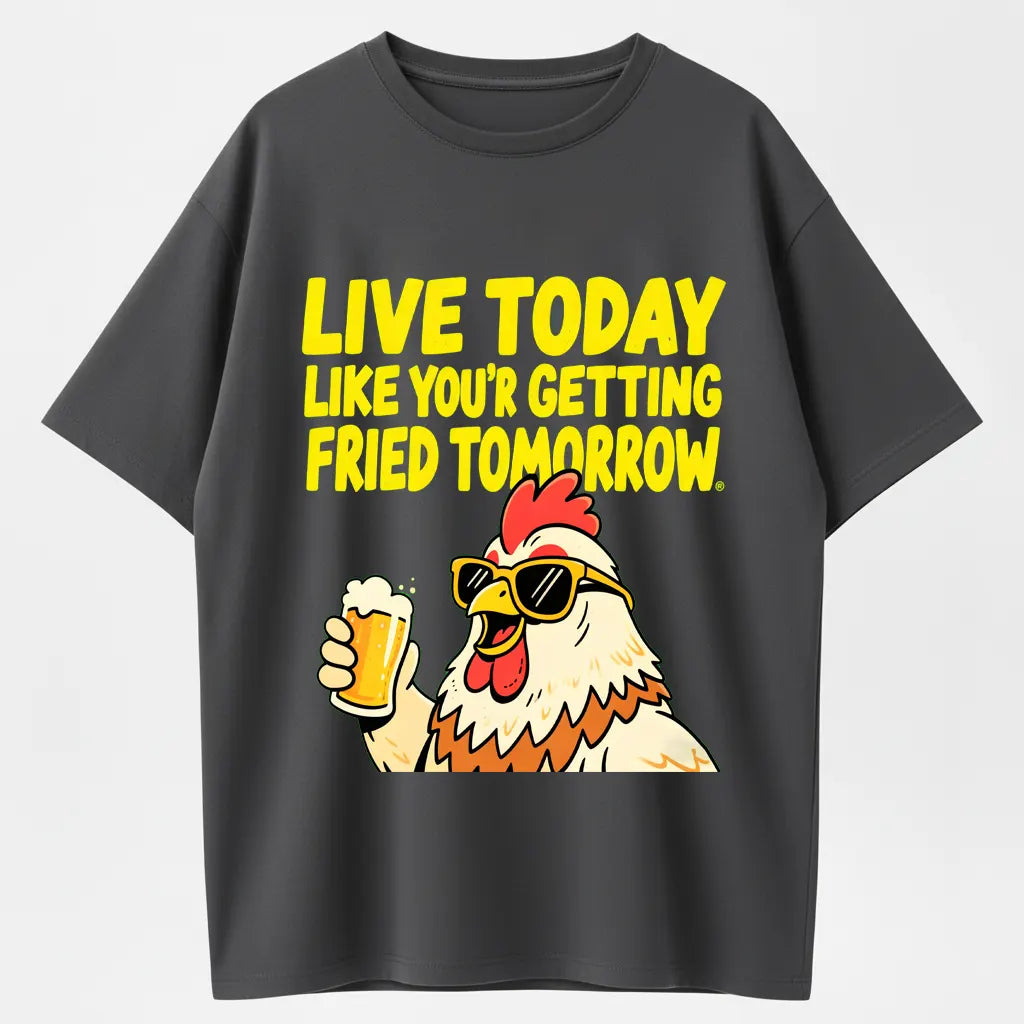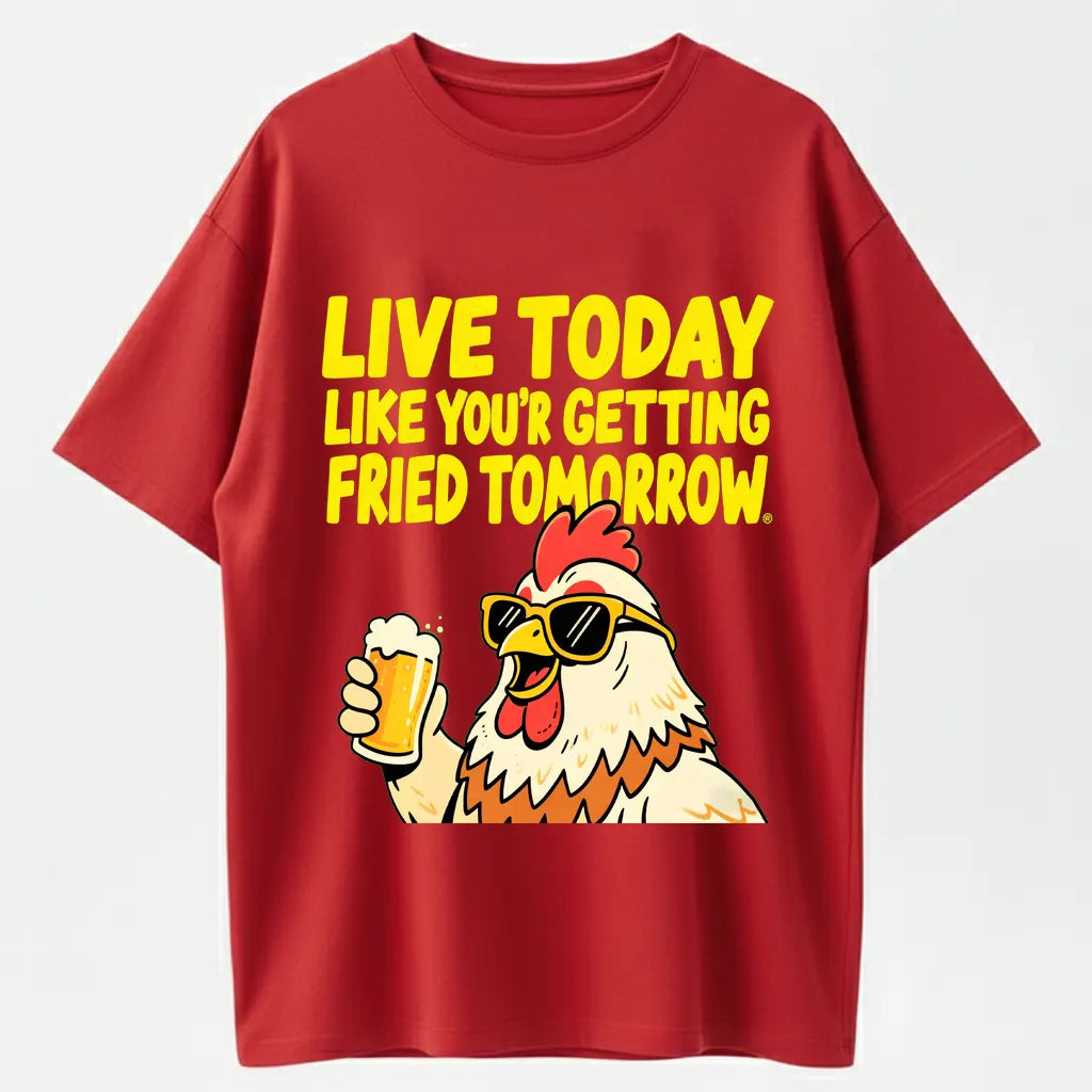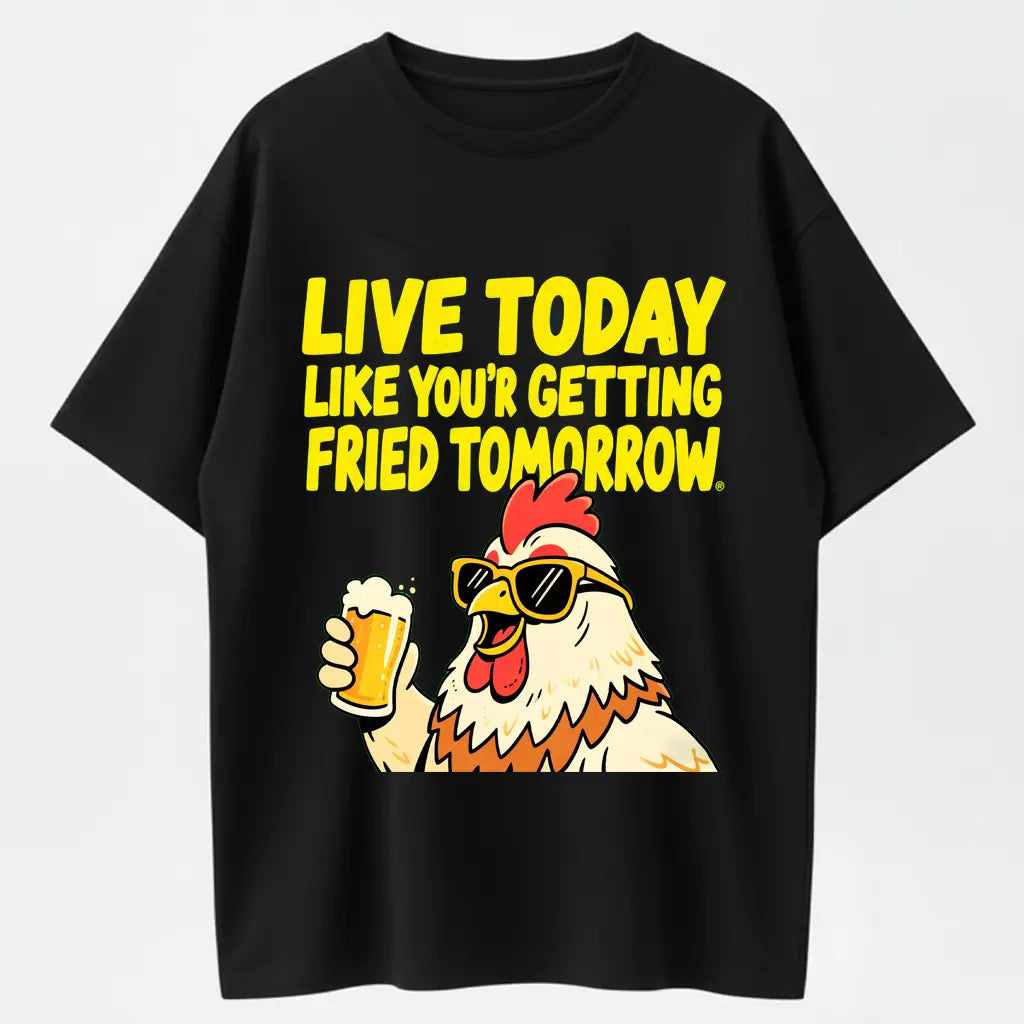 Humorous Rooster T-Shirt – Live Today Like Fried Tomorrow