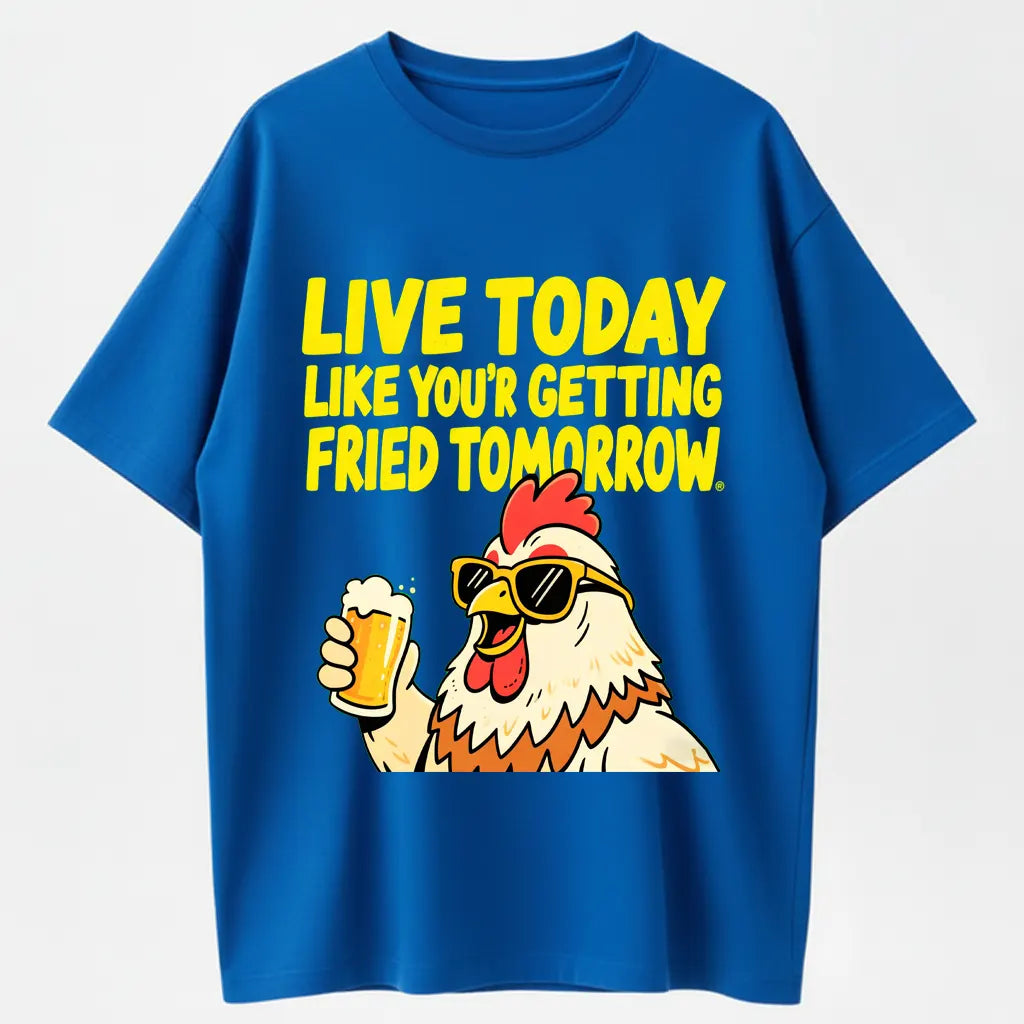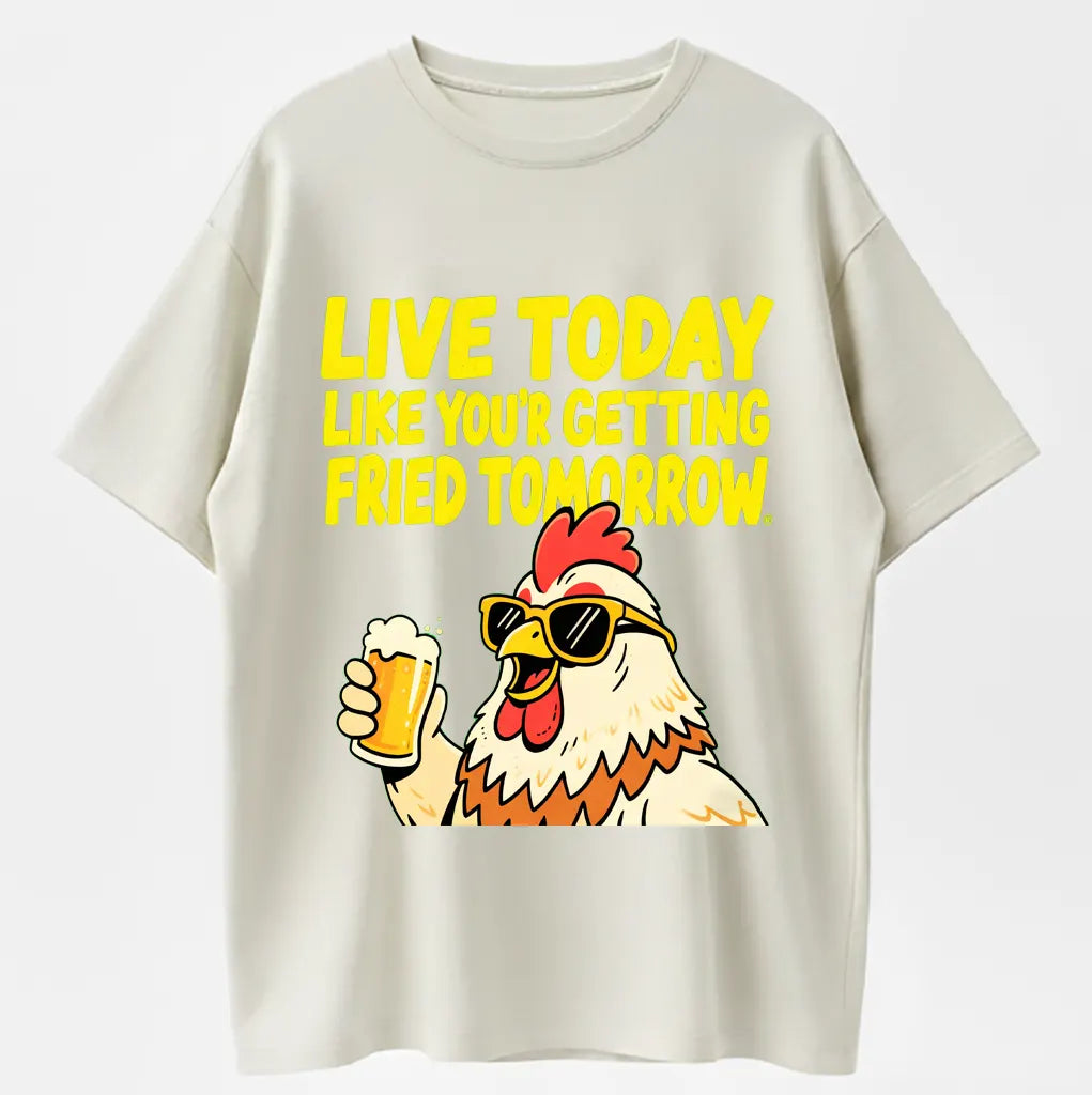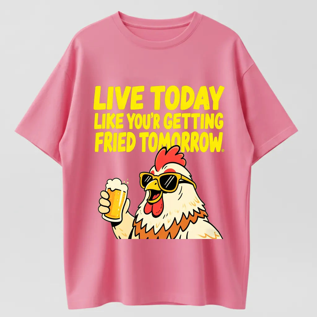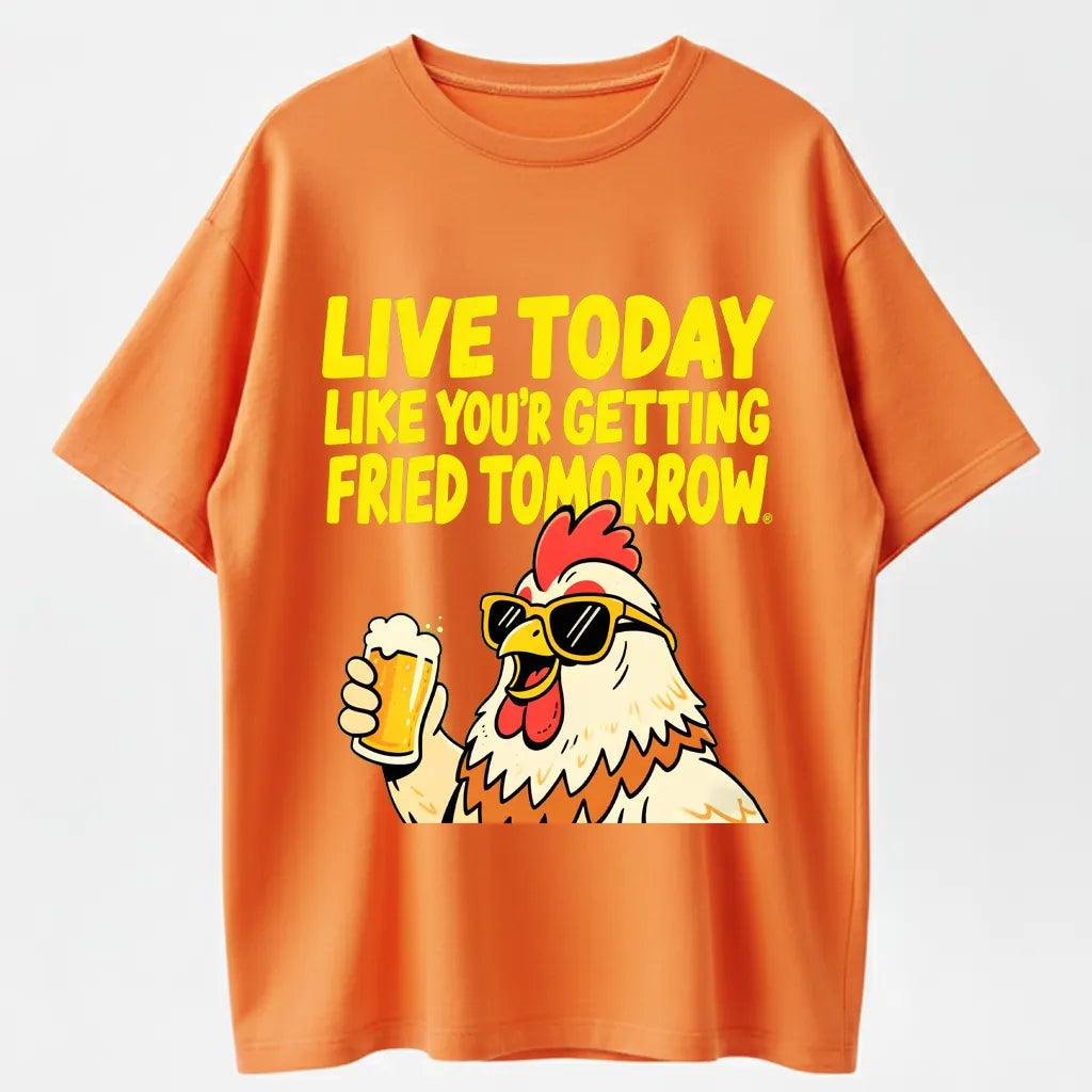 Humorous Rooster T-Shirt – Live Today Like Fried Tomorrow