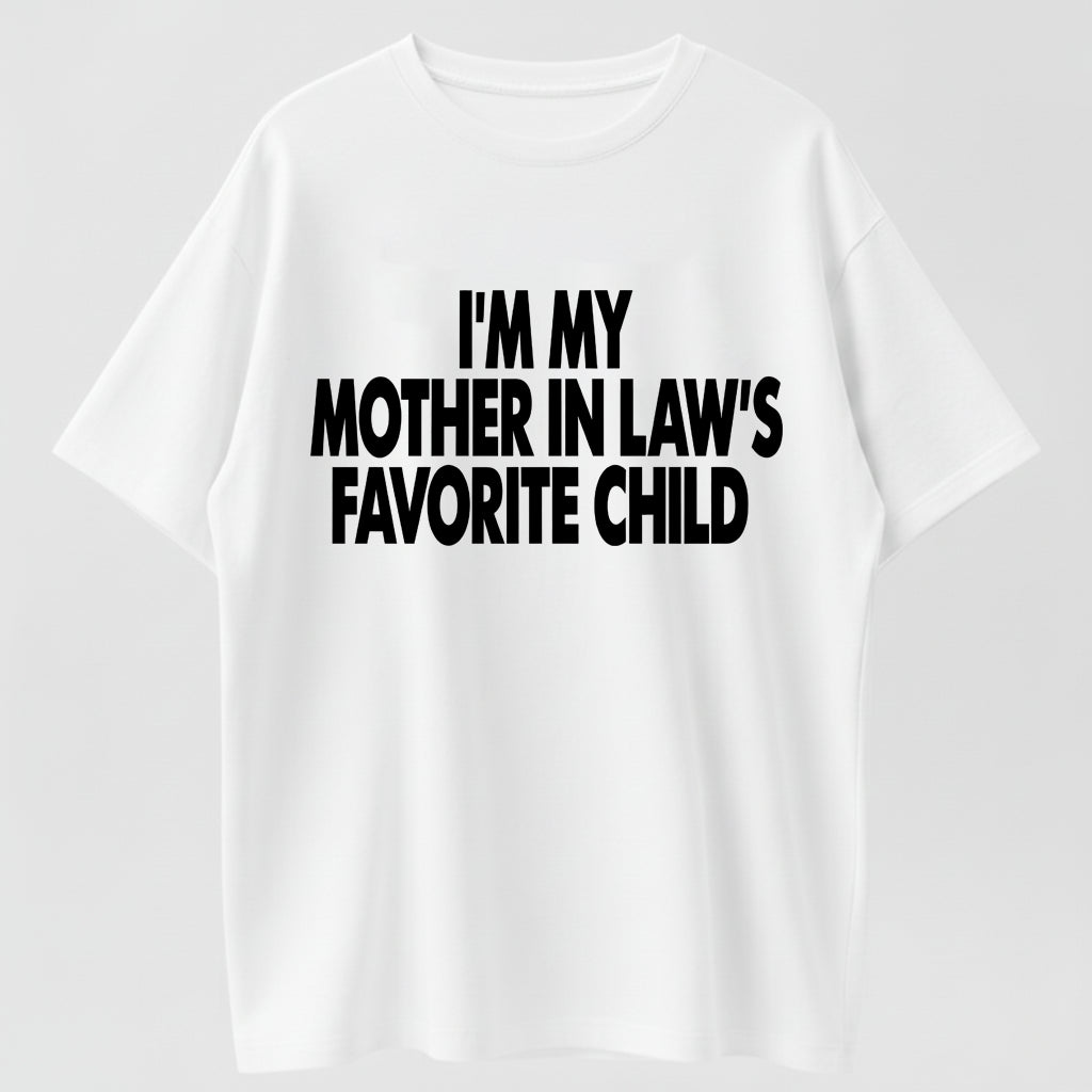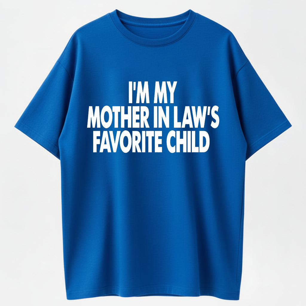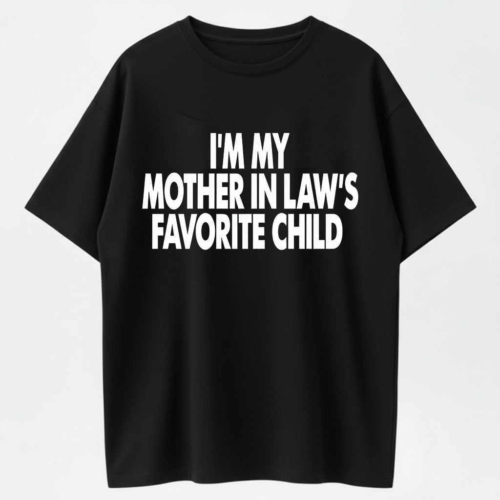 I’m My Mother In Law’s Favorite Child’ Humor T-Shirt – Spark Conversations with Family Jokes