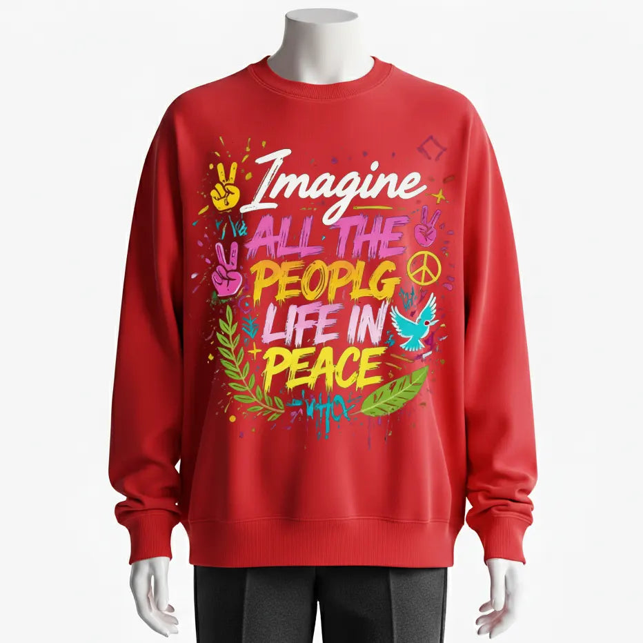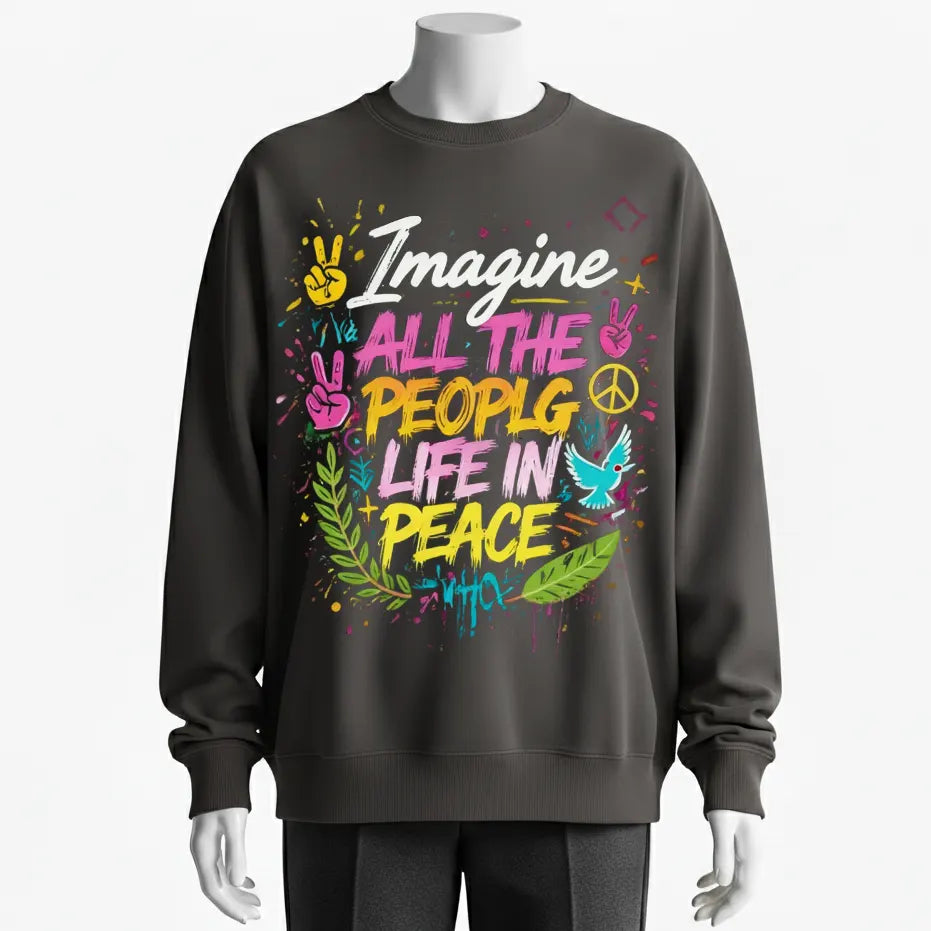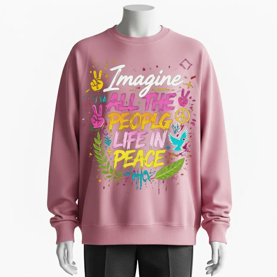 Inspirational Peace Hoodie – 'Imagine' Slogan with Colorful Art for Peace Enthusiasts