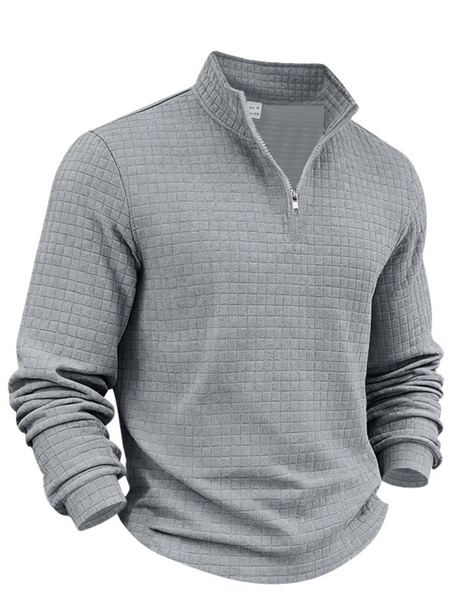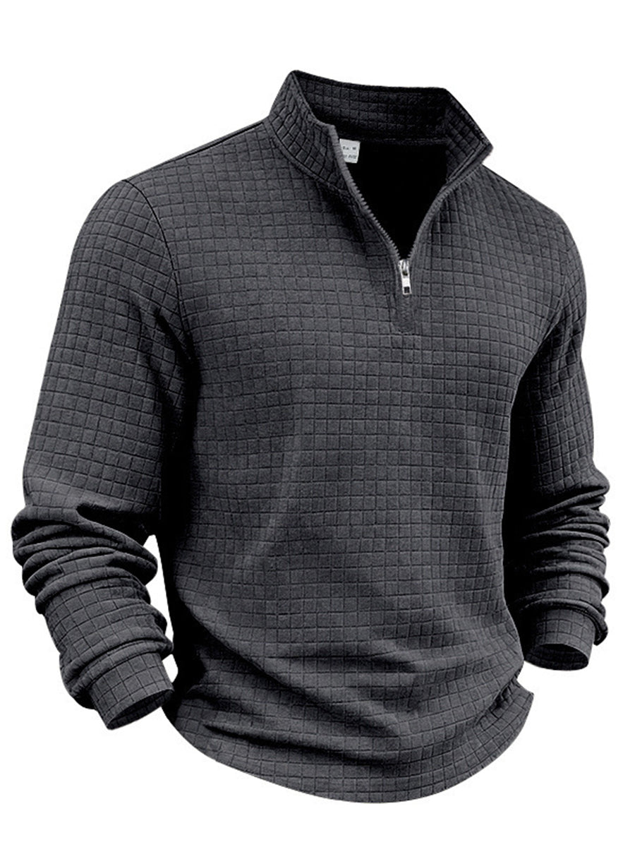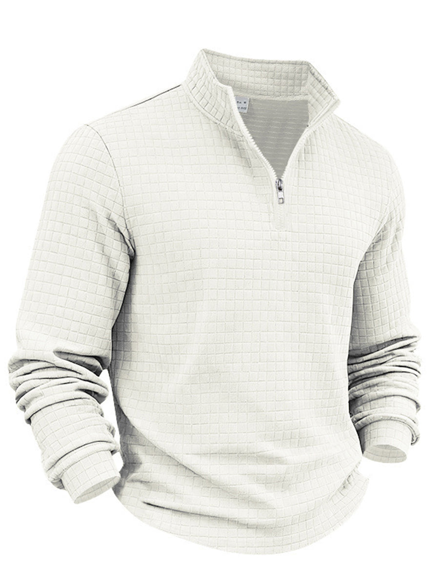 Men's Solid Color Waffle Weave Pullover Sweatshirt