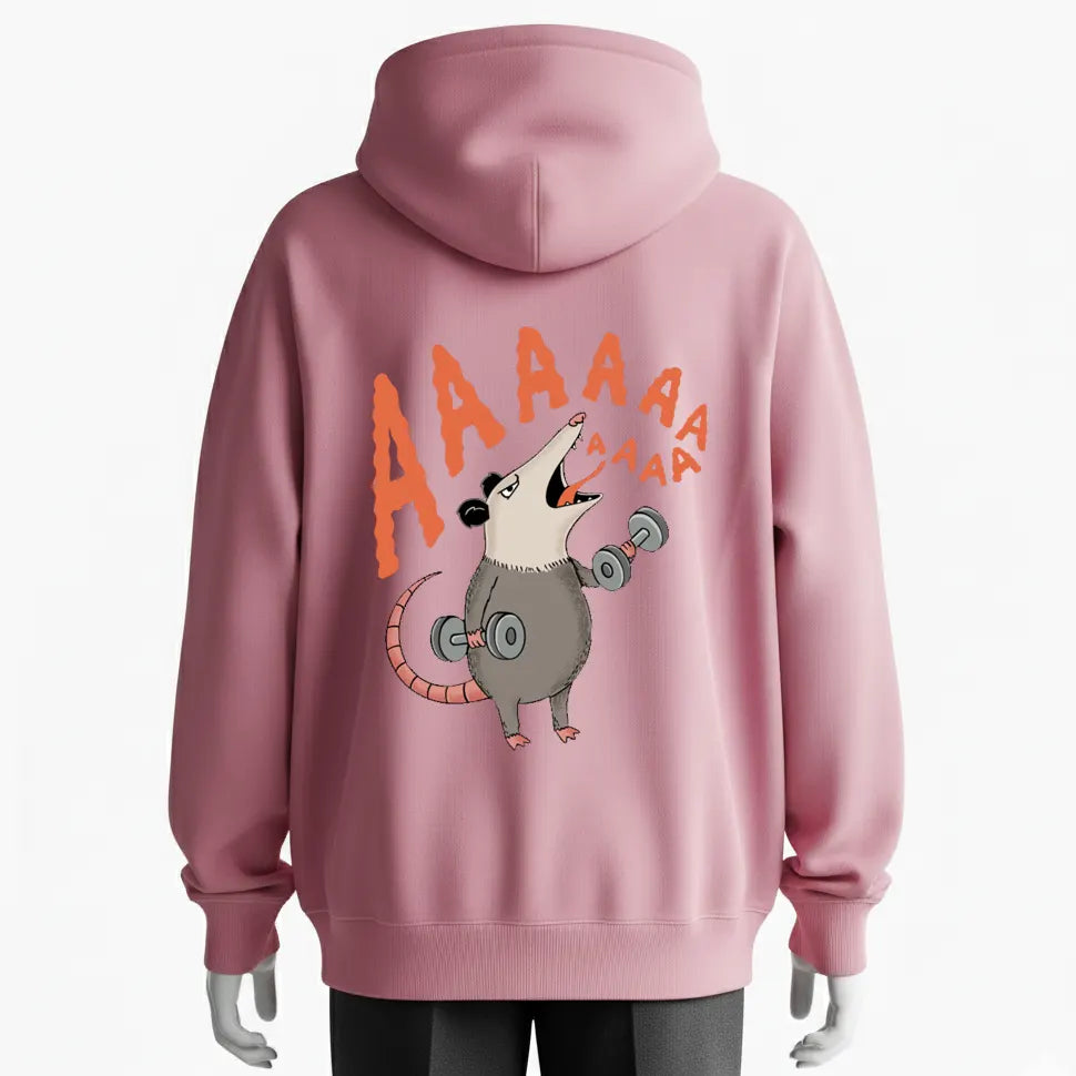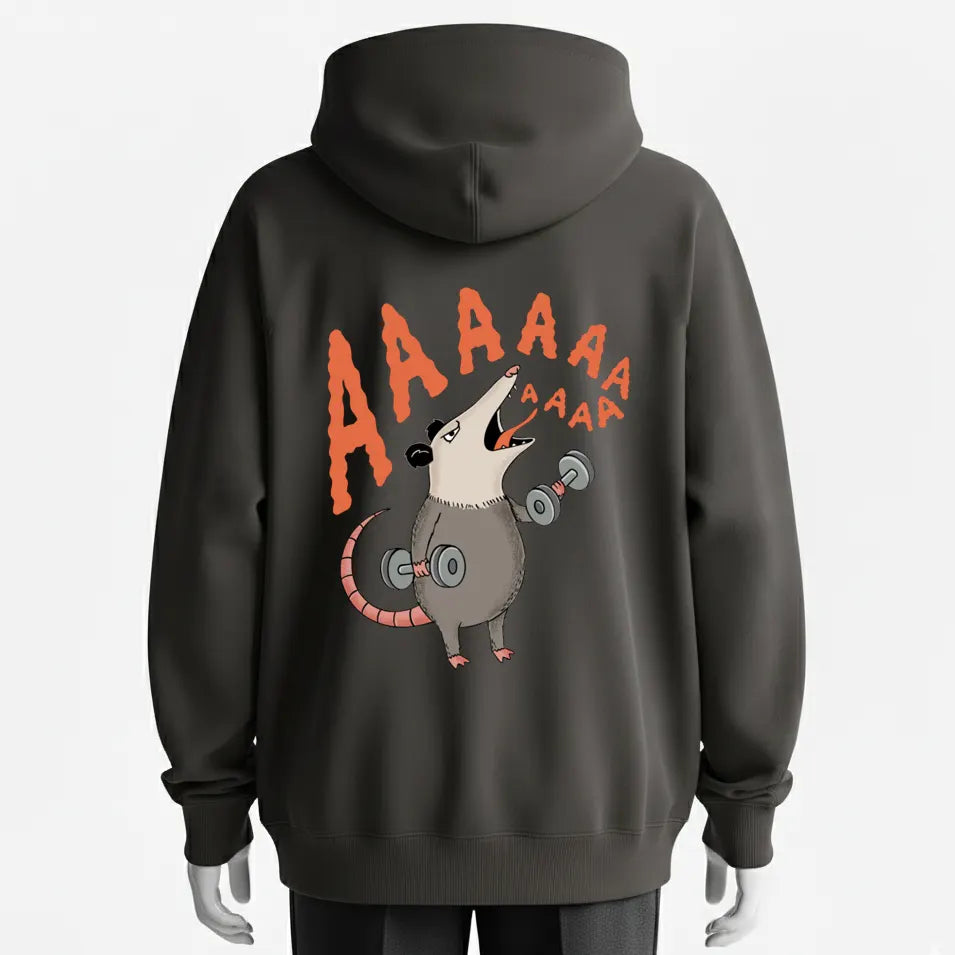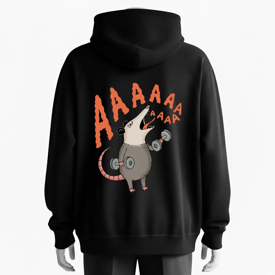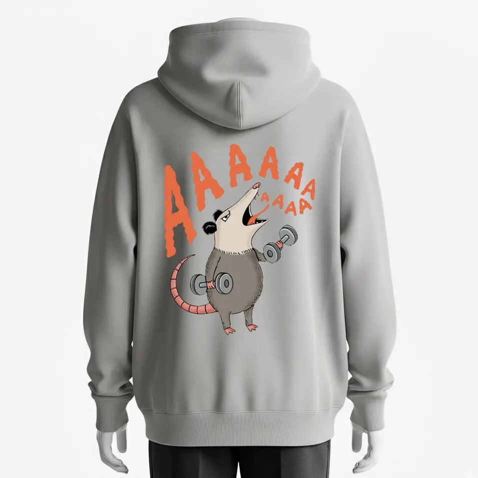 Possum Lifting Weights Screaming AAAAAA Funny Animal Graphic Hoodie - 100% Cotton