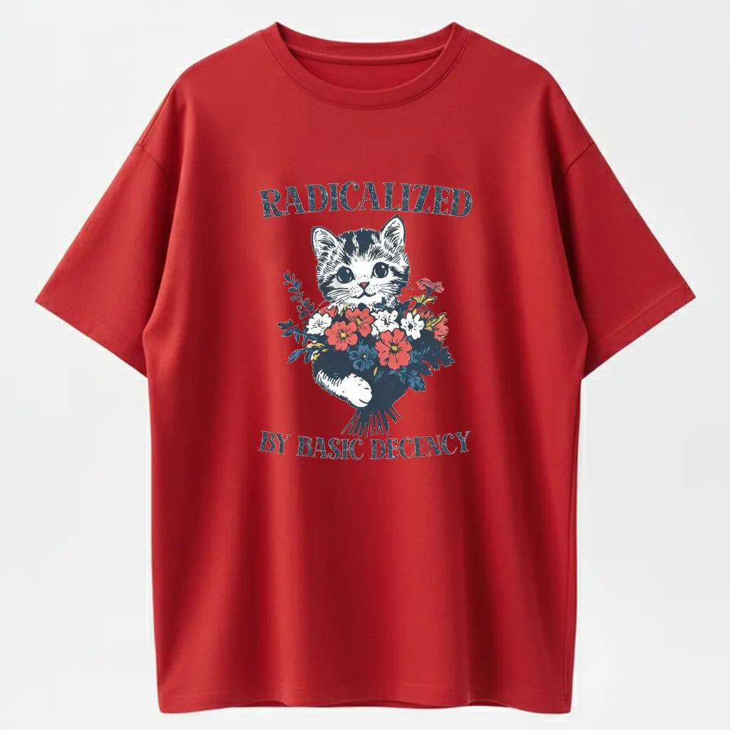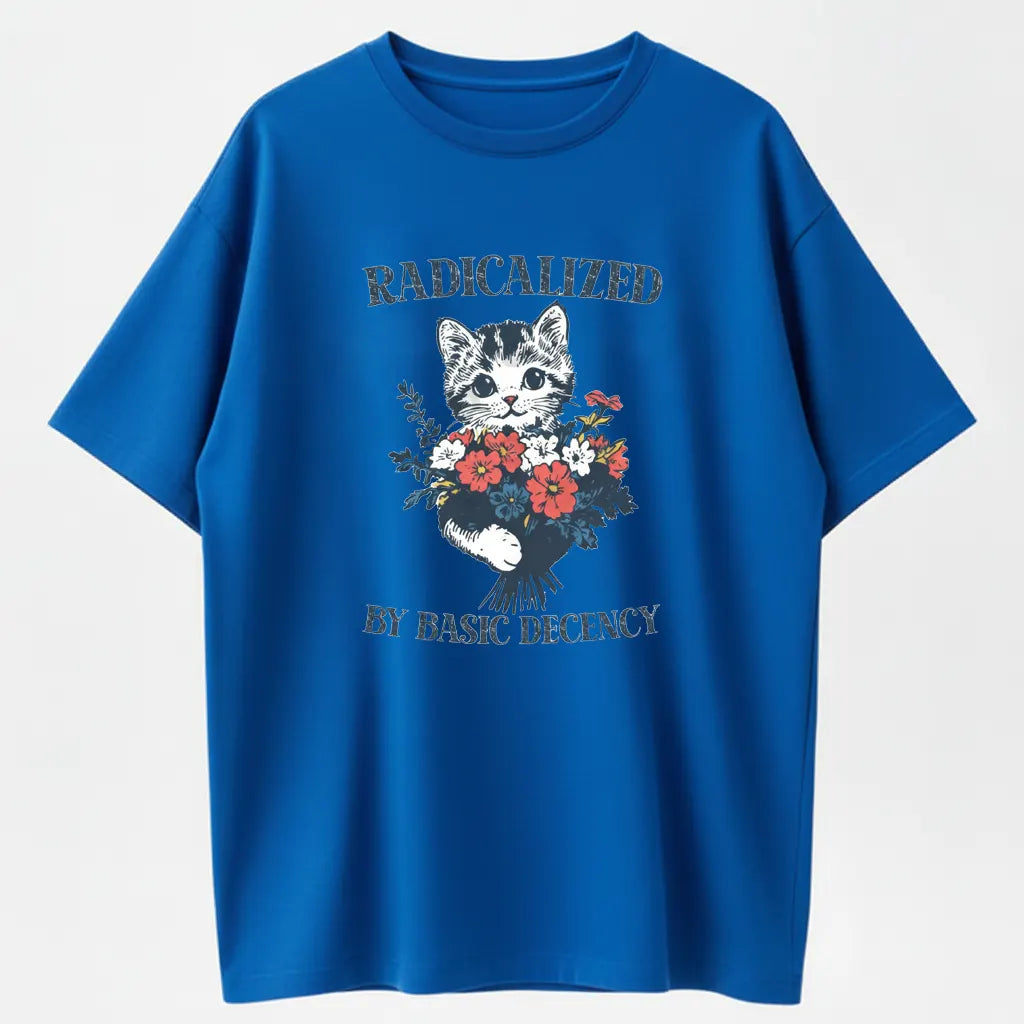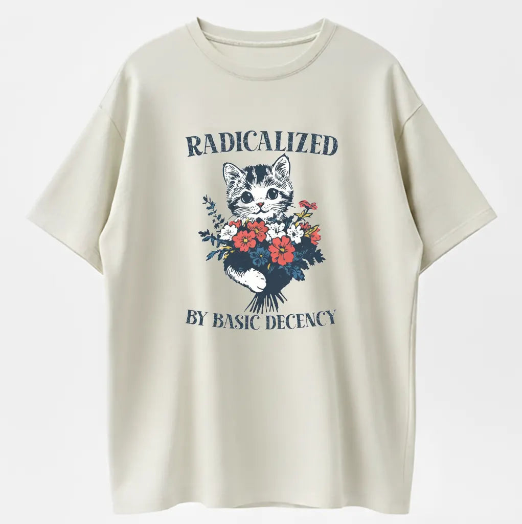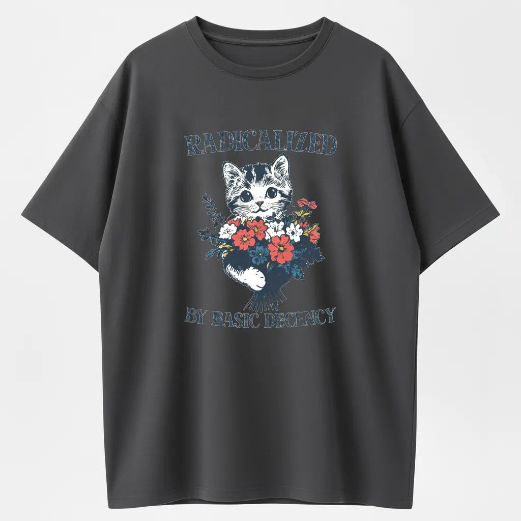 Radicalized By Basic Decency Cat & Flowers Vintage Graphic T-Shirt - 100% Cotton Heavyweight