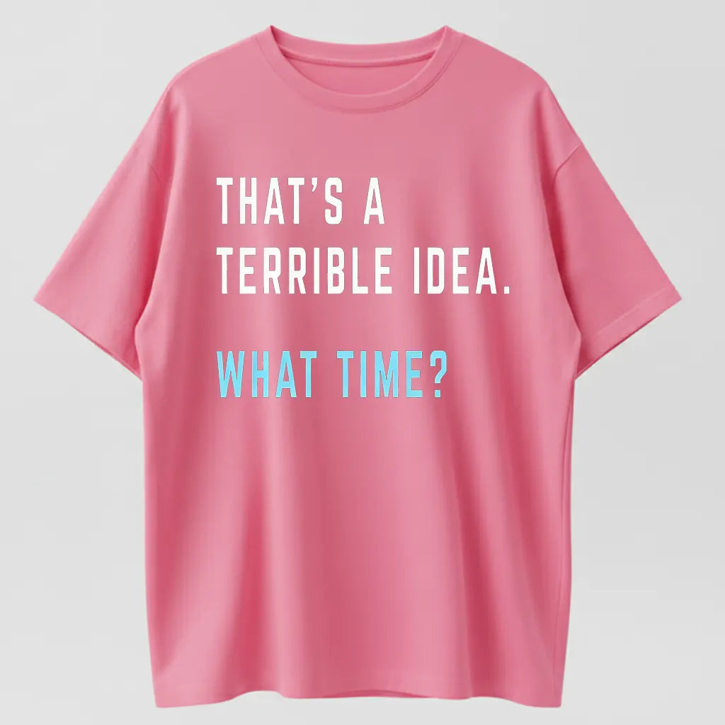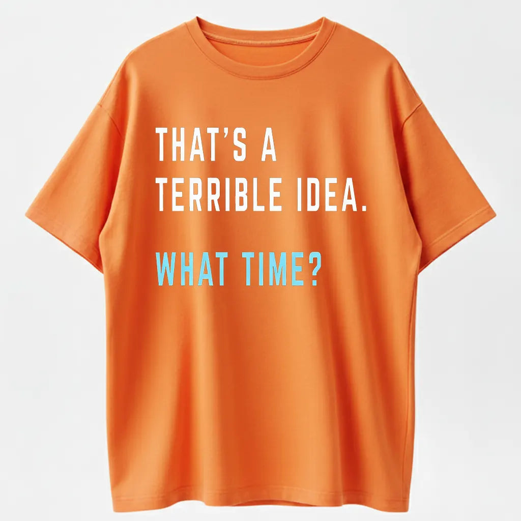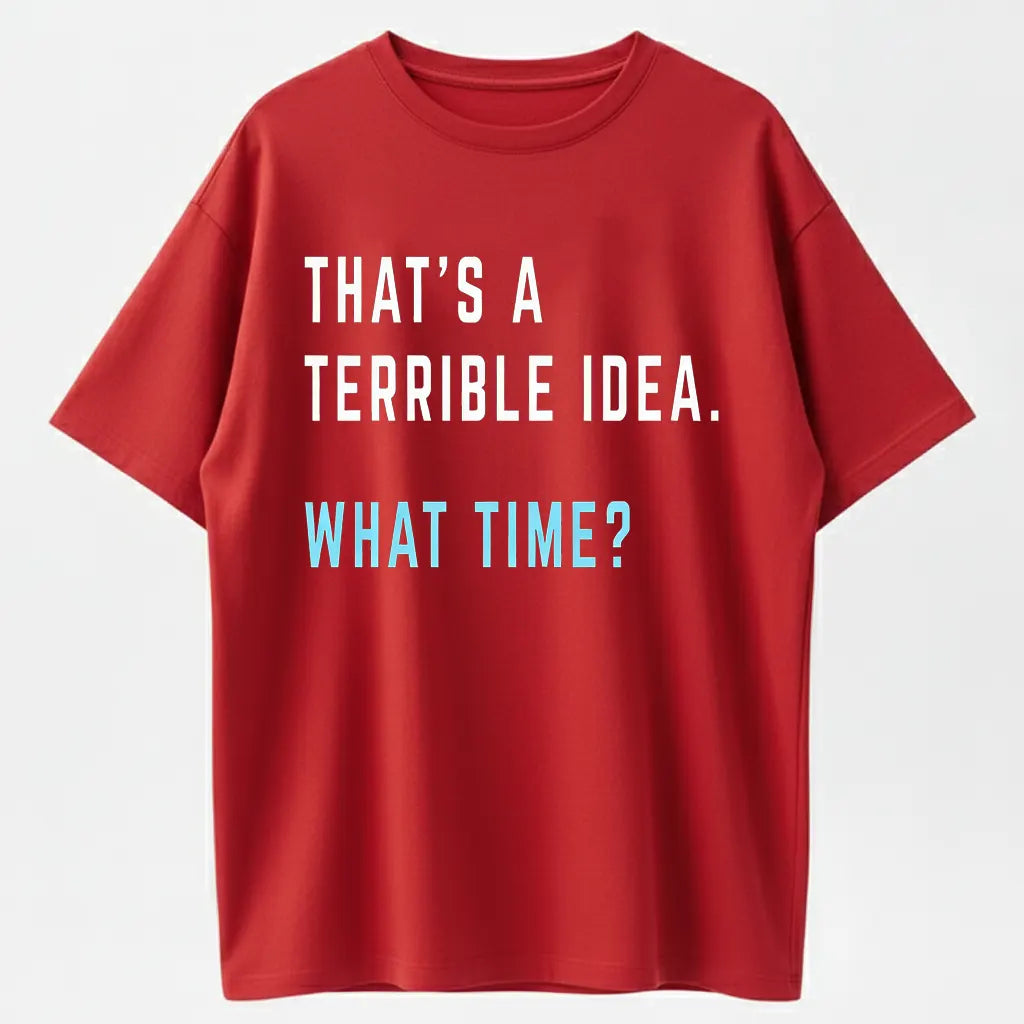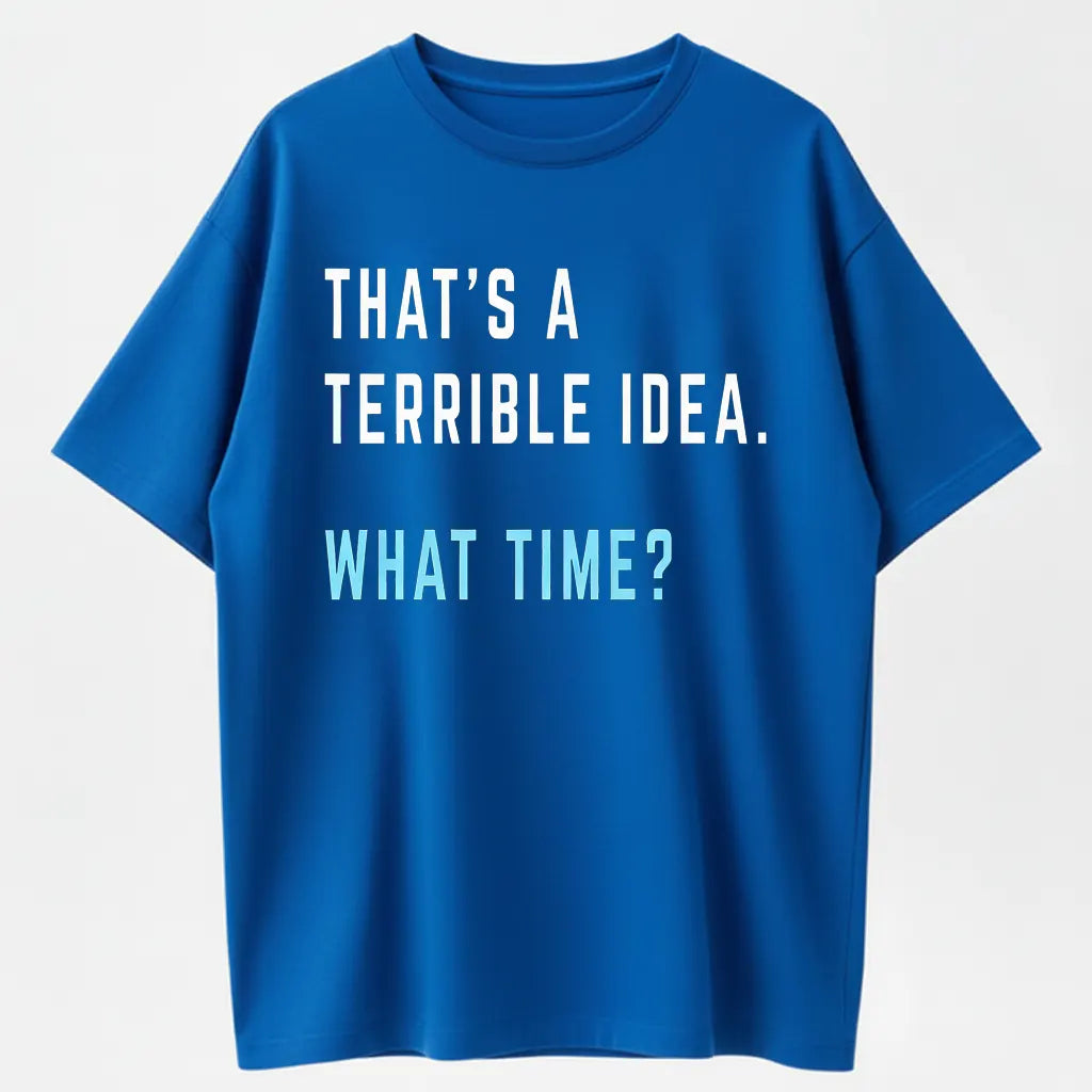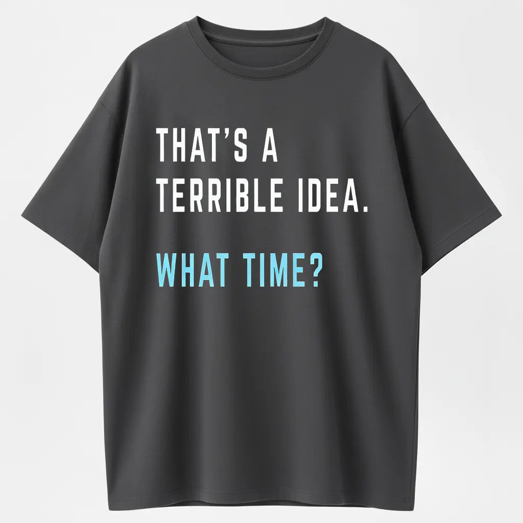 "That's A Terrible Idea. What Time?" Humor Graphic T-Shirt - 100% Cotton Heavyweight