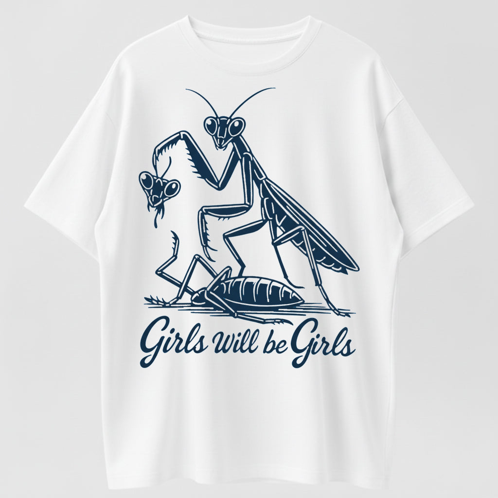 Girls Will Be Girls Funny Praying Mantis Graphic Tee