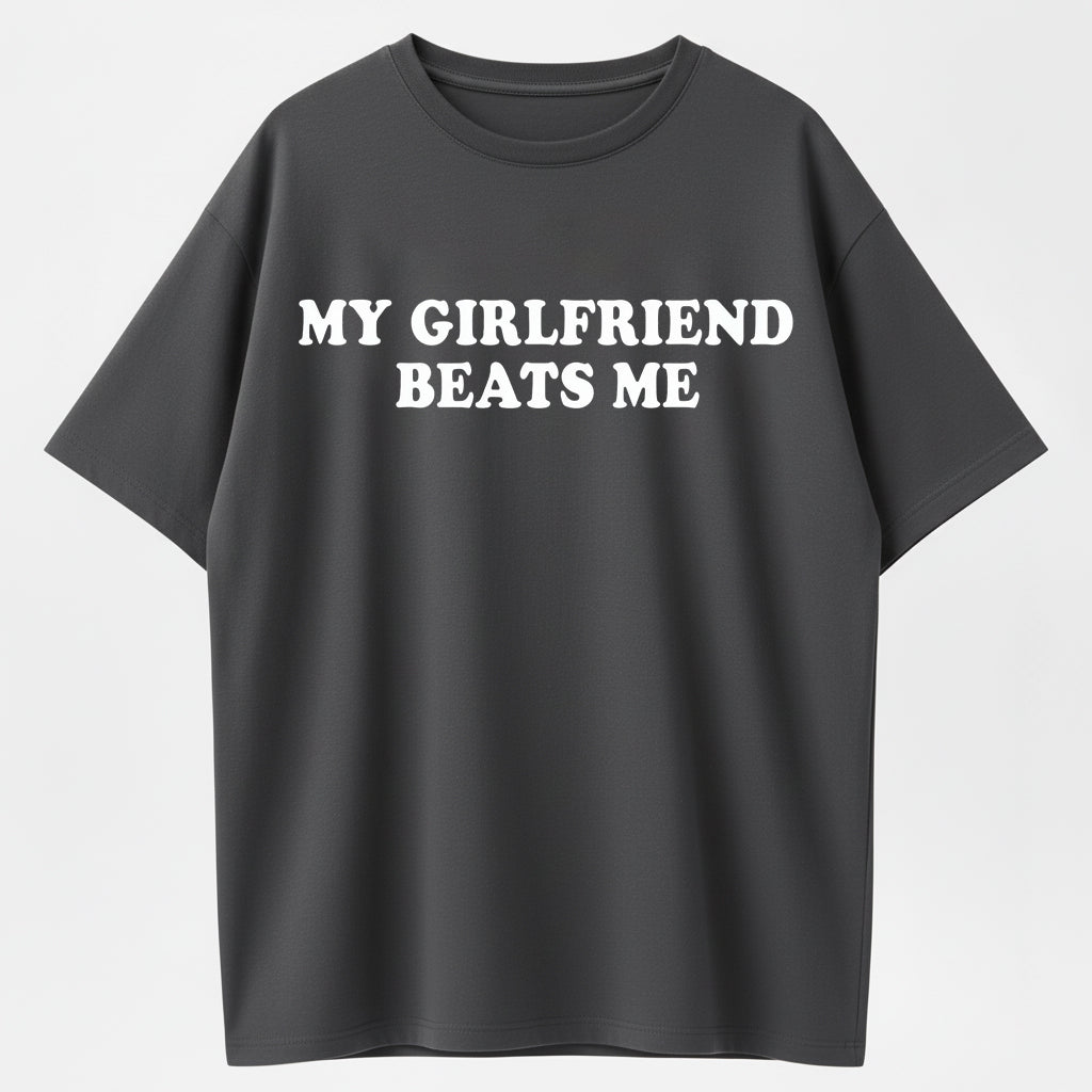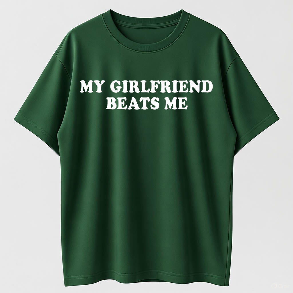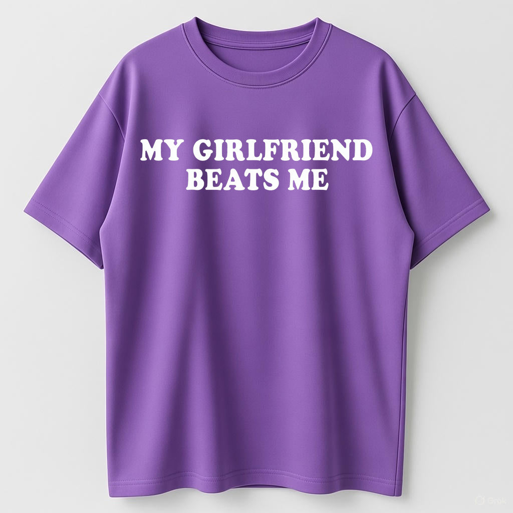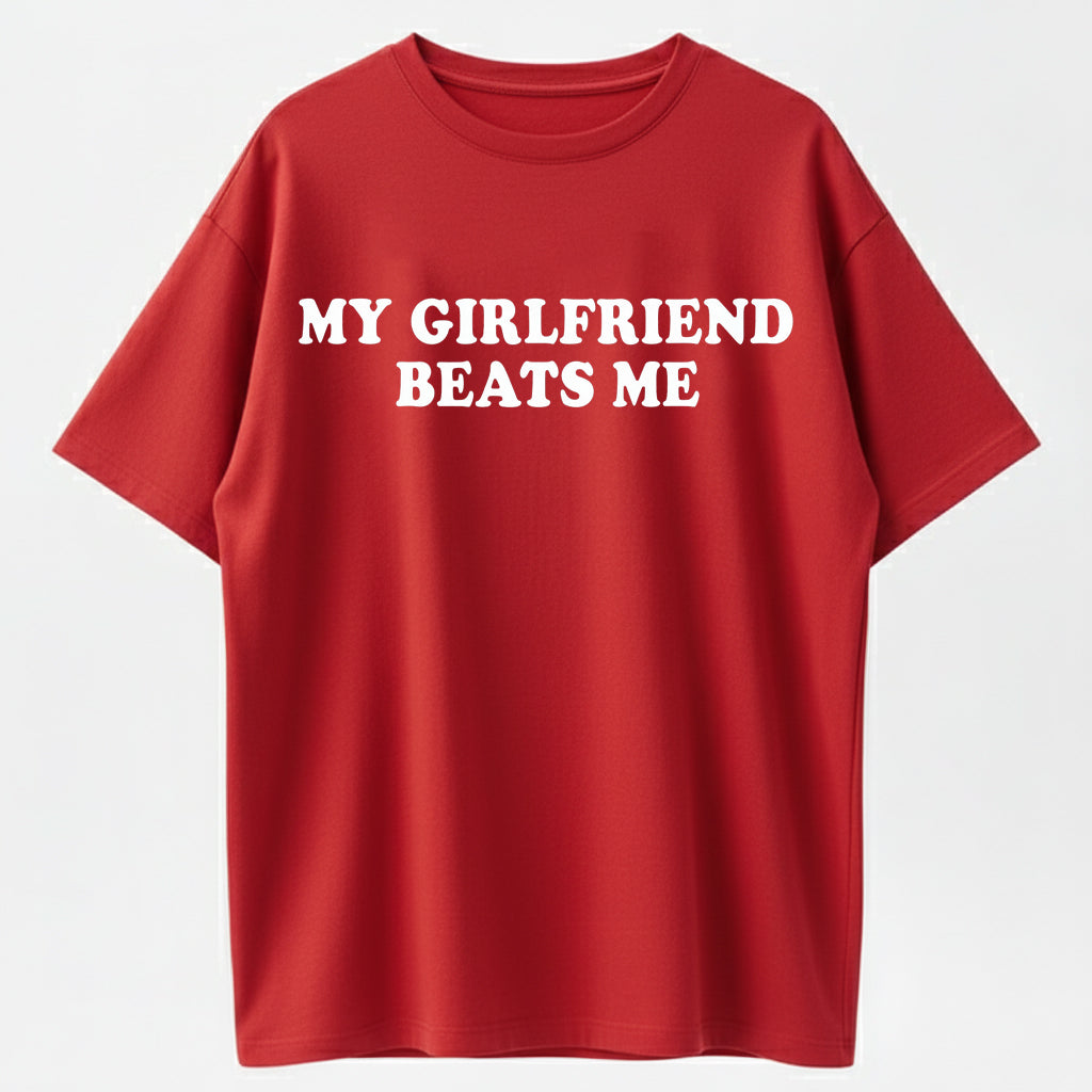 My Girlfriend Beats Me Funny Sarcastic Humor T-Shirt - Bold Statement Tee for Men