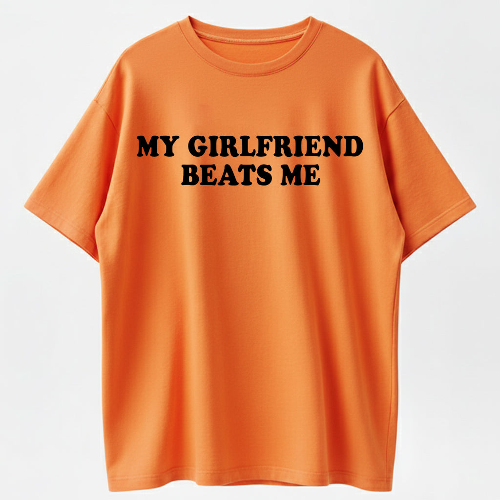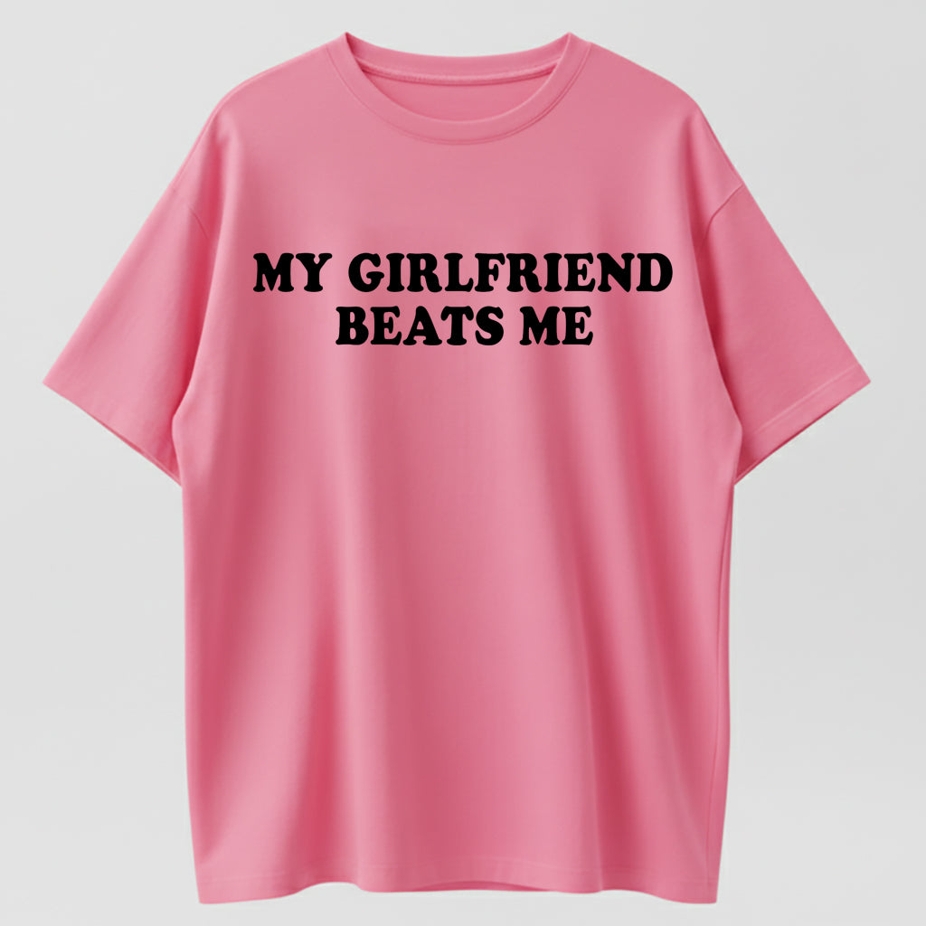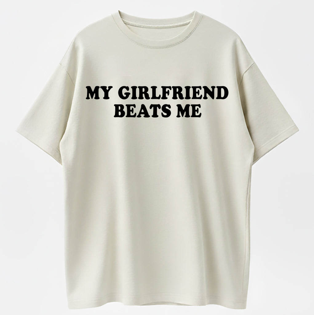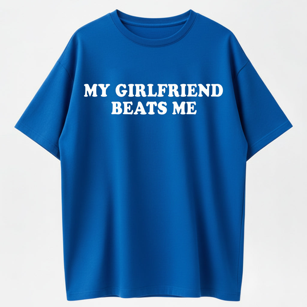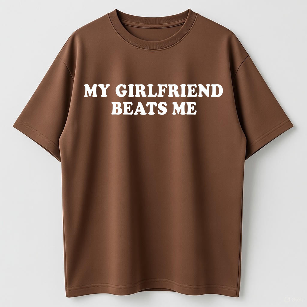 My Girlfriend Beats Me Funny Sarcastic Humor T-Shirt - Bold Statement Tee for Men