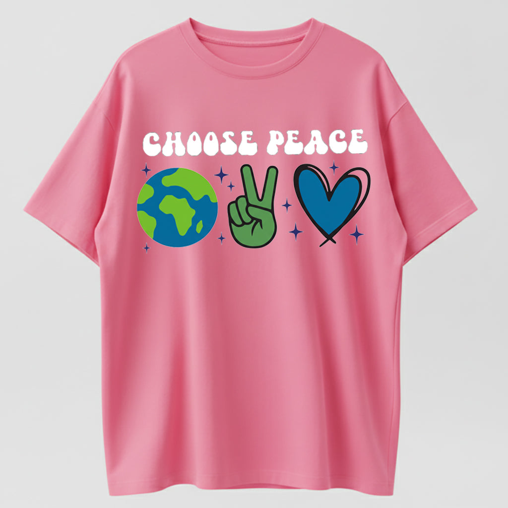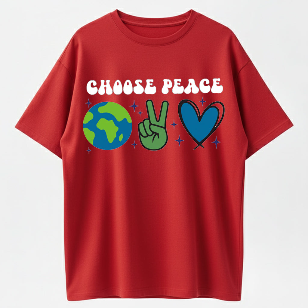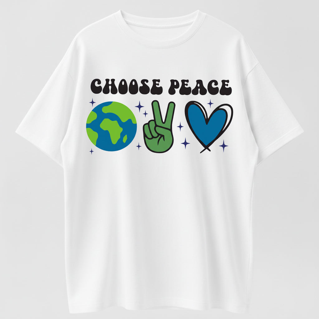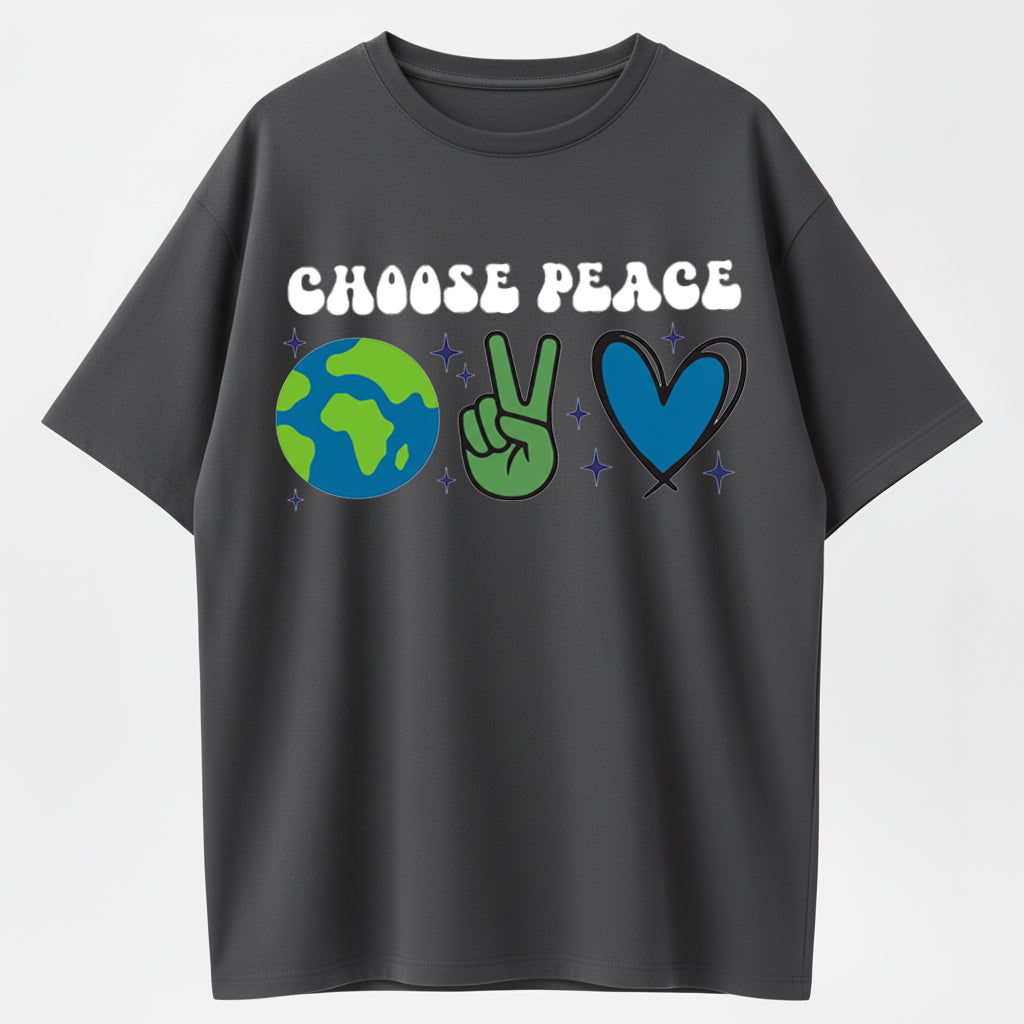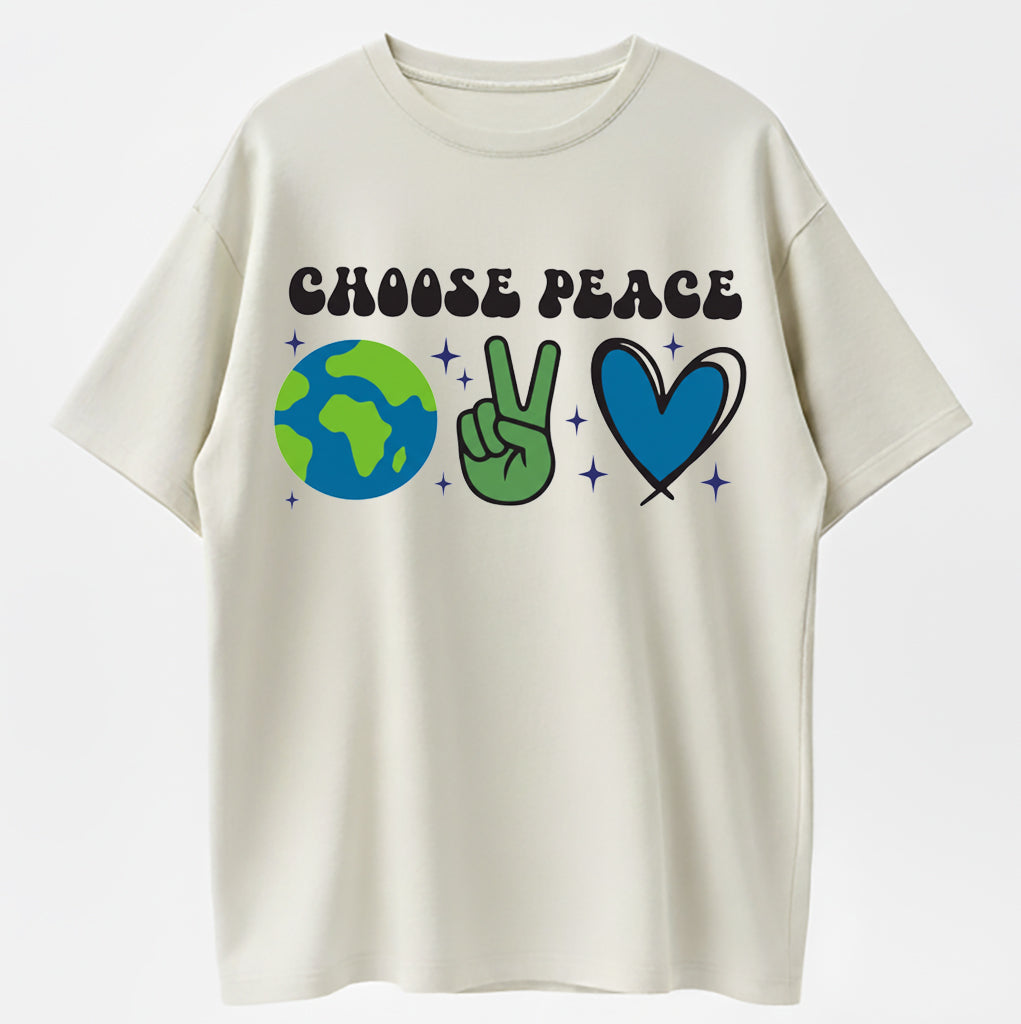 Retro Cartoon Earth & Peace Sign Heart Hand Gesture Trendy Short Sleeve