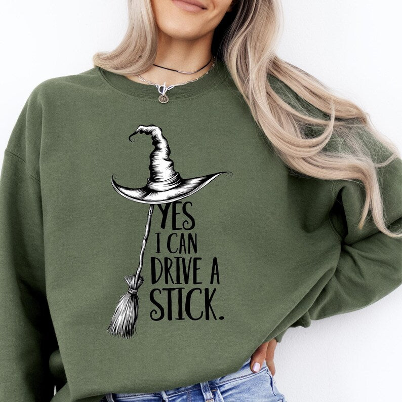 Yes I Can Drive a Stick 100% Cotton Witch Sweatshirt