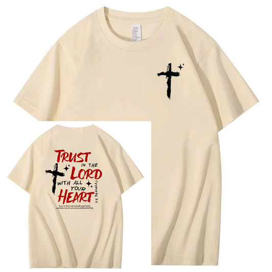 Trust In The Lord Pattern Print Crew Neck T-Shirt