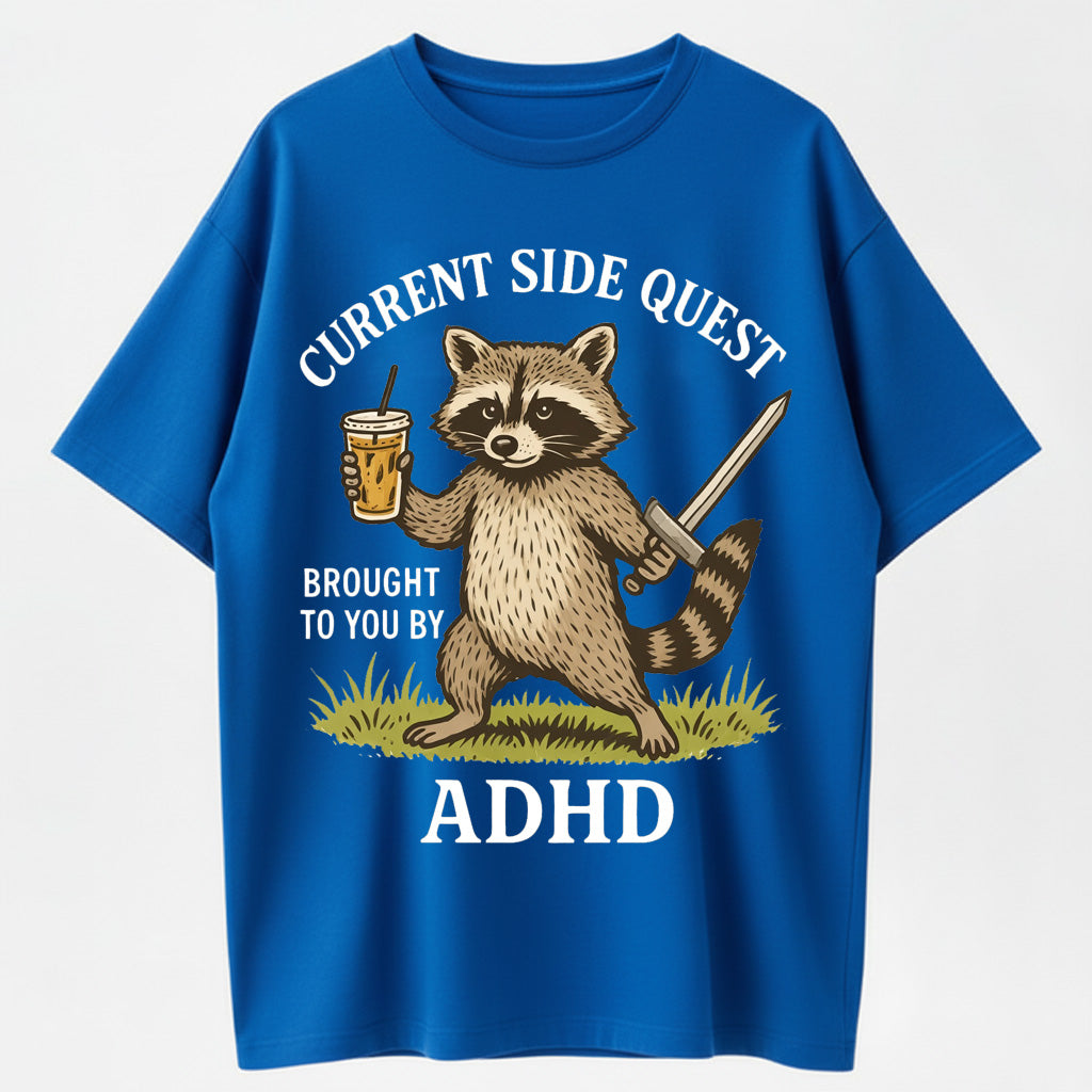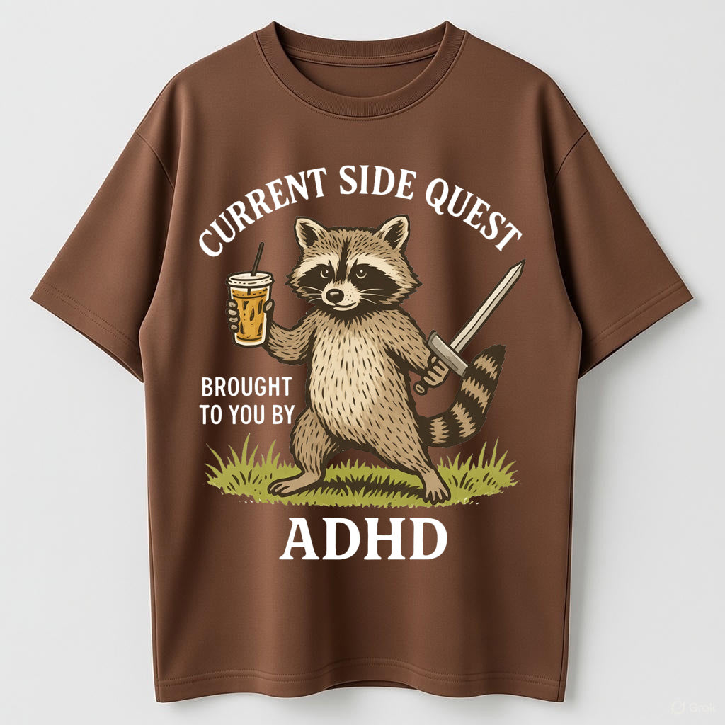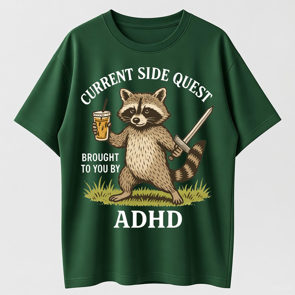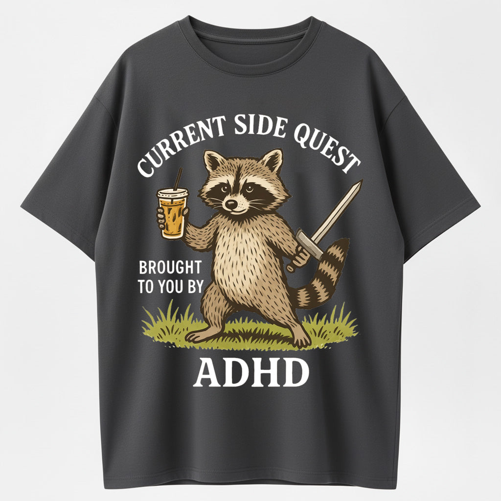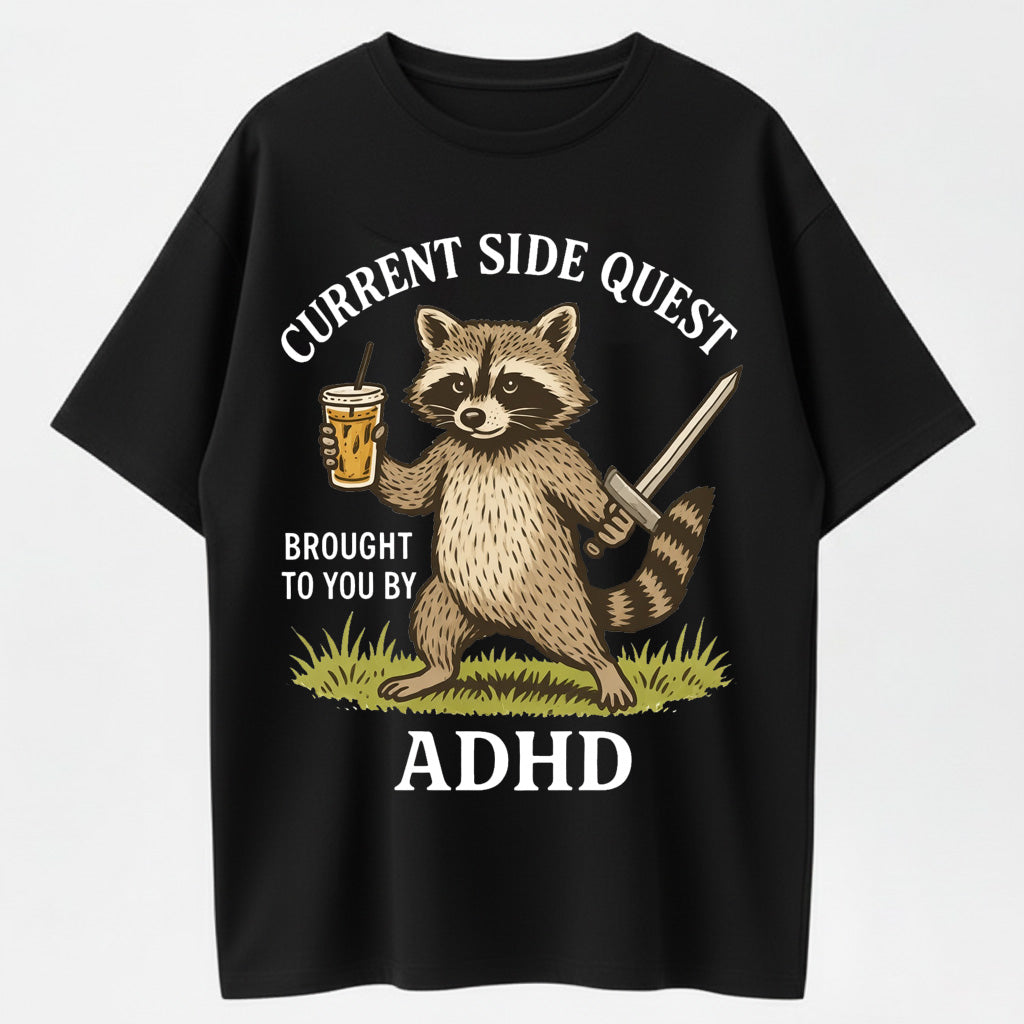 Current Side Quest ADHD Raccoon Funny Organic Cotton Unisex T-Shirt