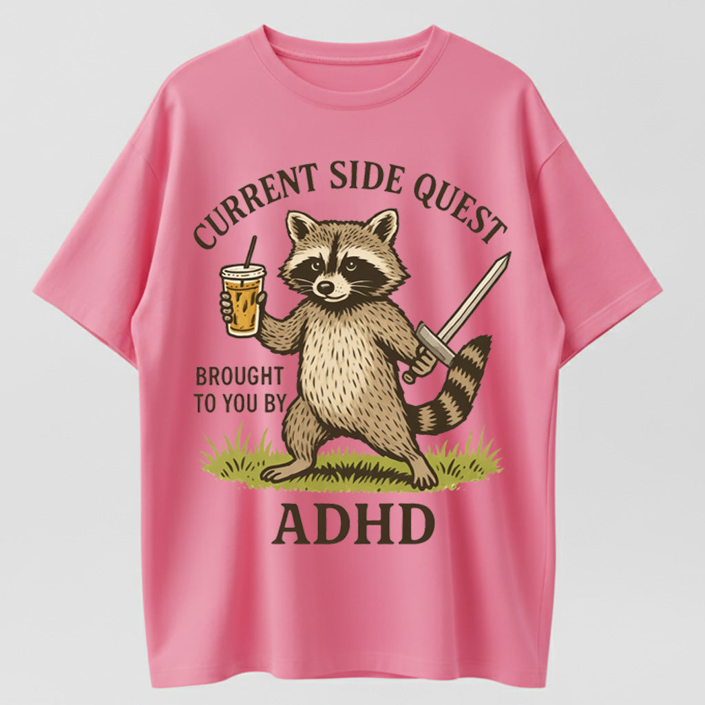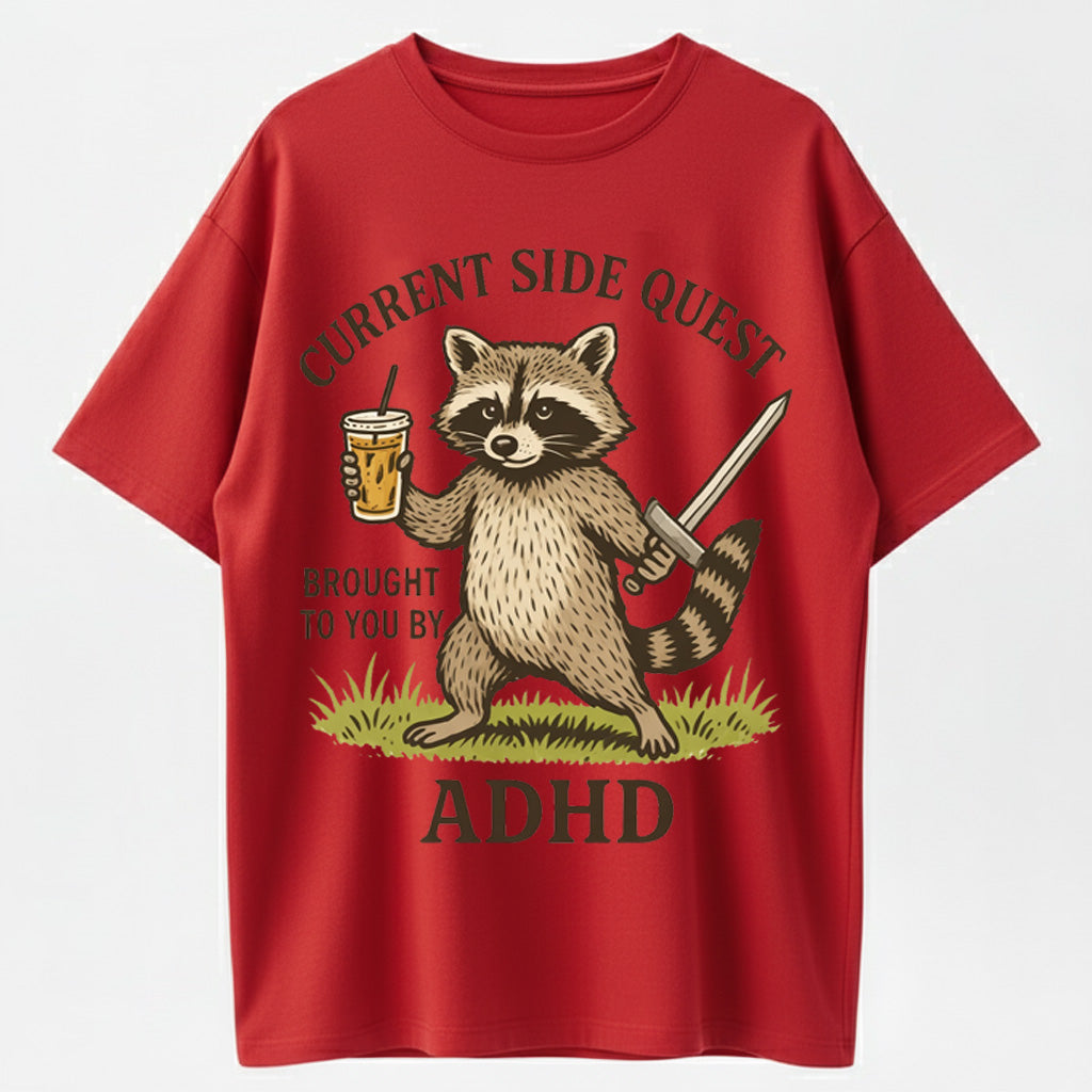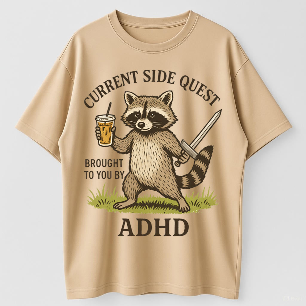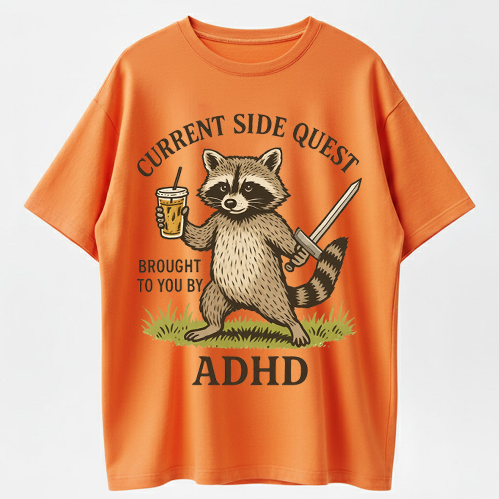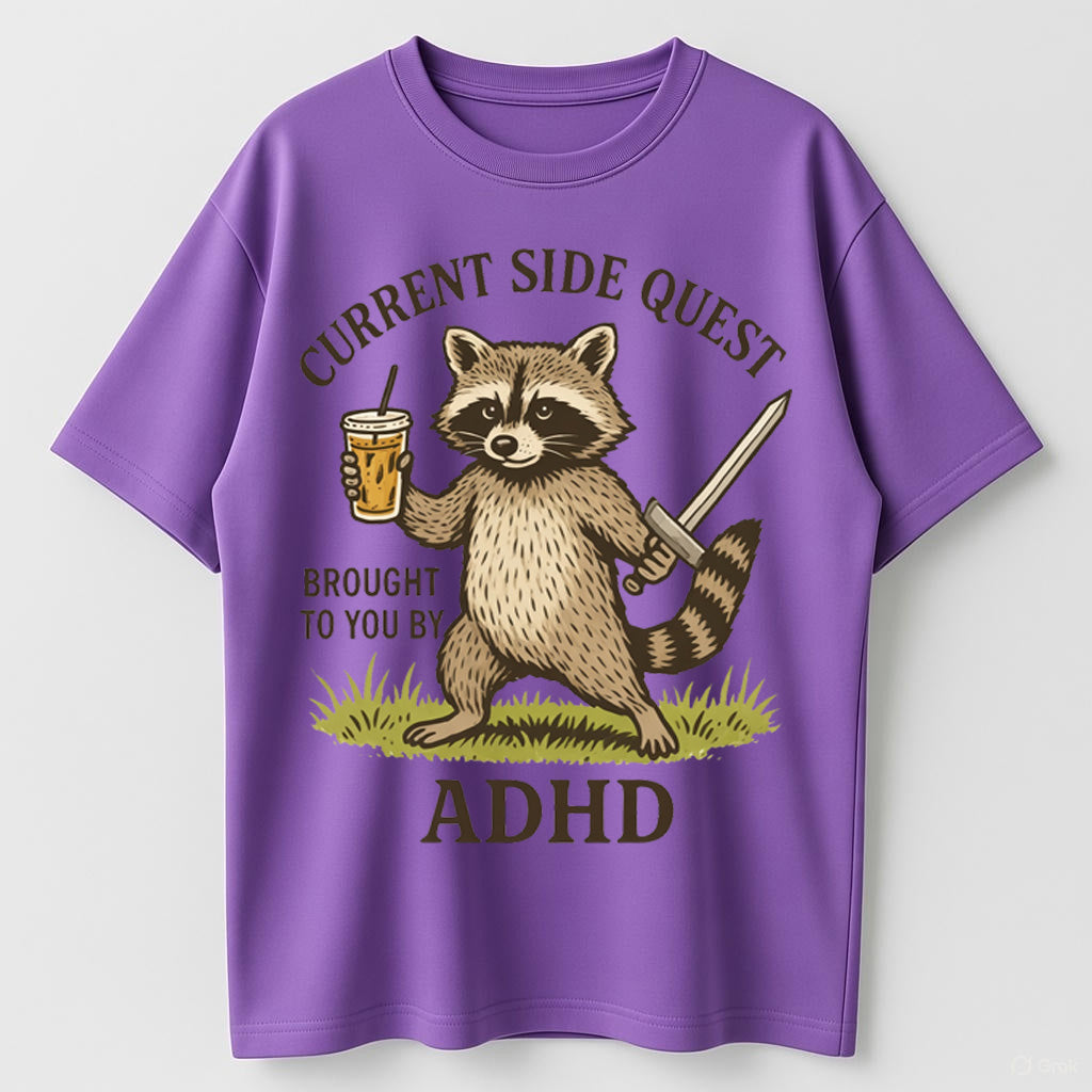 Current Side Quest ADHD Raccoon Funny Organic Cotton Unisex T-Shirt