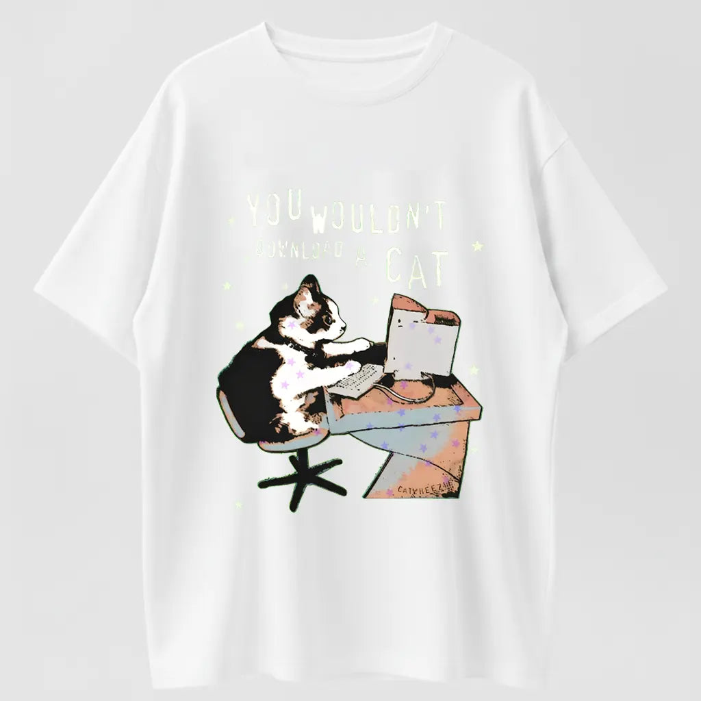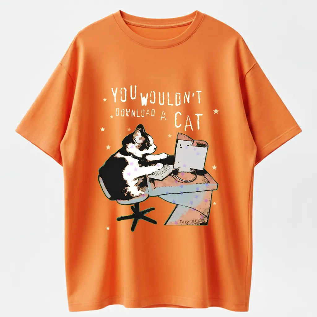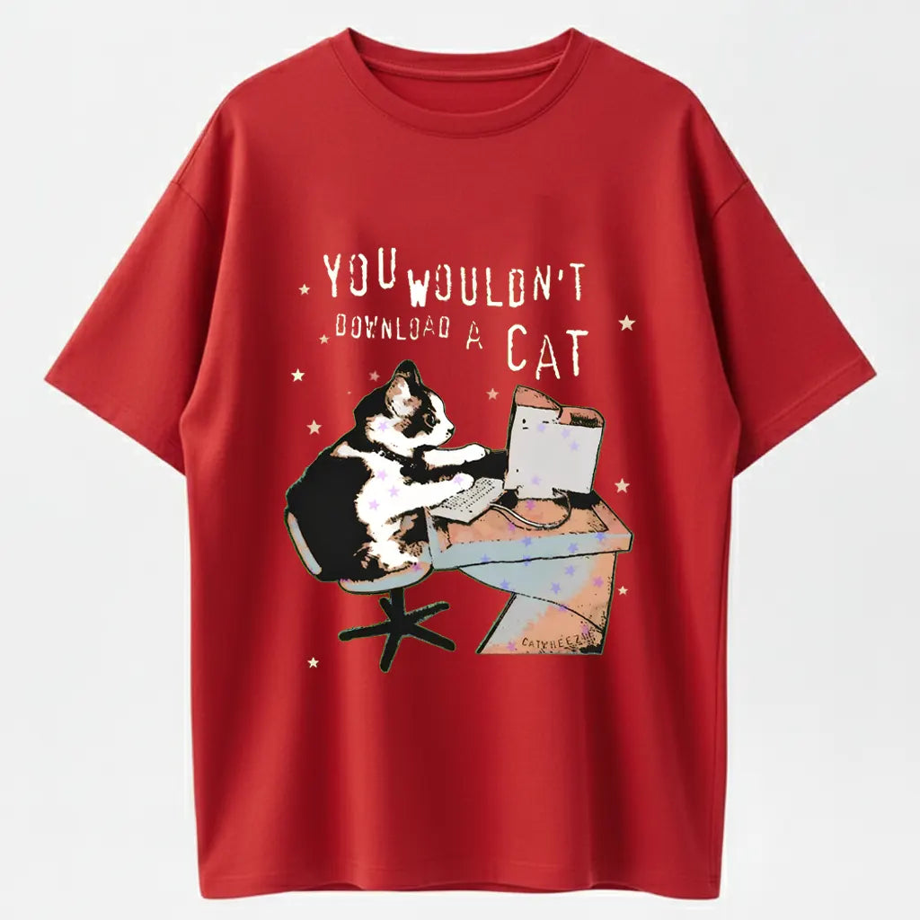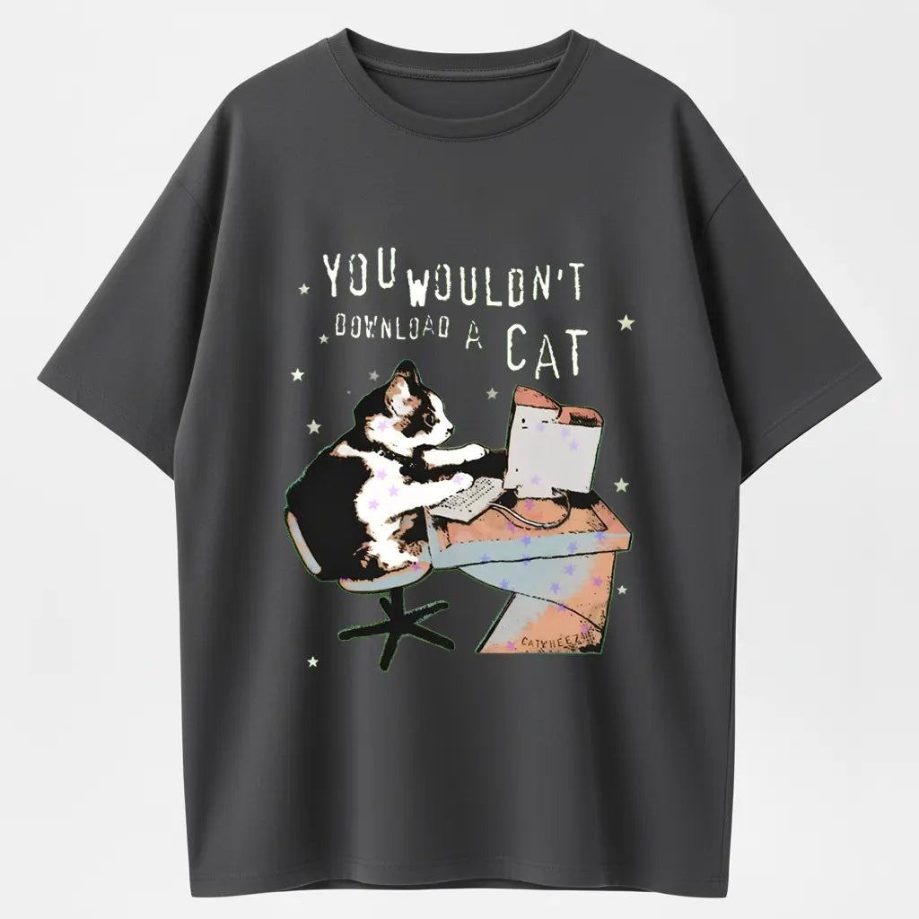 You Wouldn't Download A Cat Vintage Graphic T-Shirt - 100% Cotton Heavyweight