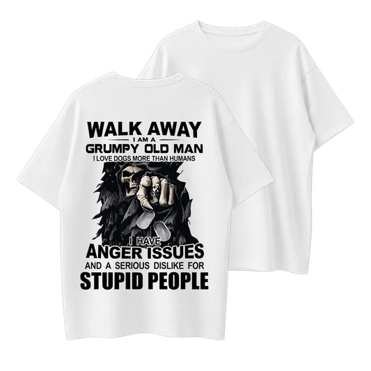 Vintage Skull Walk Away I Am A Grumpy Old Man T-Shirt (Custom Year 1969-1980) - 100% Cotton