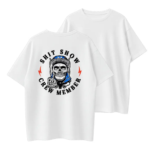 Urbntees Shit Show Crew Member Funny Skull Biker Organic Cotton Unisex T-Shirt