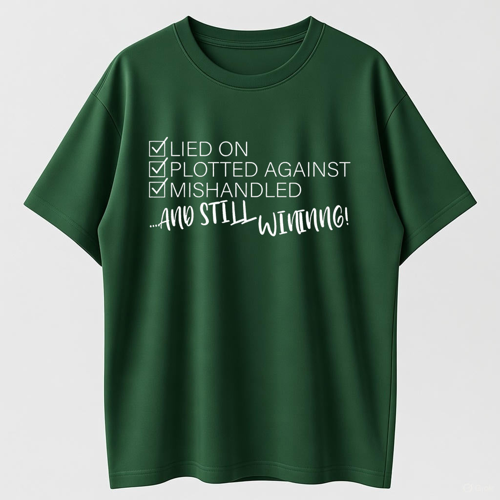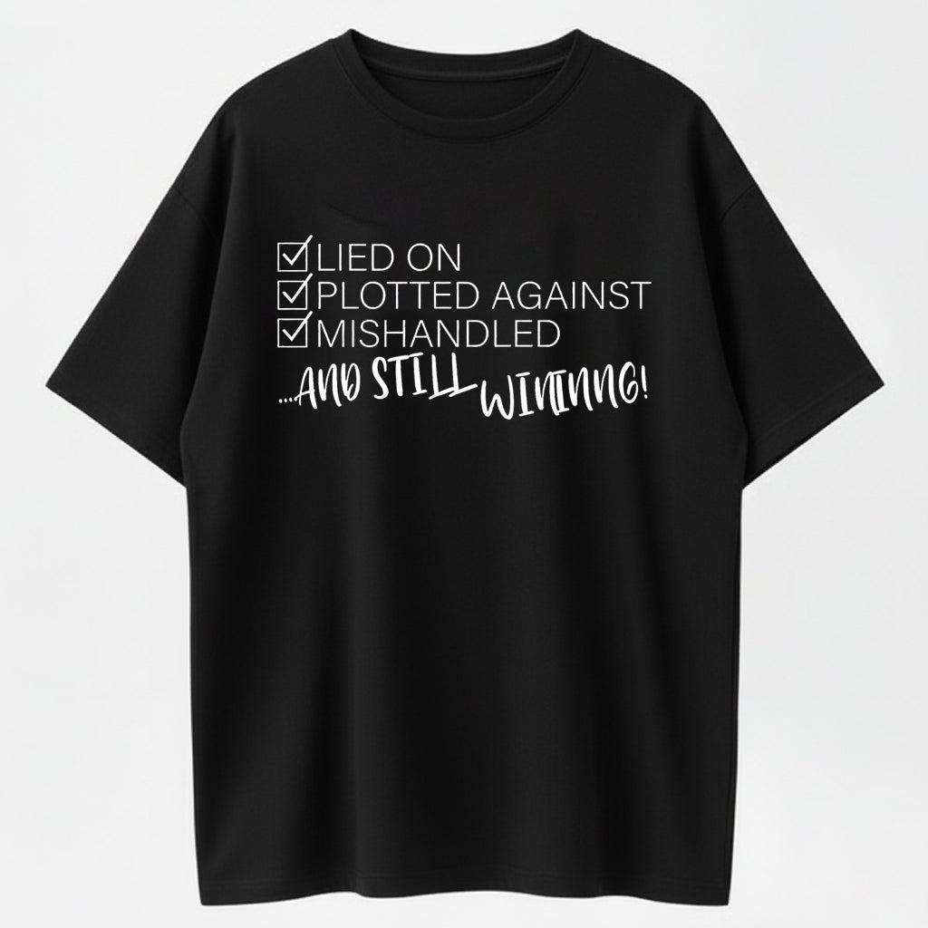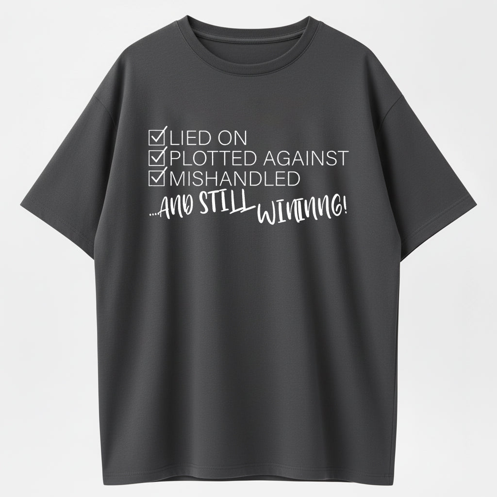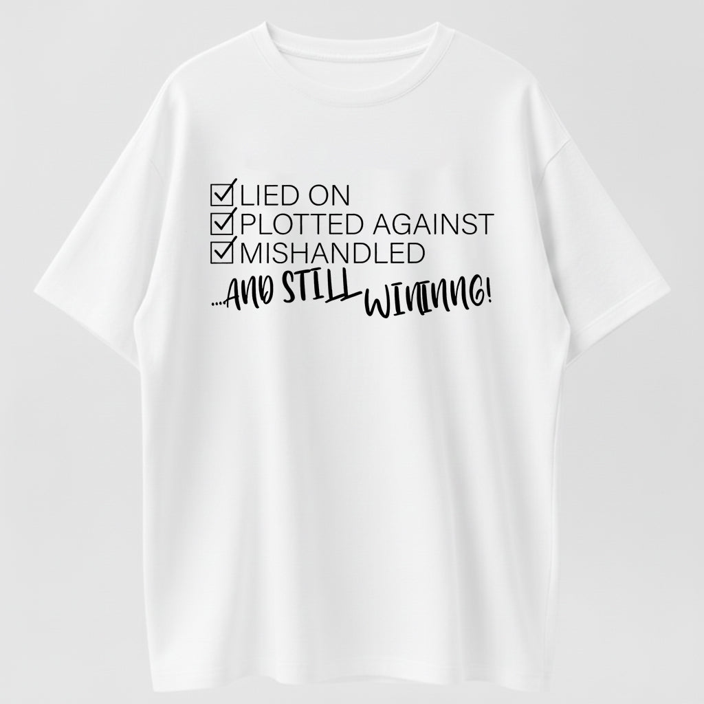 Still Winning Lied Plotted Mishandled Funny Sarcastic Organic Cotton Unisex T-Shirt