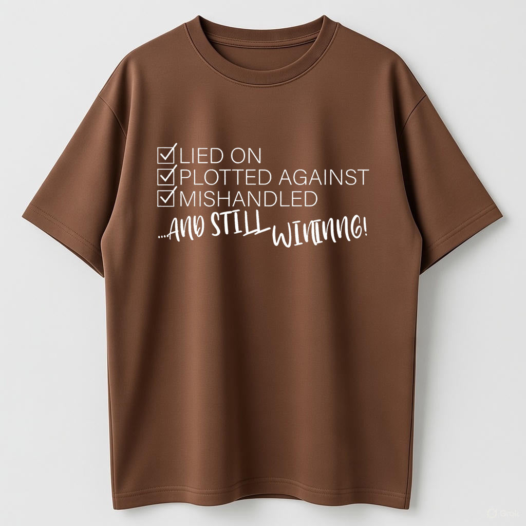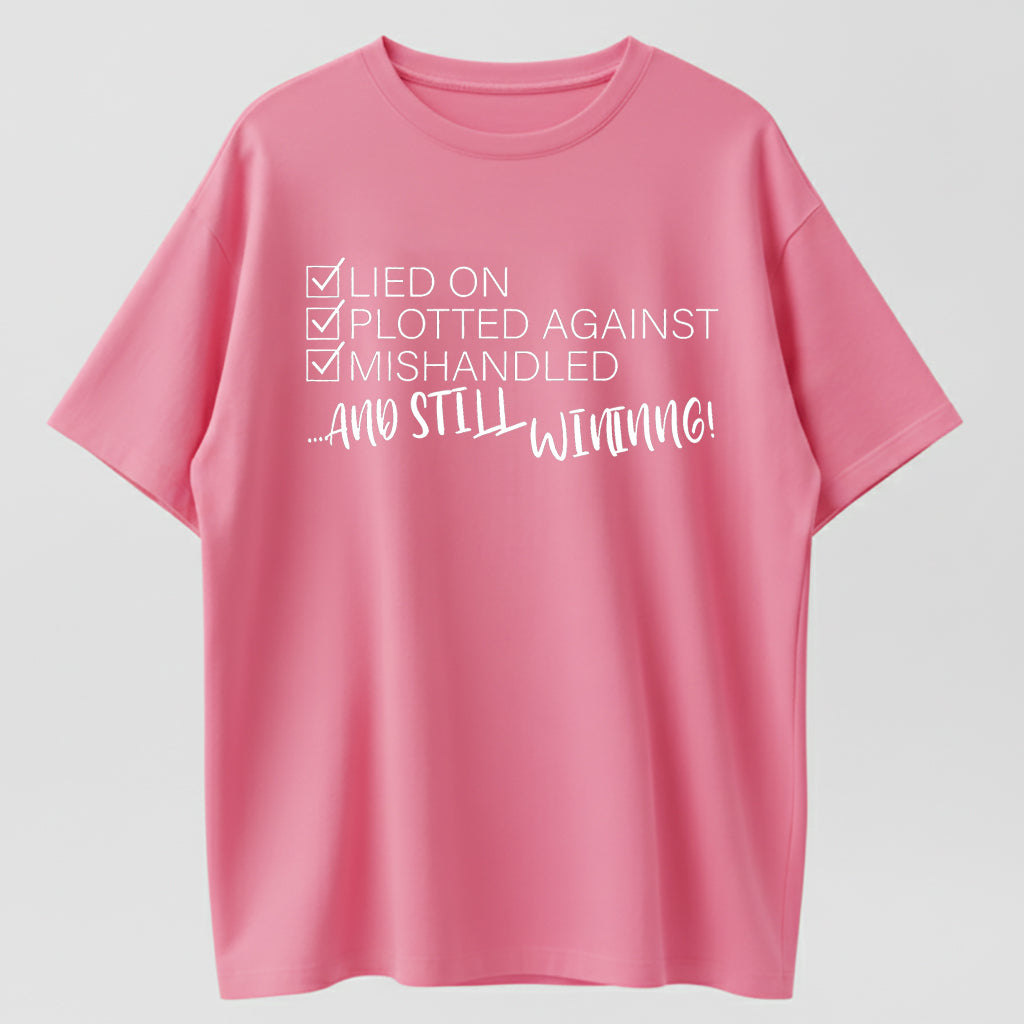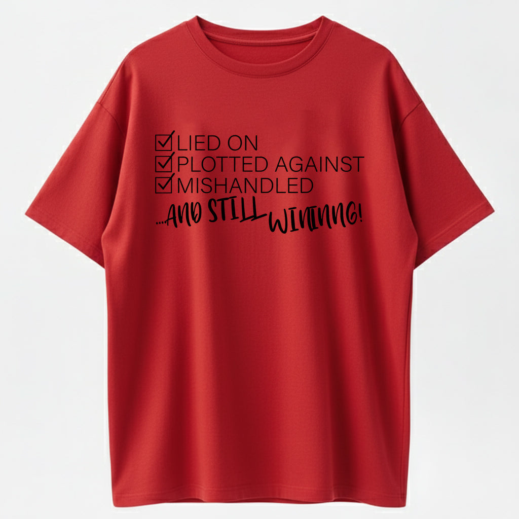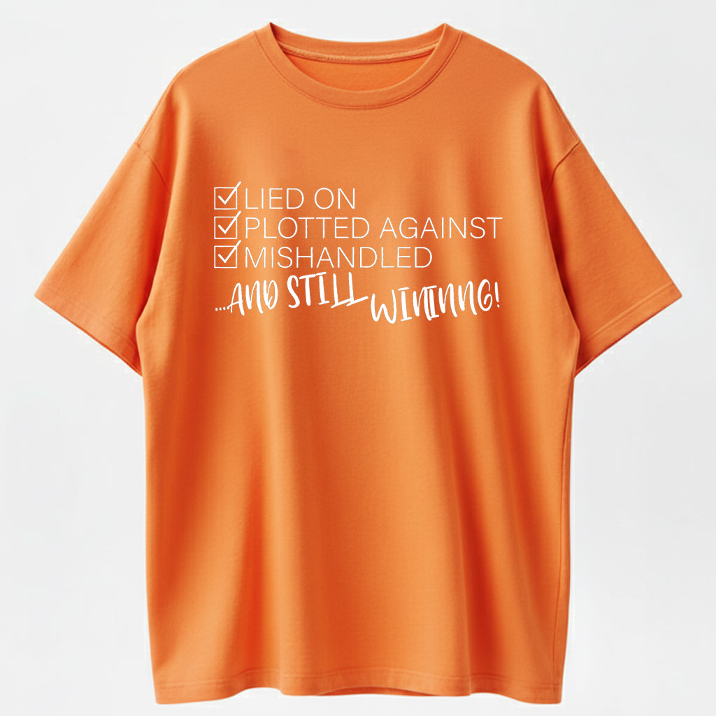 Still Winning Lied Plotted Mishandled Funny Sarcastic Organic Cotton Unisex T-Shirt