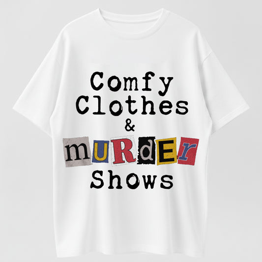 Stay-at-Home Detective True Crime & Cozy Outfit Collage Text T-Shirt