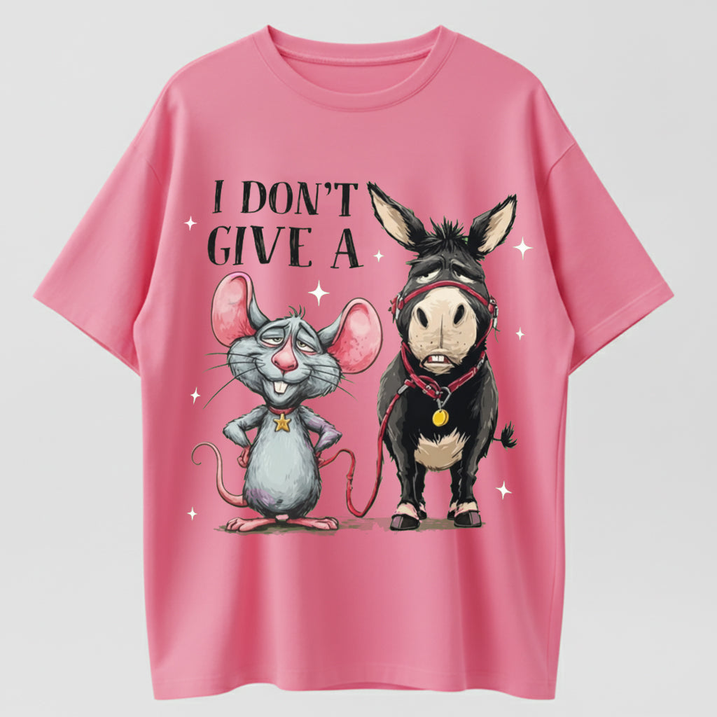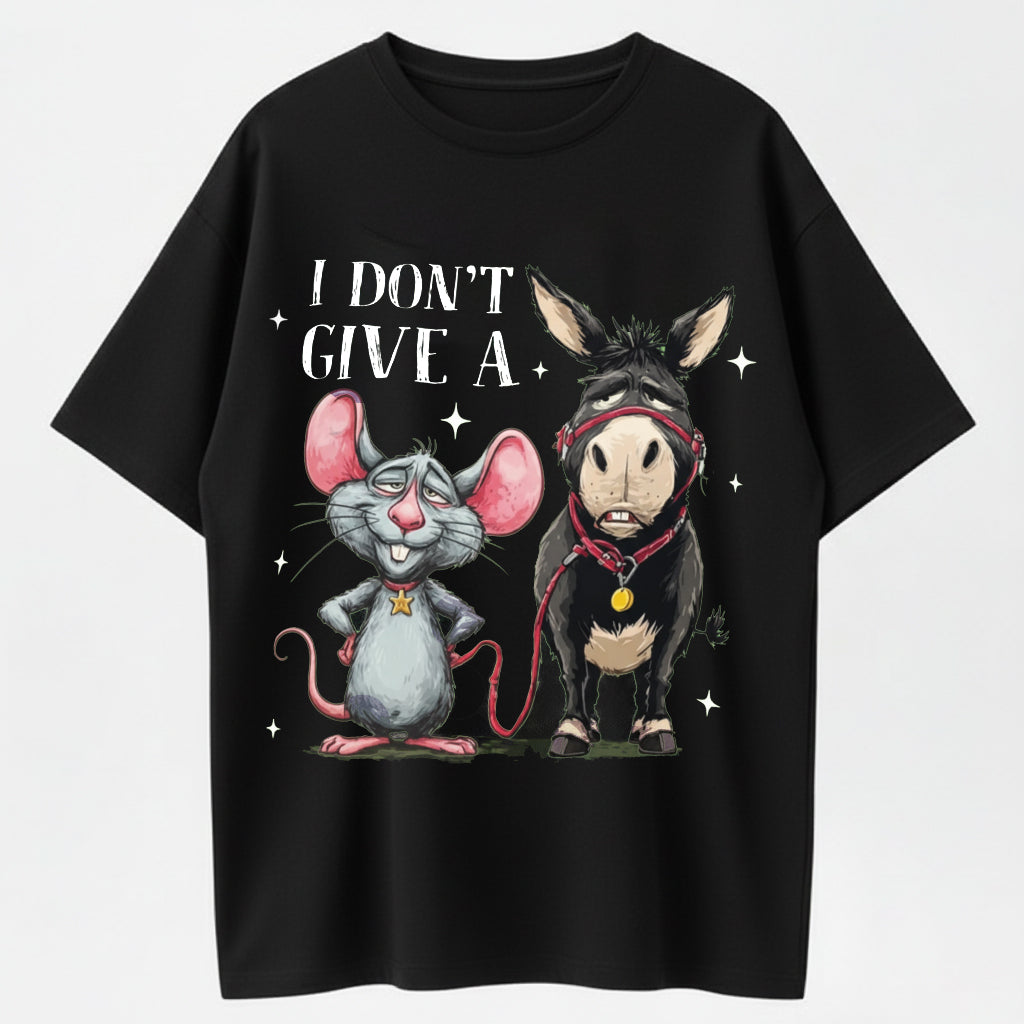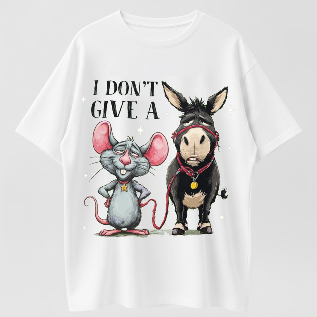 I Don’t Give A Damn! Quirky Mouse & Donkey T-Shirt