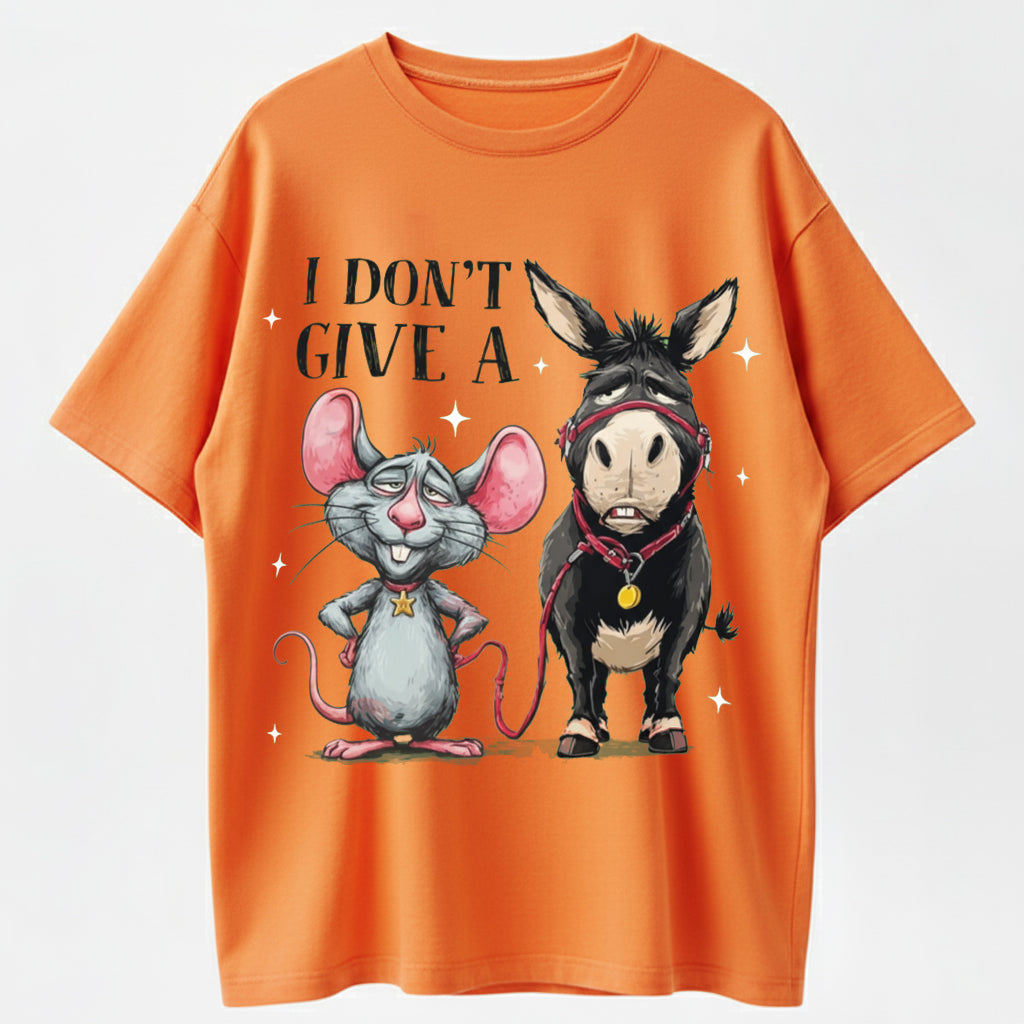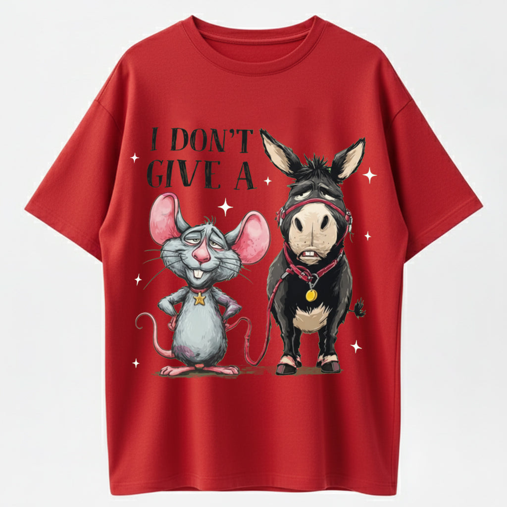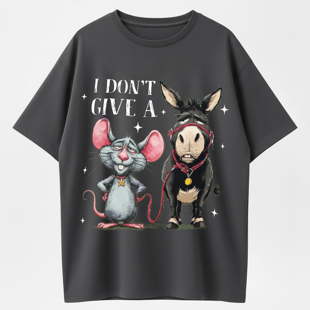 I Don’t Give A Damn! Quirky Mouse & Donkey T-Shirt