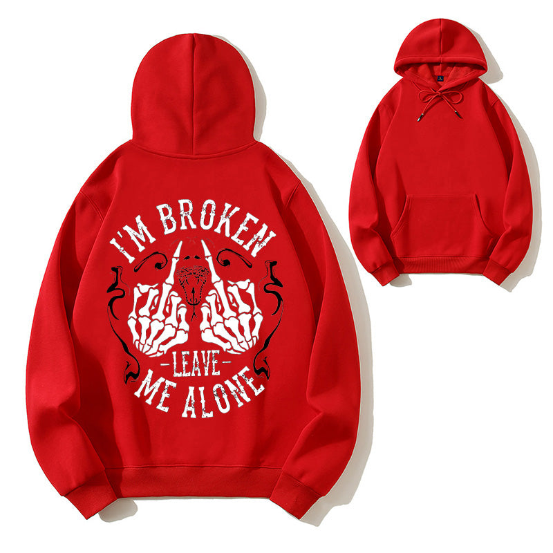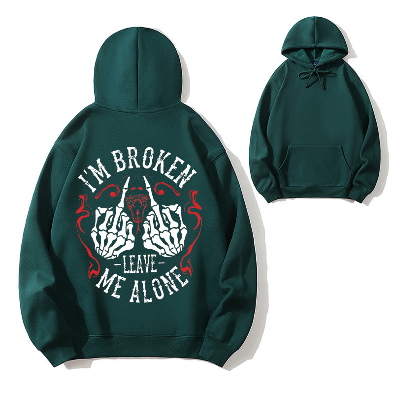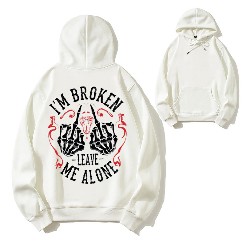 I'm Broken Leave Me Alone Skull Snake Graphic Organic Cotton Unisex Hoodie
