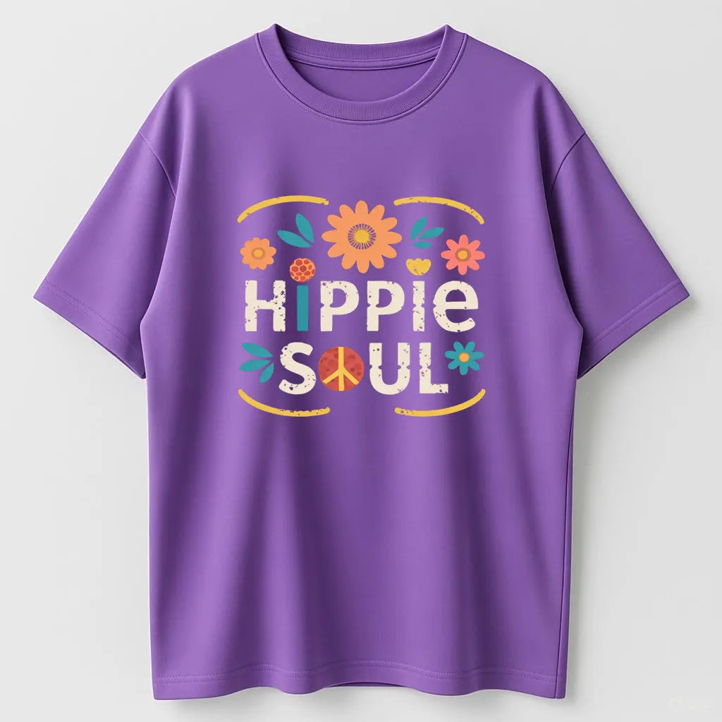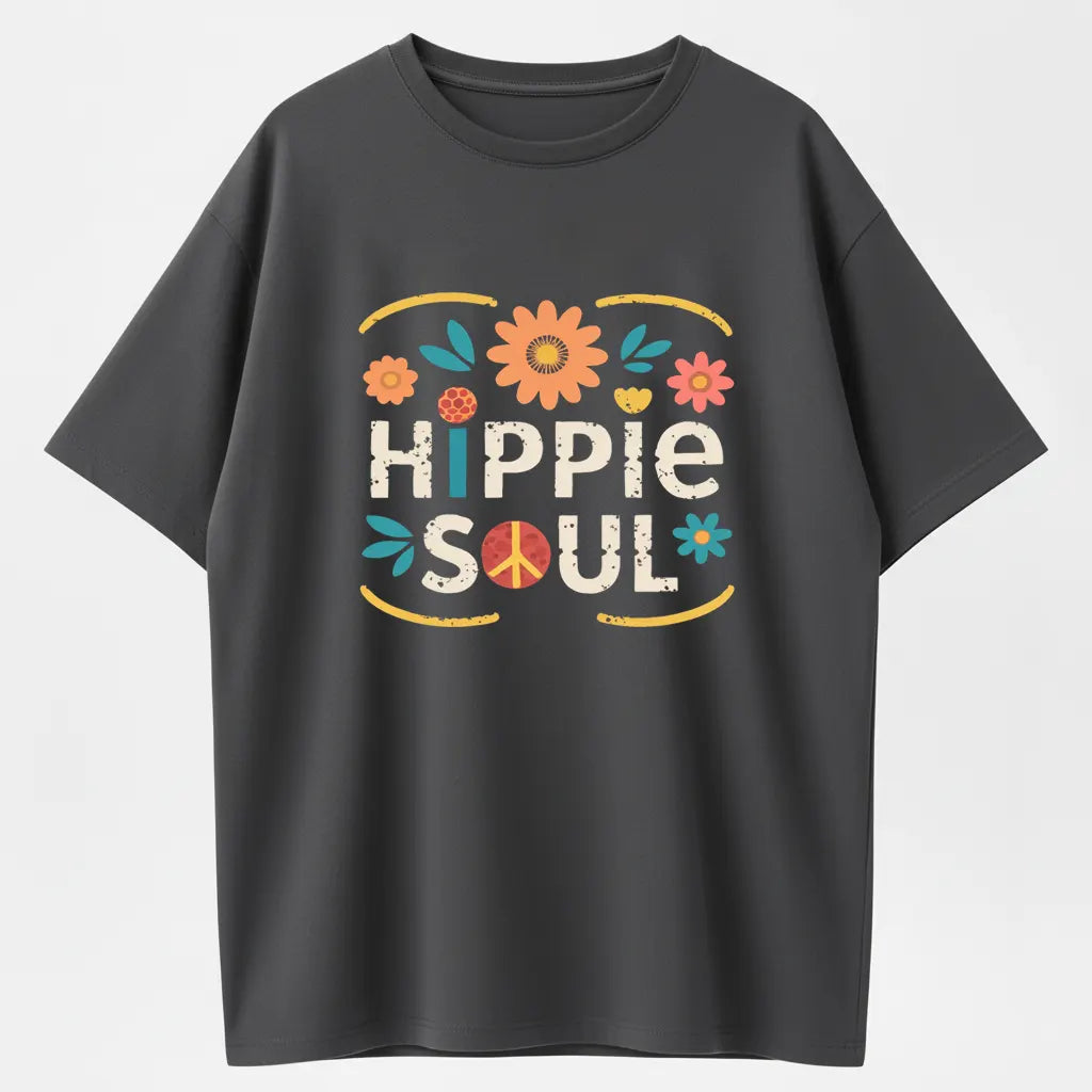 Urbntees Hippie Soul Peace Flower Boho Vibes Organic Cotton Unisex T-Shirt