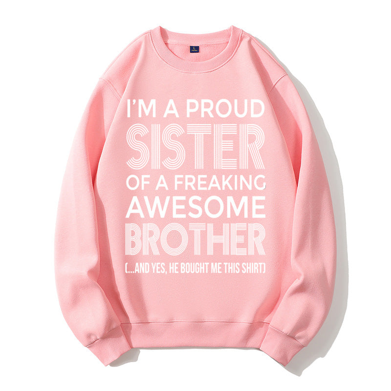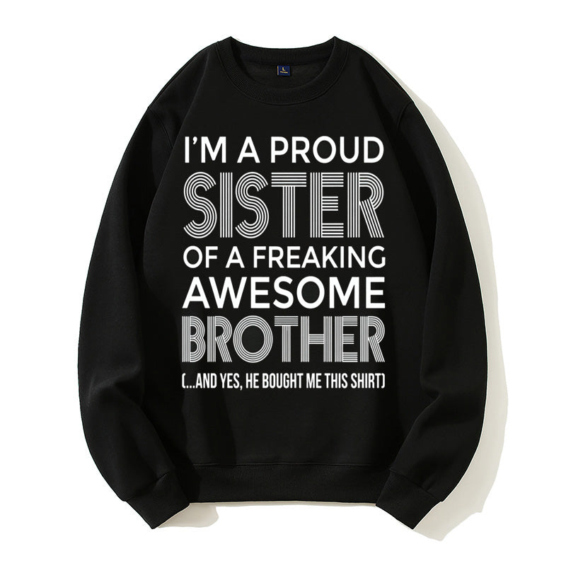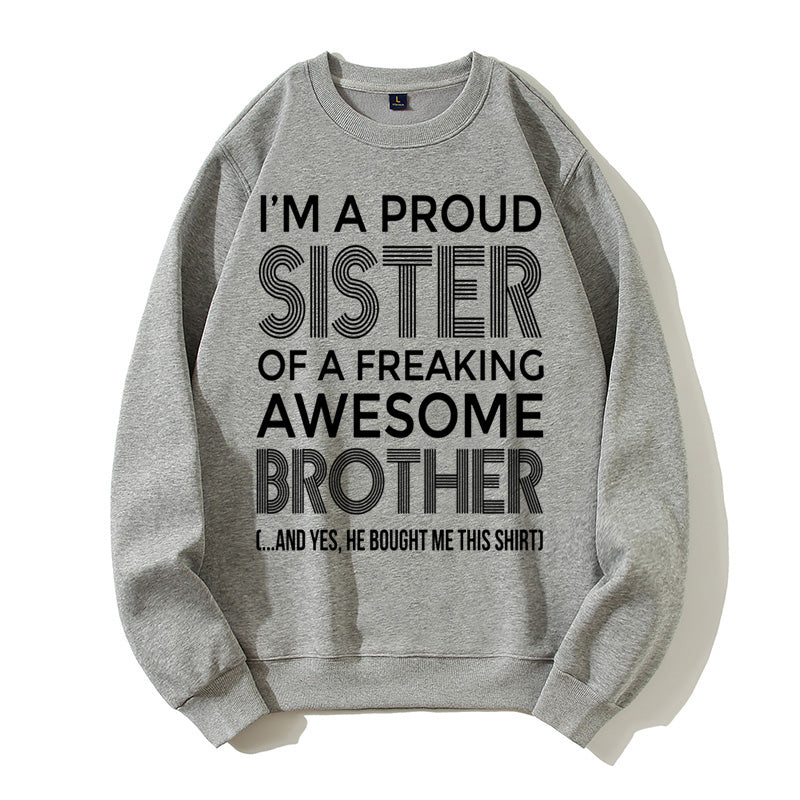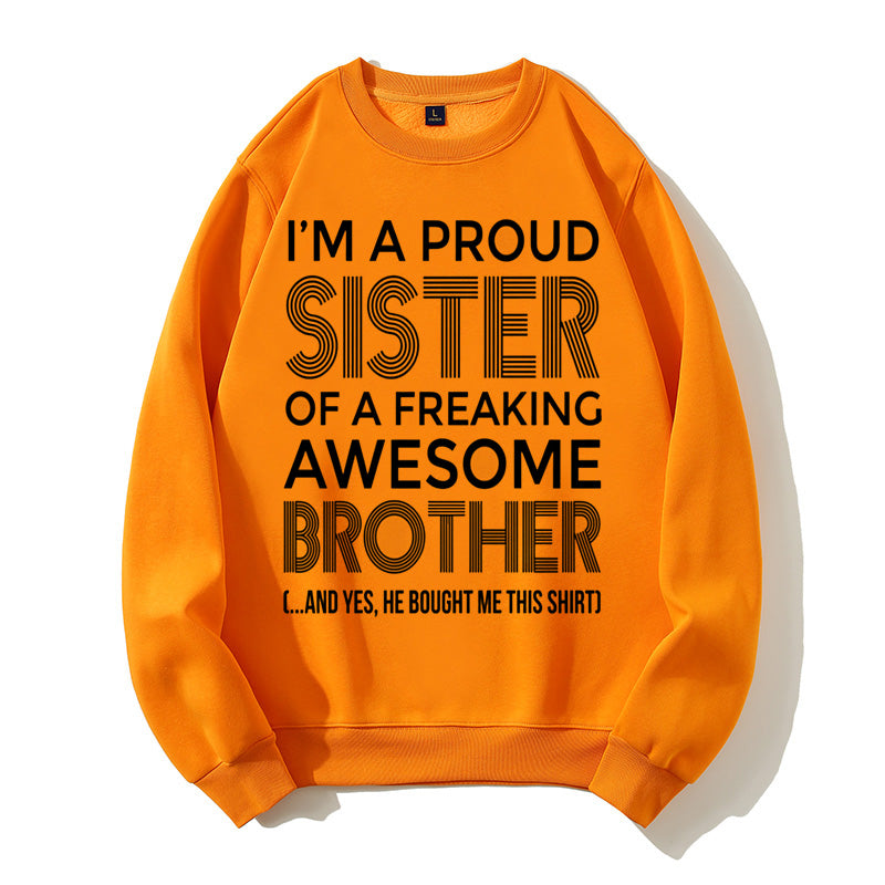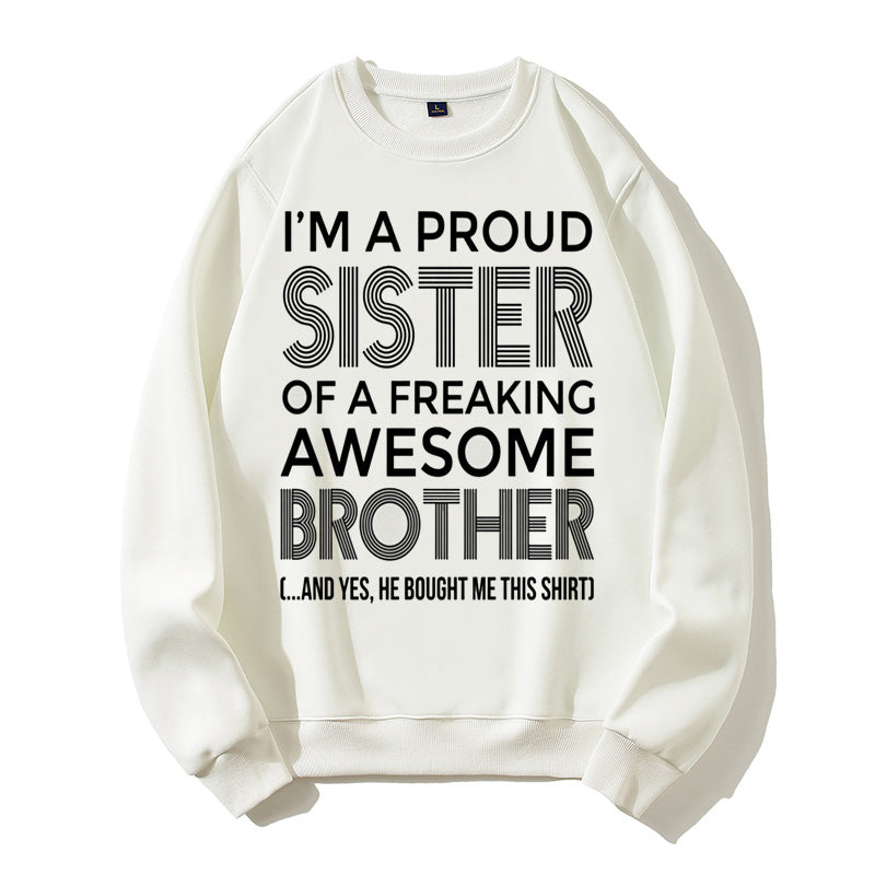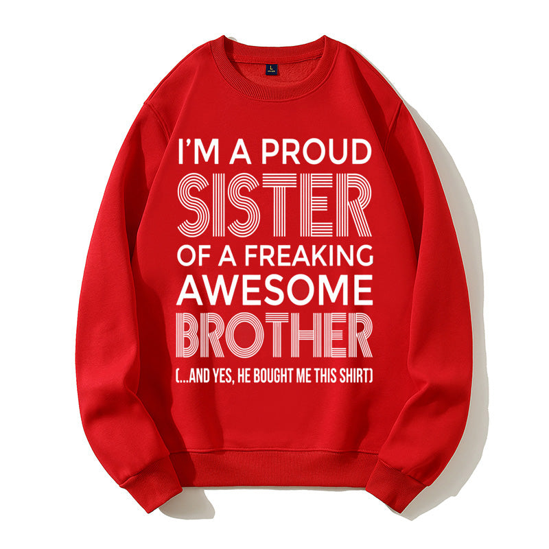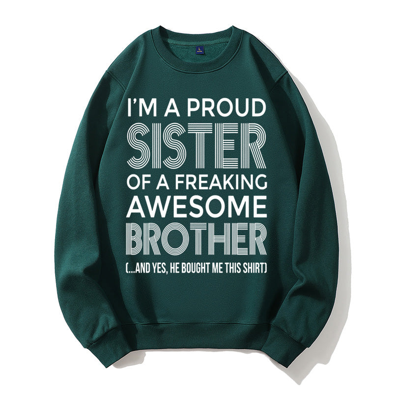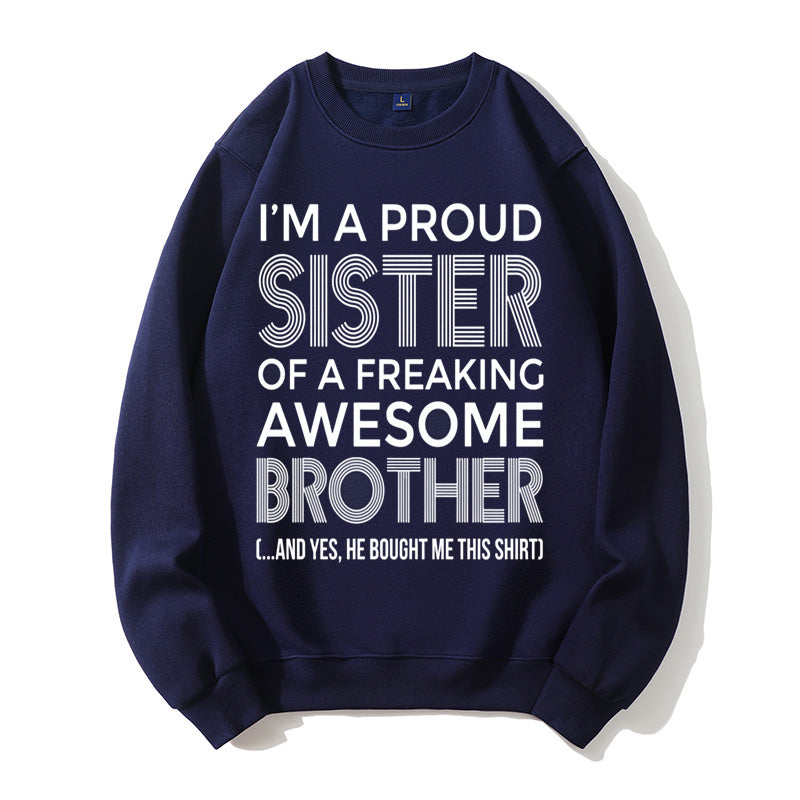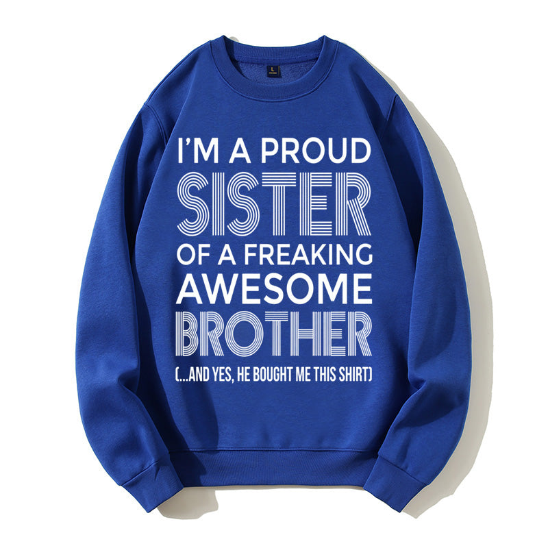 I'm A Proud Sister Of A Freaking Awesome Brother Funny Sibling Gift Graphic Pullover Sweatshirt