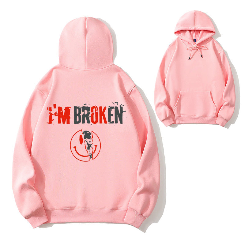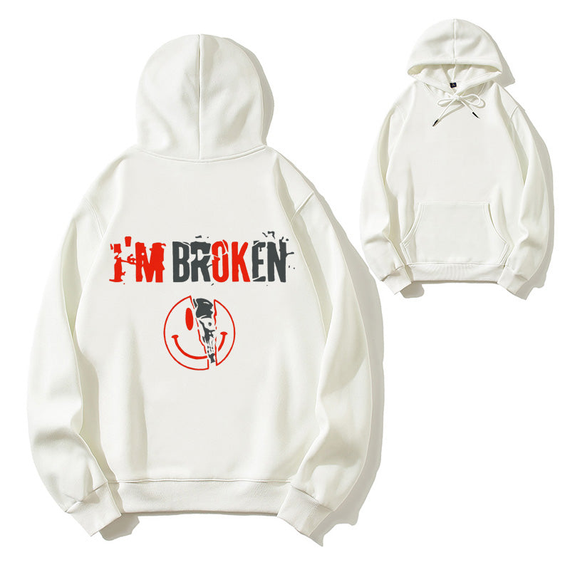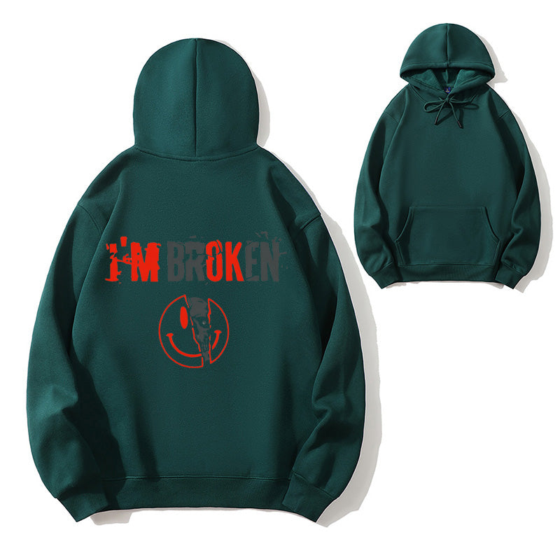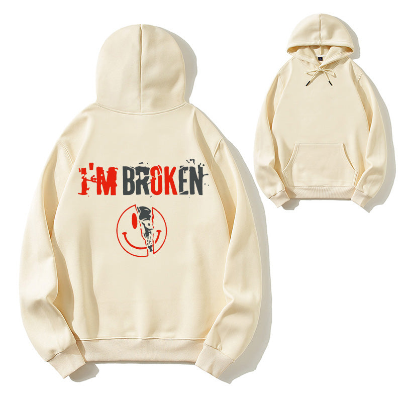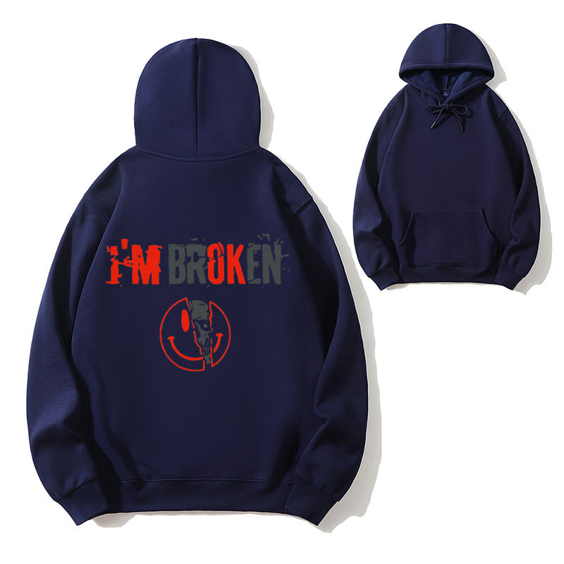 I'm Broken Funny Dark Humor Skull Smile Organic Cotton Unisex Hoodie