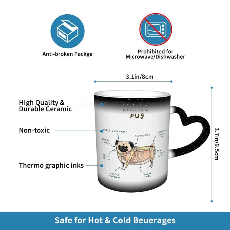 Anatomy Of A Pug Funny Dog Diagram Heat-Activated Color Changing Mug
