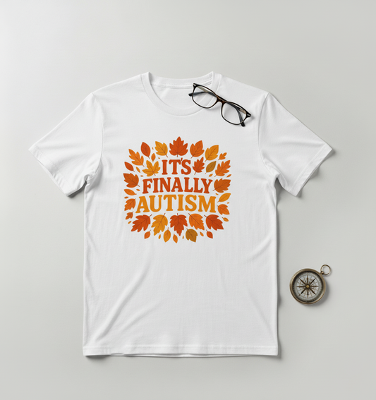 "It's Finally Autism" Autumn Leaves T-Shirt