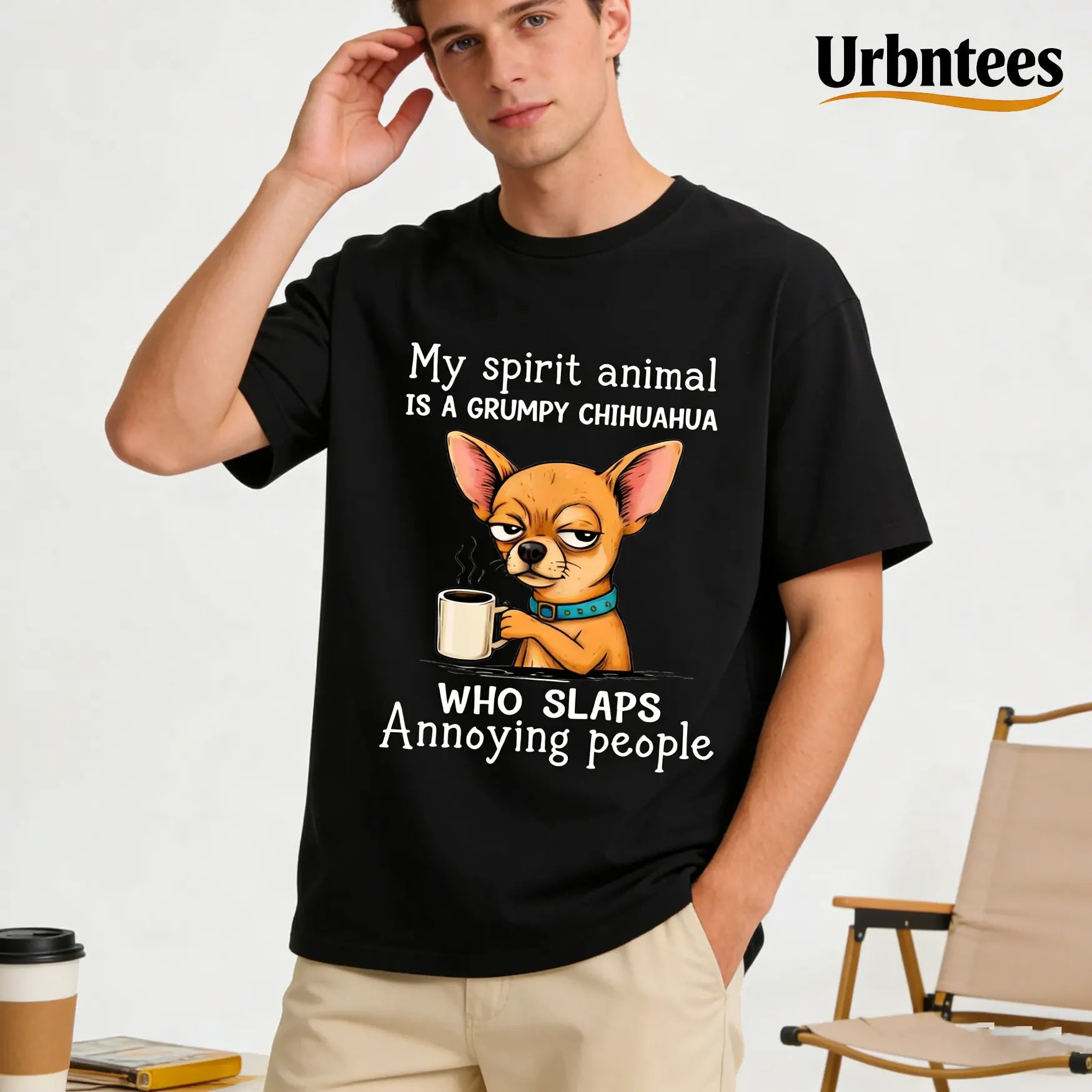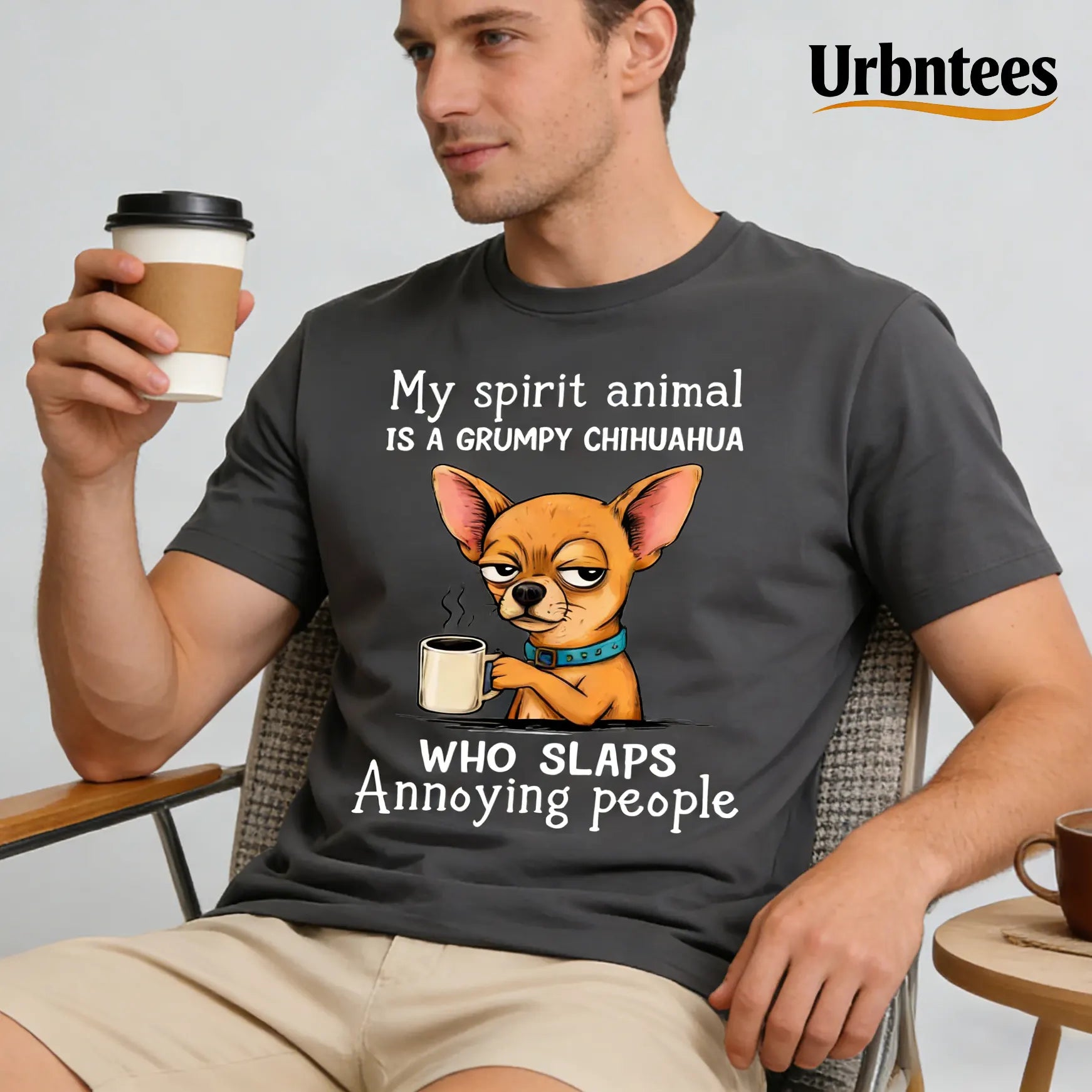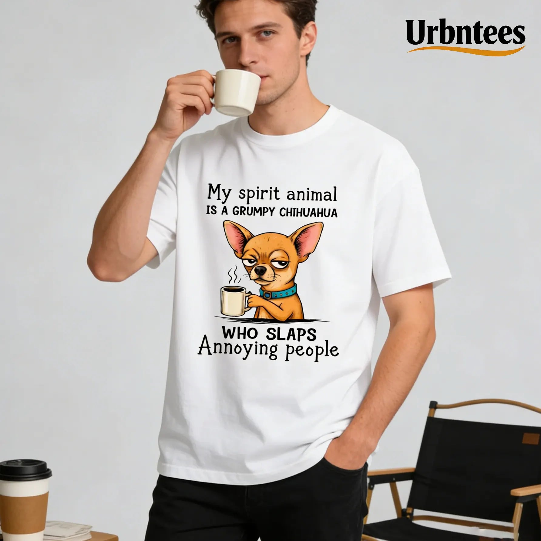 Urbntees My Spirit Animal Grumpy Chihuahua Slaps Annoying People Organic Cotton Unisex T-Shirt