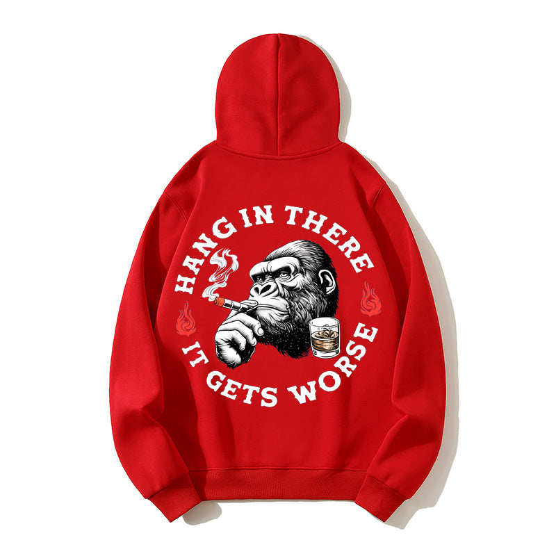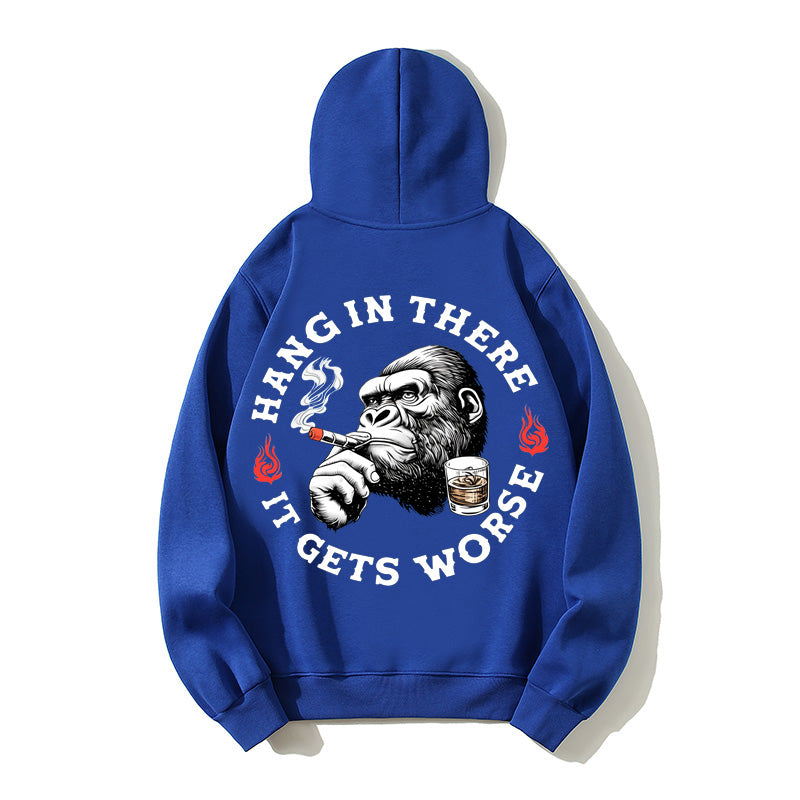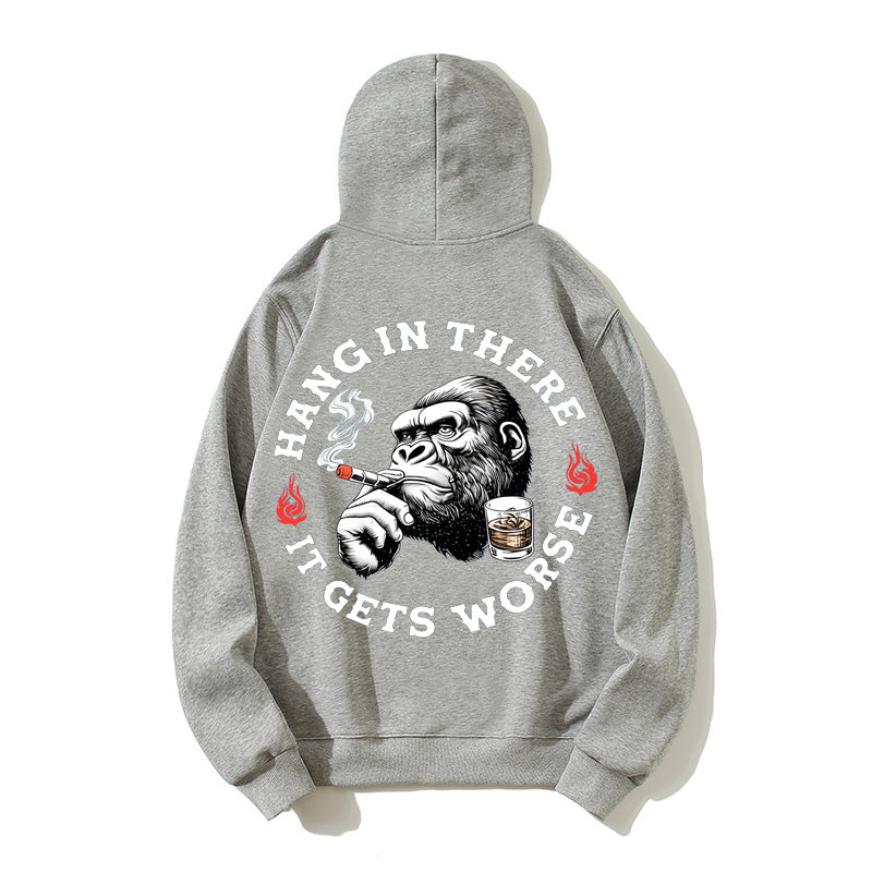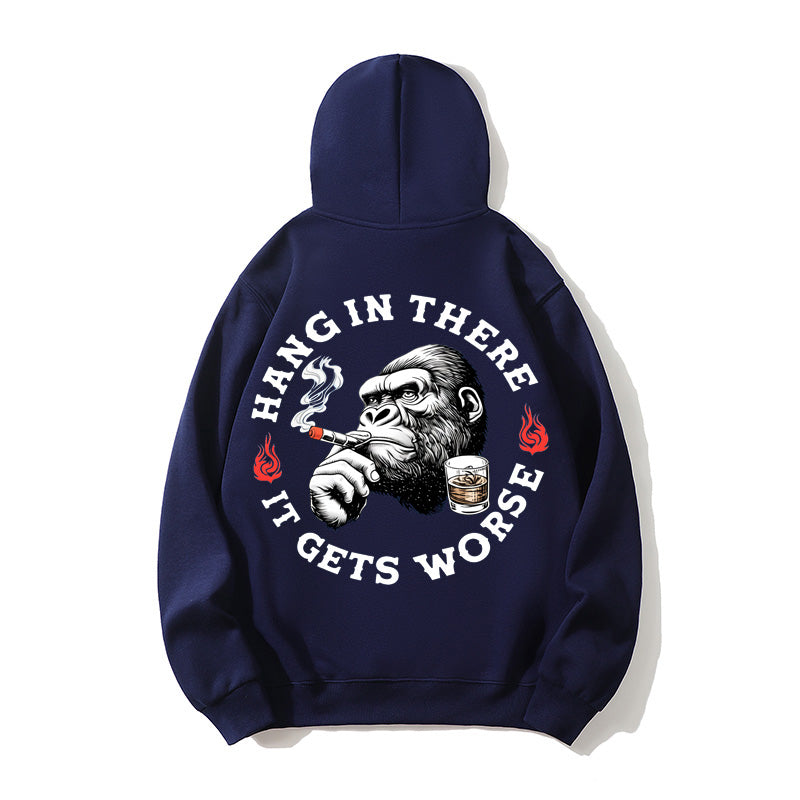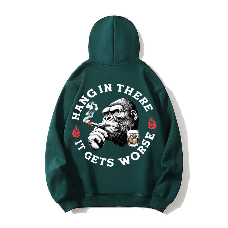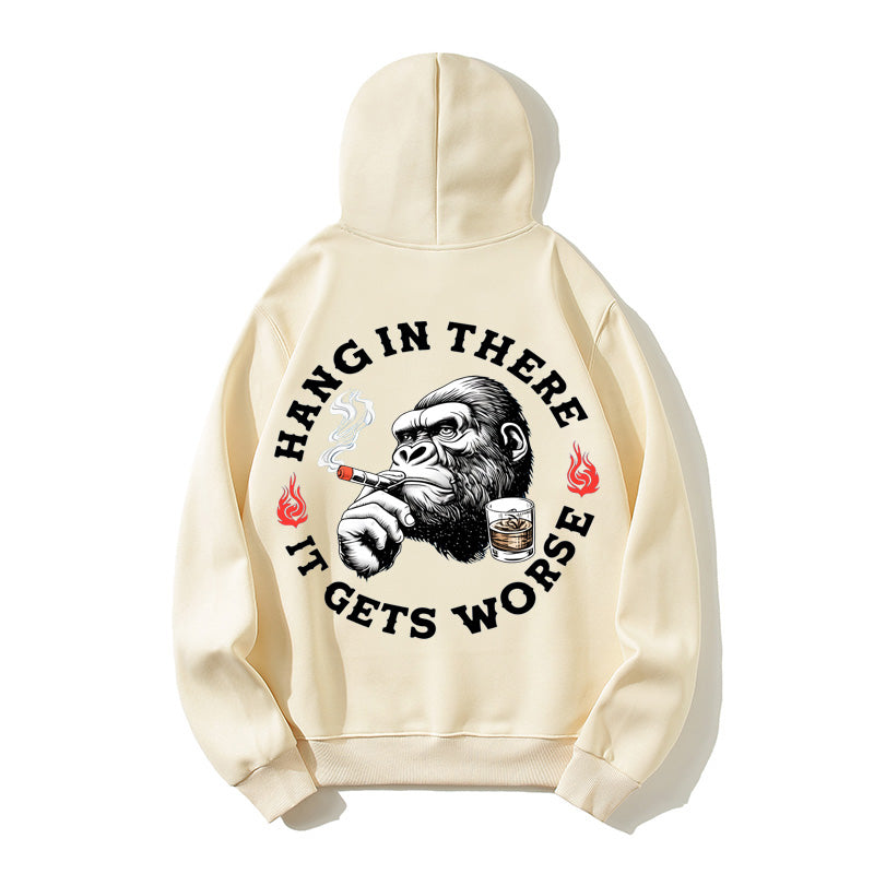 100% Cotton "Hang in There, It Gets Worse" Smoking Ape Hoodie