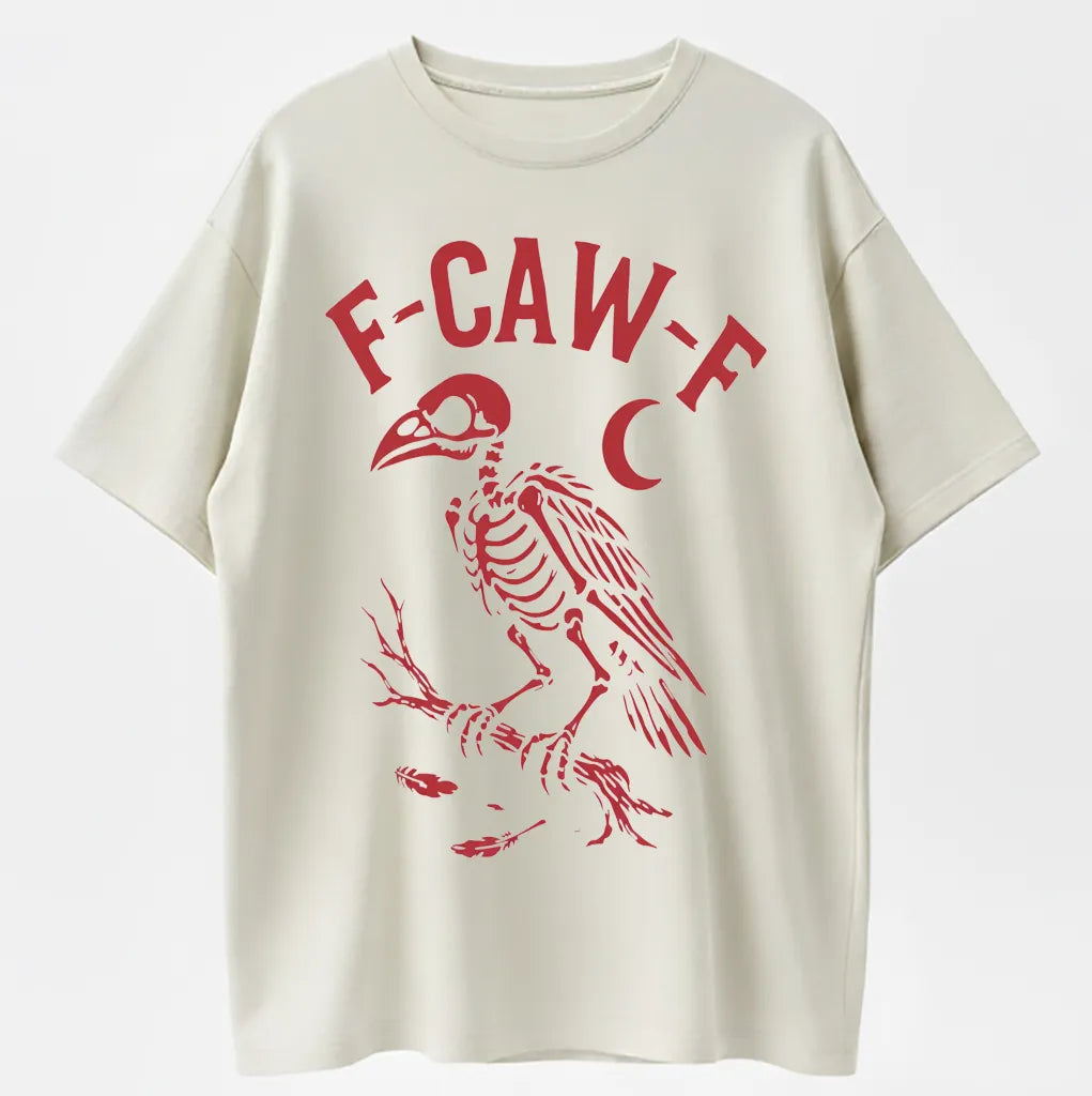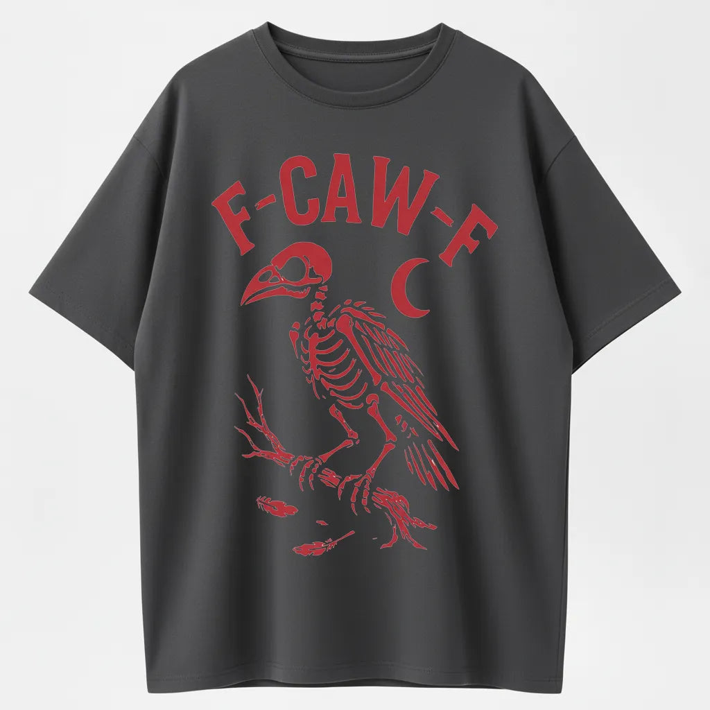 F-CAW-F Crow Skeleton Graphic Halloween T-Shirt