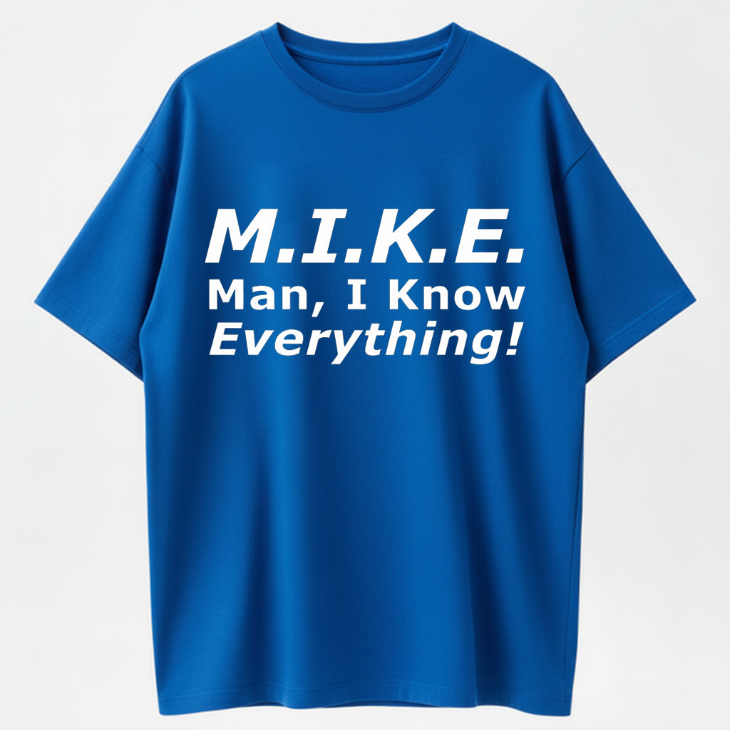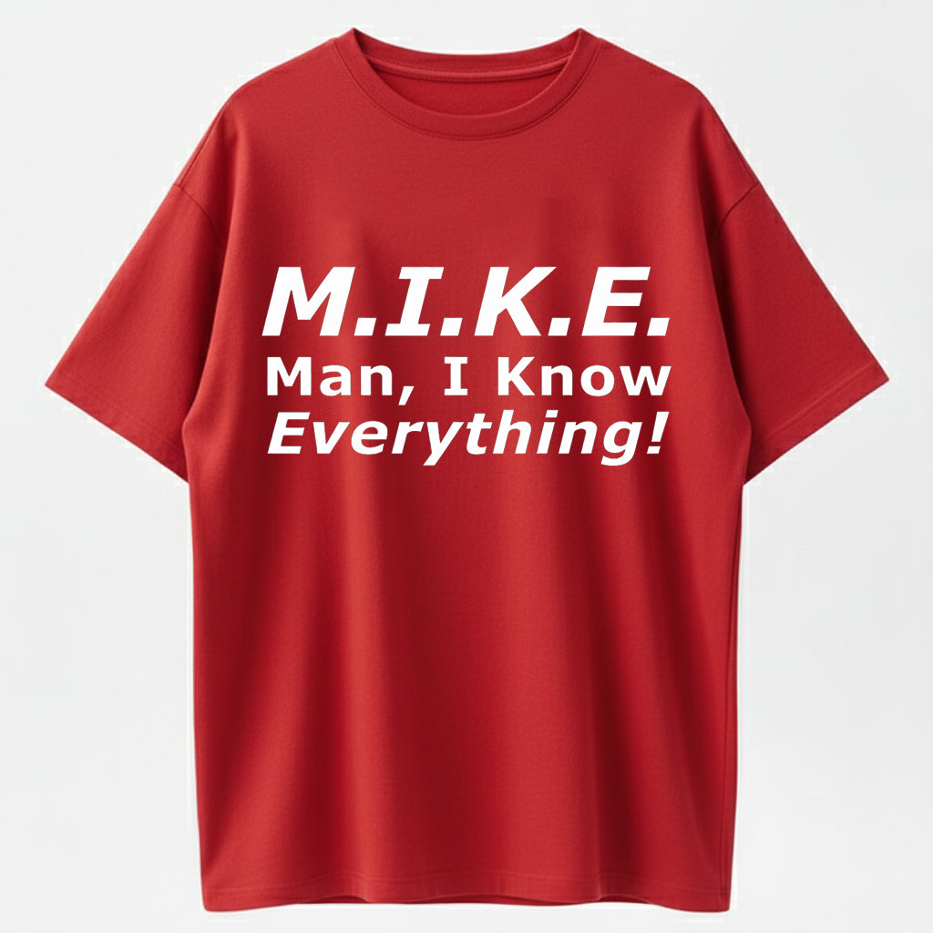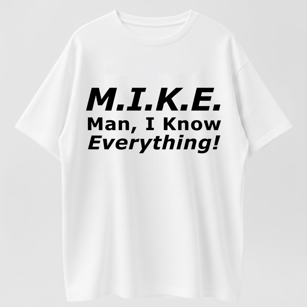Funny Mike T-Shirt - 'Knows Everything' Humor Gift for Men - Birthday & Father's Day Top Cotton graphic tees men gifts