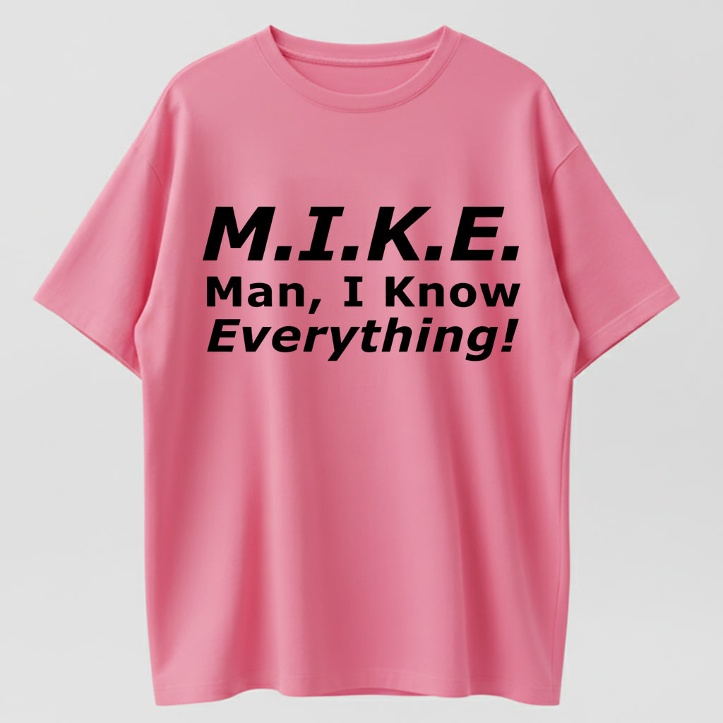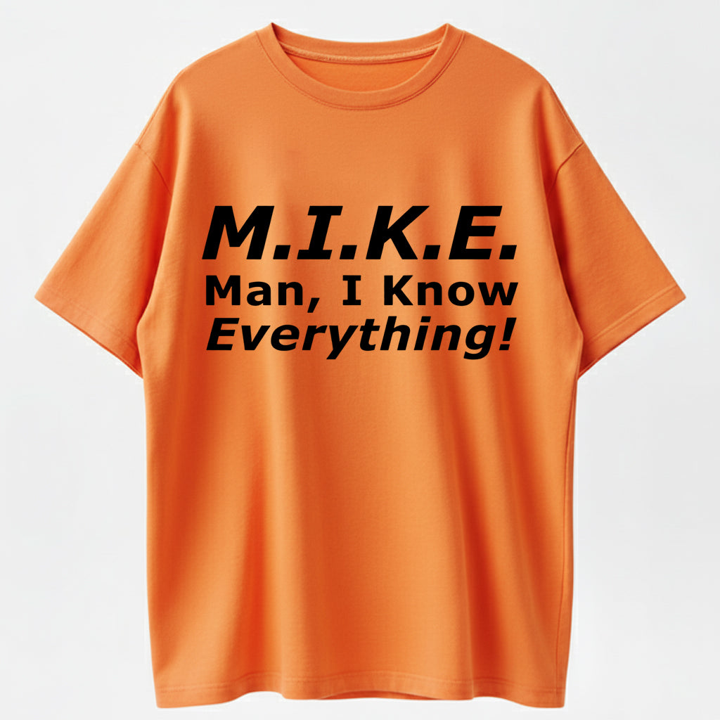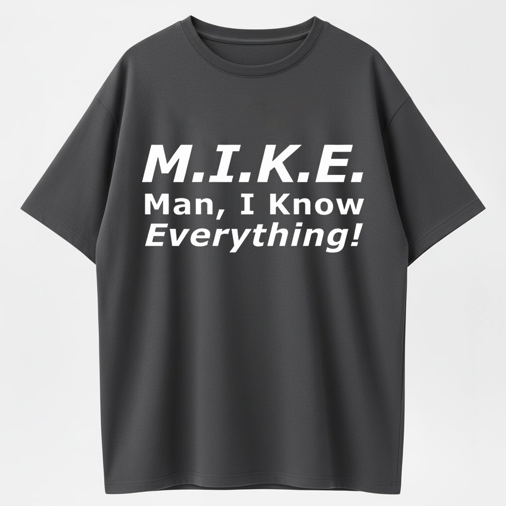 Funny Mike T-Shirt - 'Knows Everything' Humor Gift for Men - Birthday & Father's Day Top Cotton graphic tees men gifts